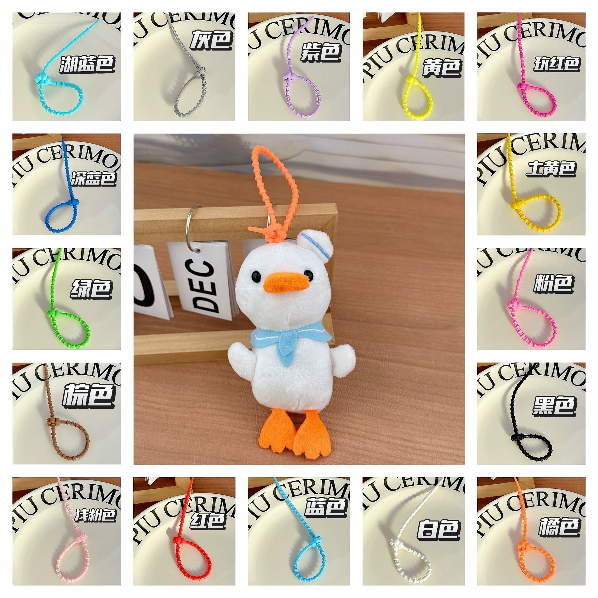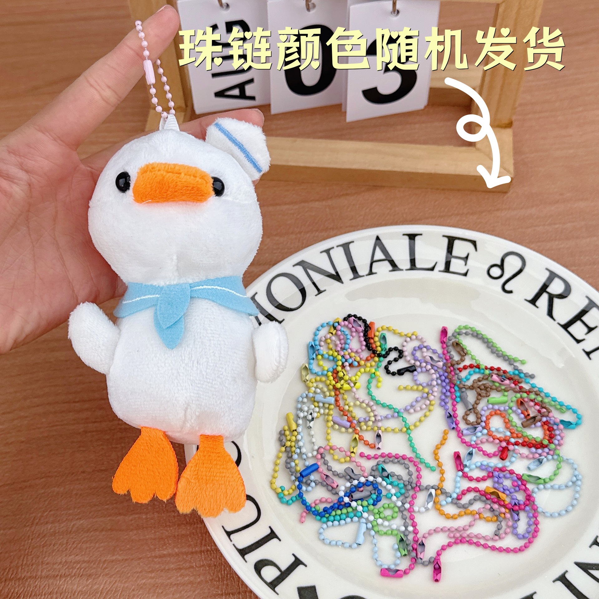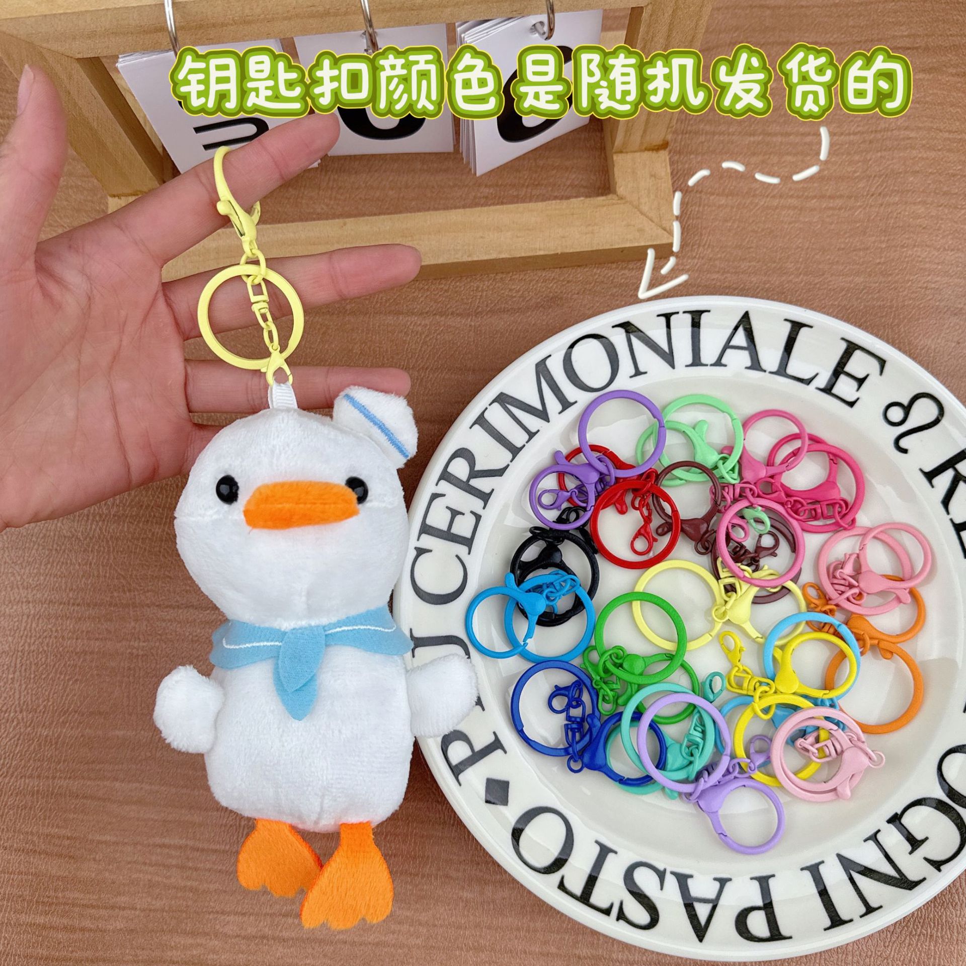 • 해군 오리 흰색 + 랜덤 색상 키링 1개