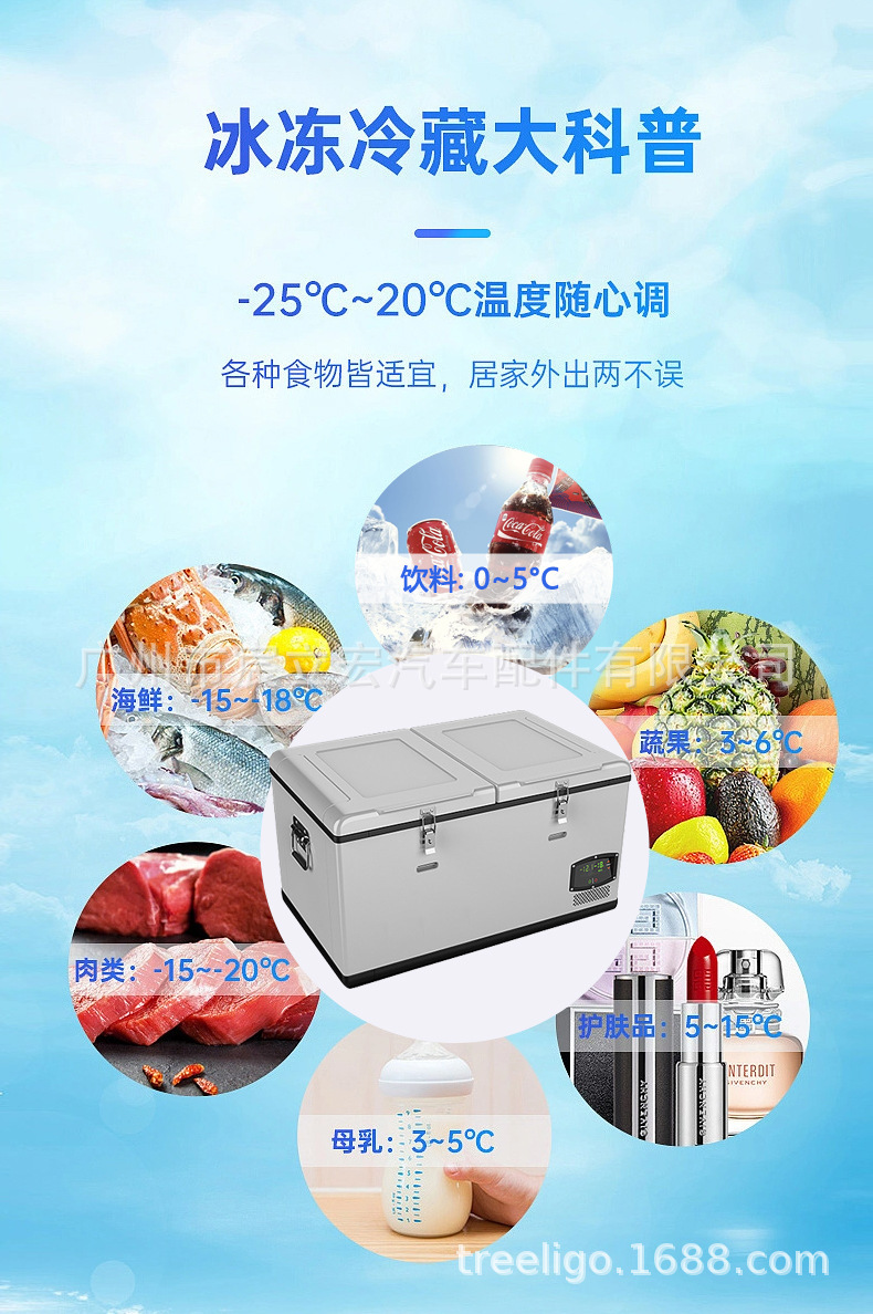 Treeligo 자동차 냉장고 75/95 리터 대용량 12v24v220v 야외 여행 냉동고 차 냉장고스토어 가기