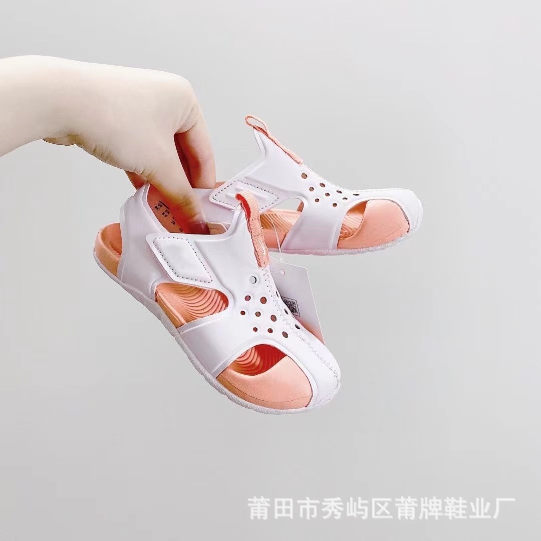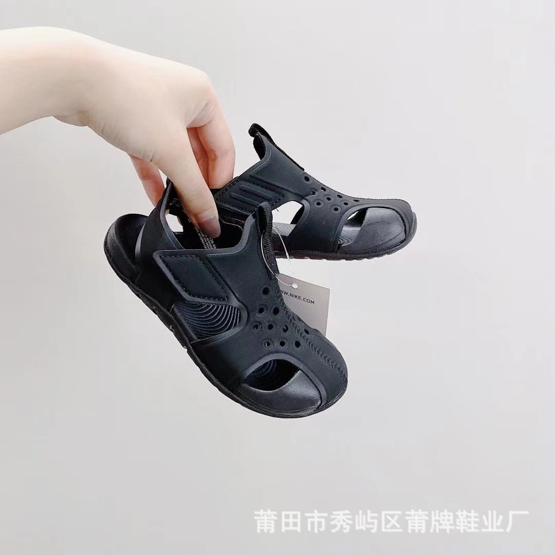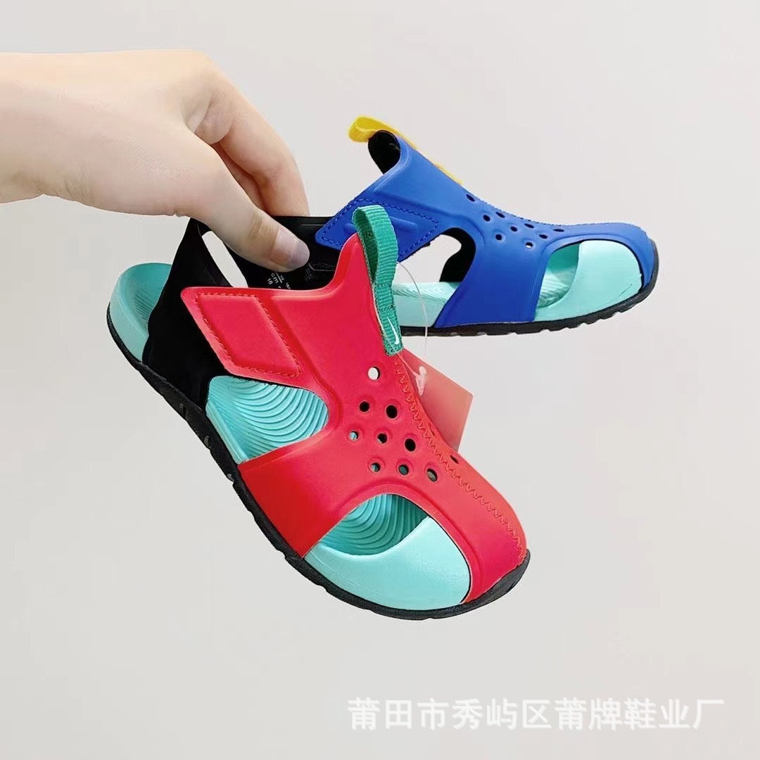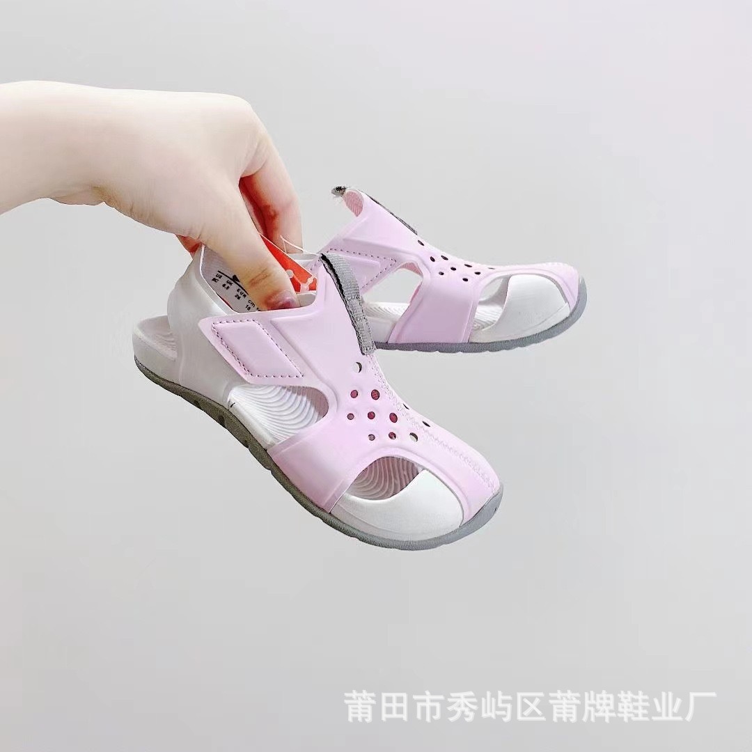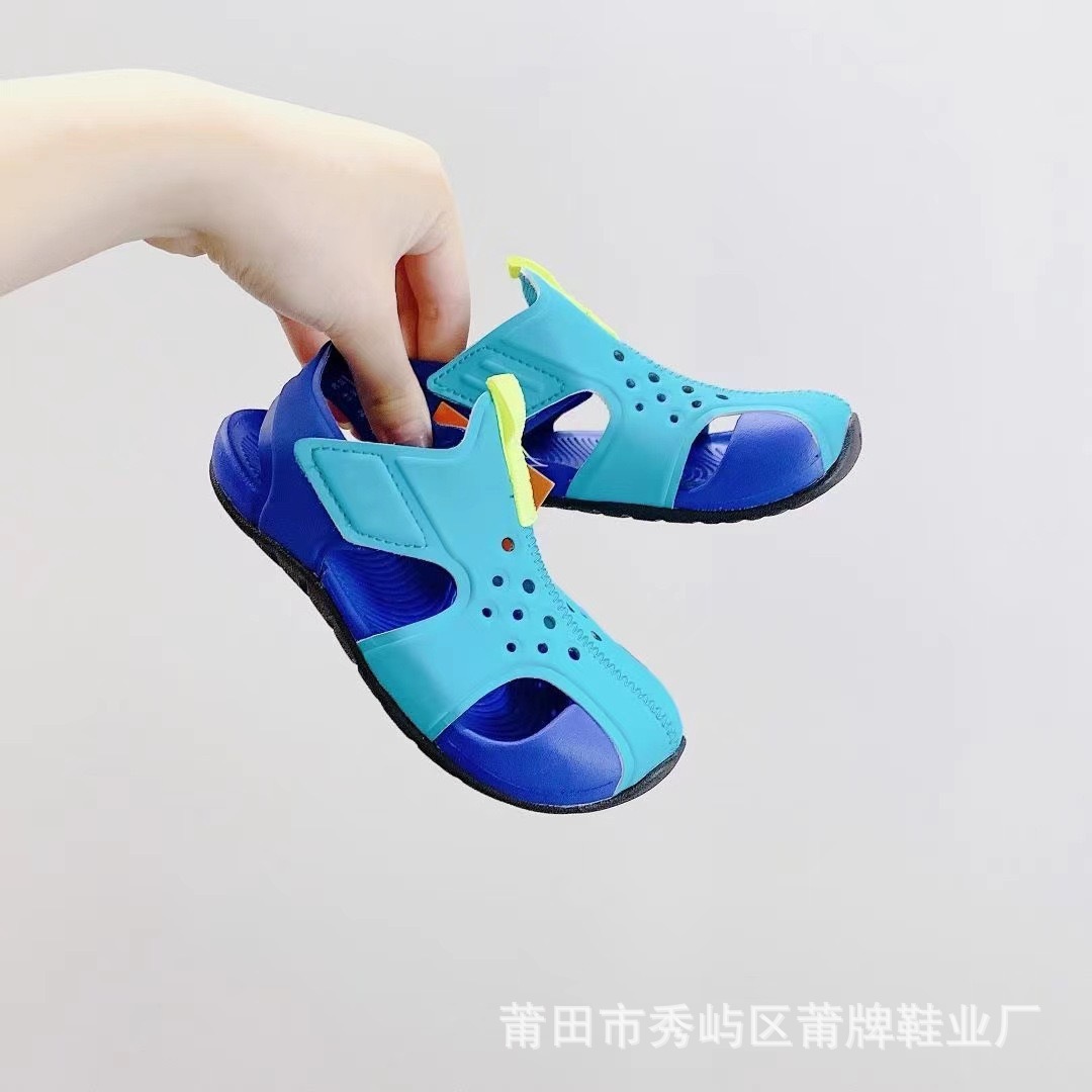 Pu 브랜드 어린이 신발 공장 항공기 어린이 샌들 발가락 발 보호 샌들 남성과 여성의 아기 비치 신발 벨크로 구멍 신발