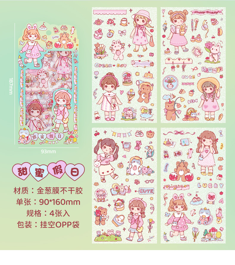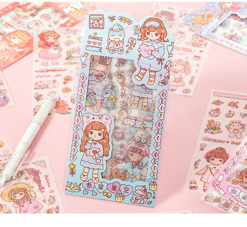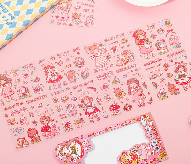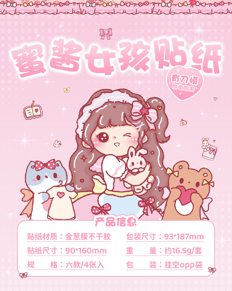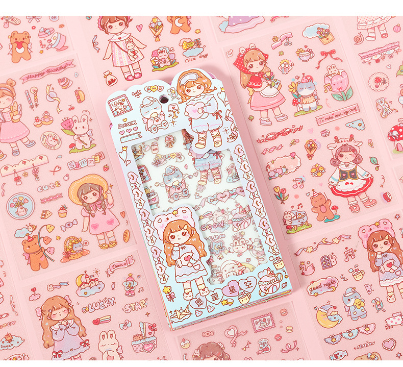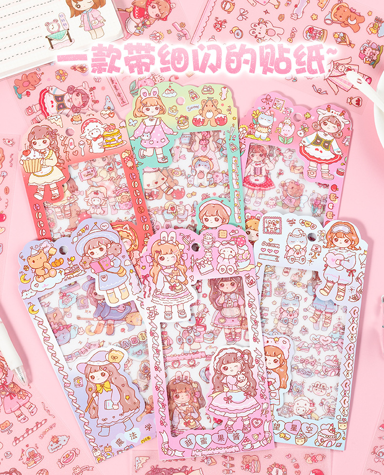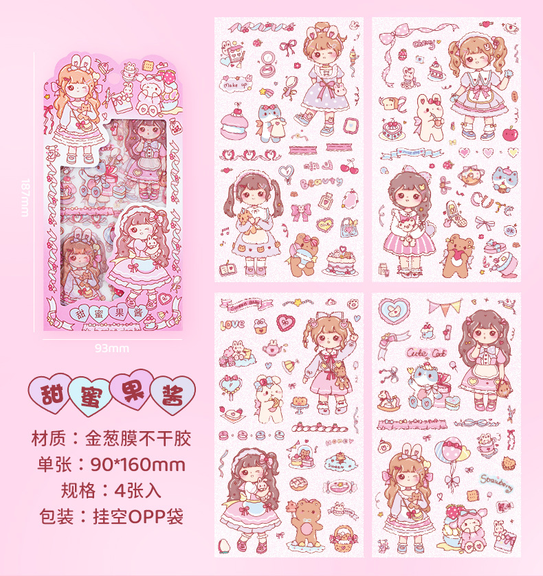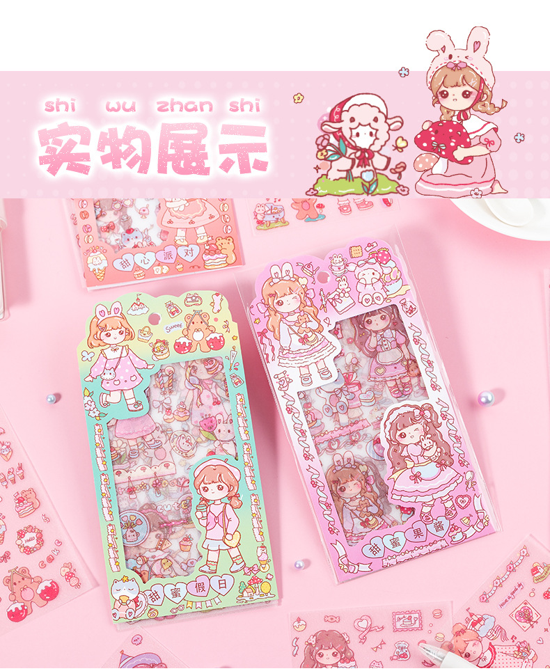 만화 꿀 소스 소녀 스티커 귀여운 소녀 심장 방수 pvc 캐릭터 장식 스티커 DIY 저널 소재 스티커스토어 가기