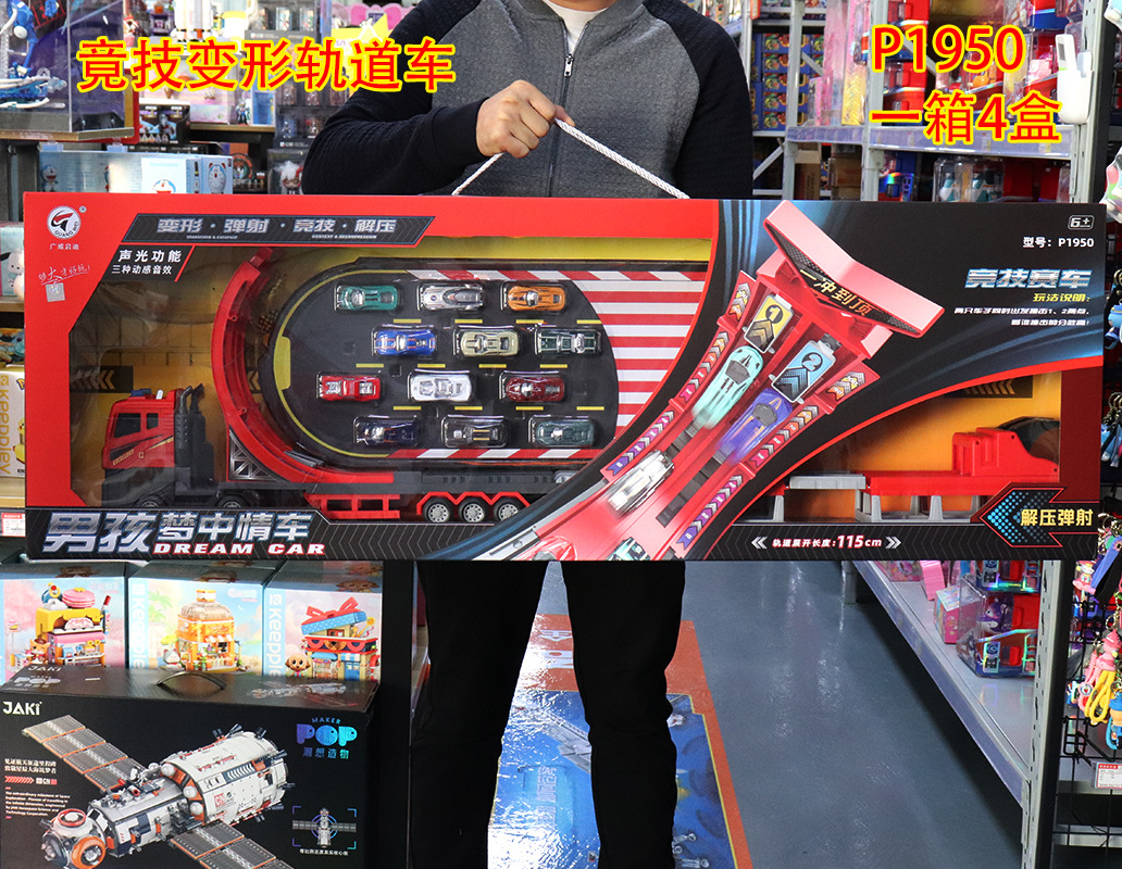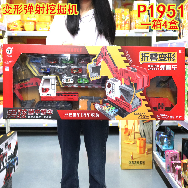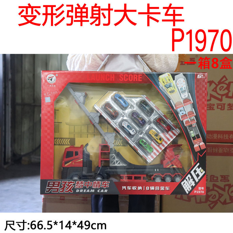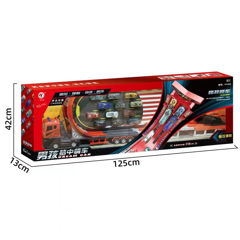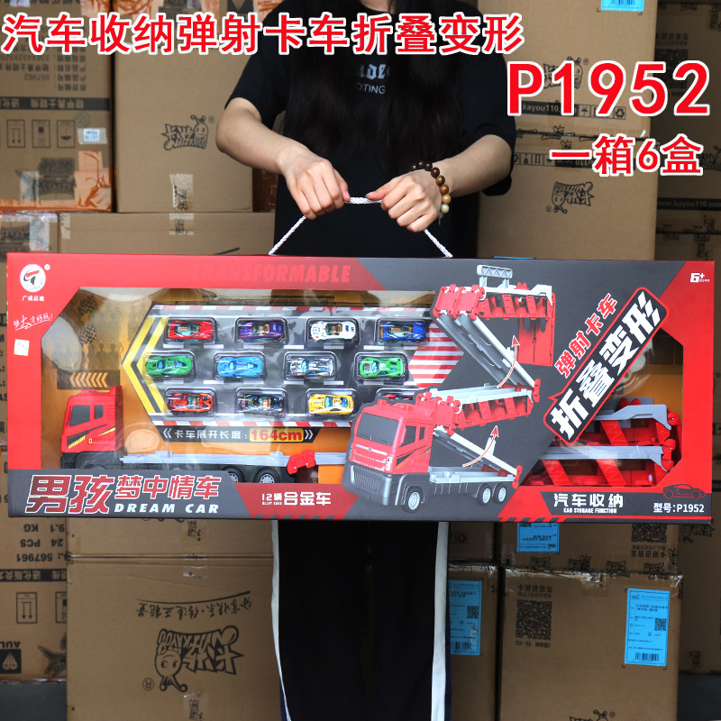 Guangwei Qidi 컨테이너 소방차 변형 대형 트럭 어린이 운송 접이식 트랙 발사 자동차 주차 장난감스토어 가기