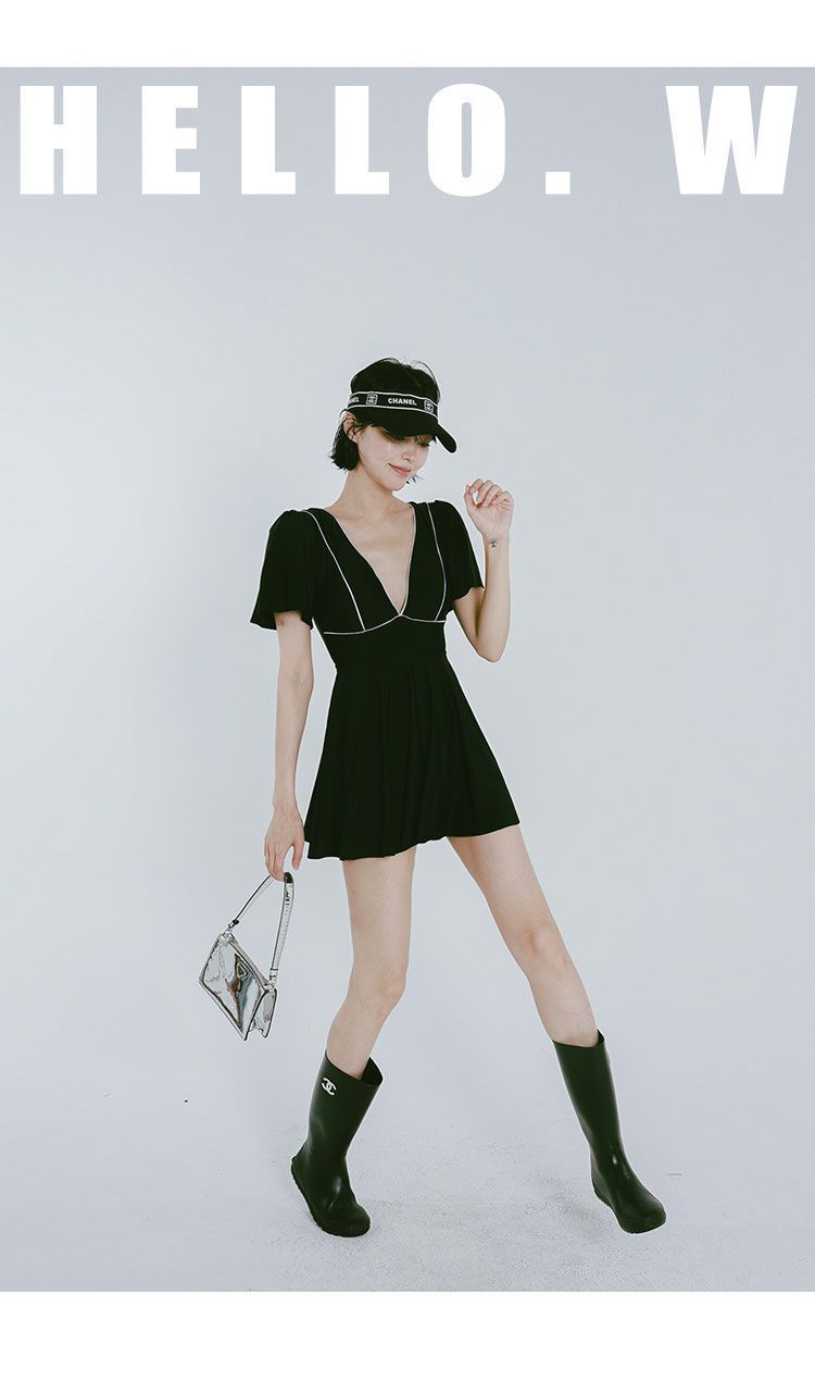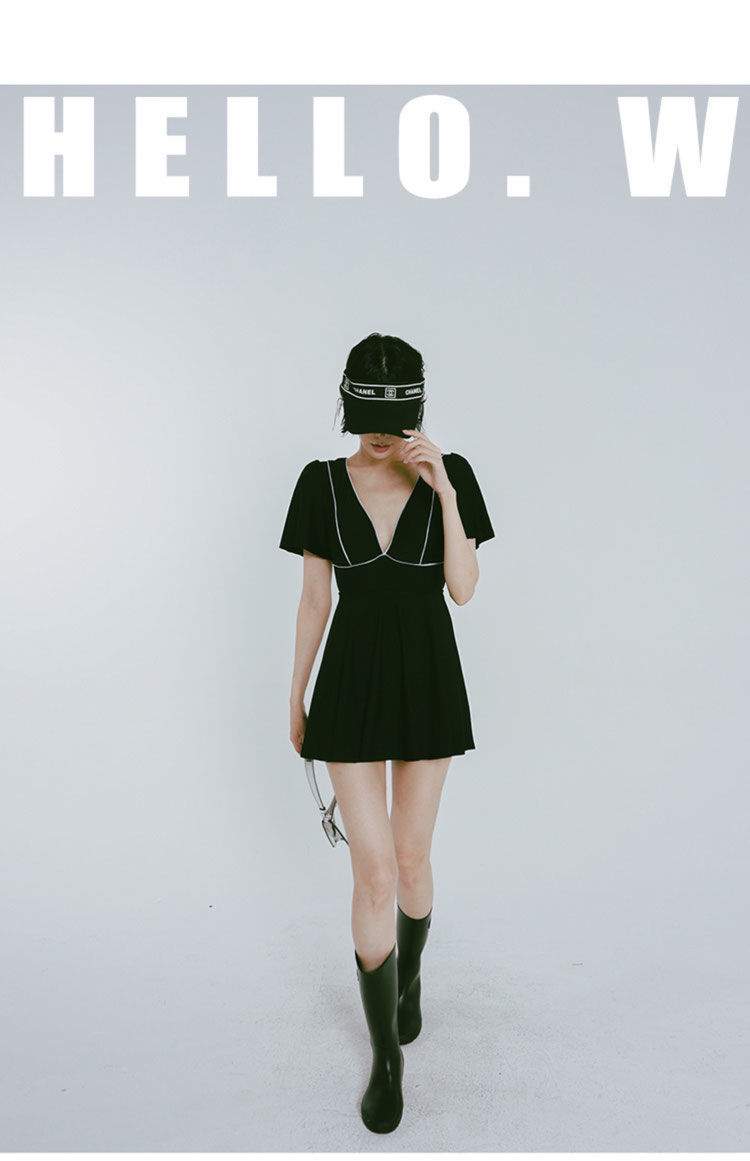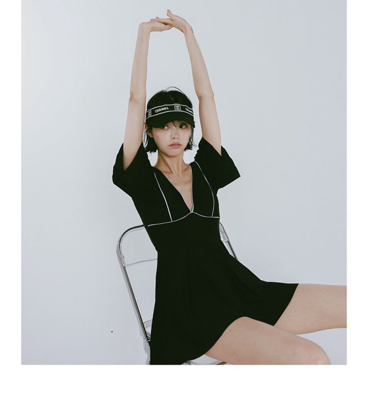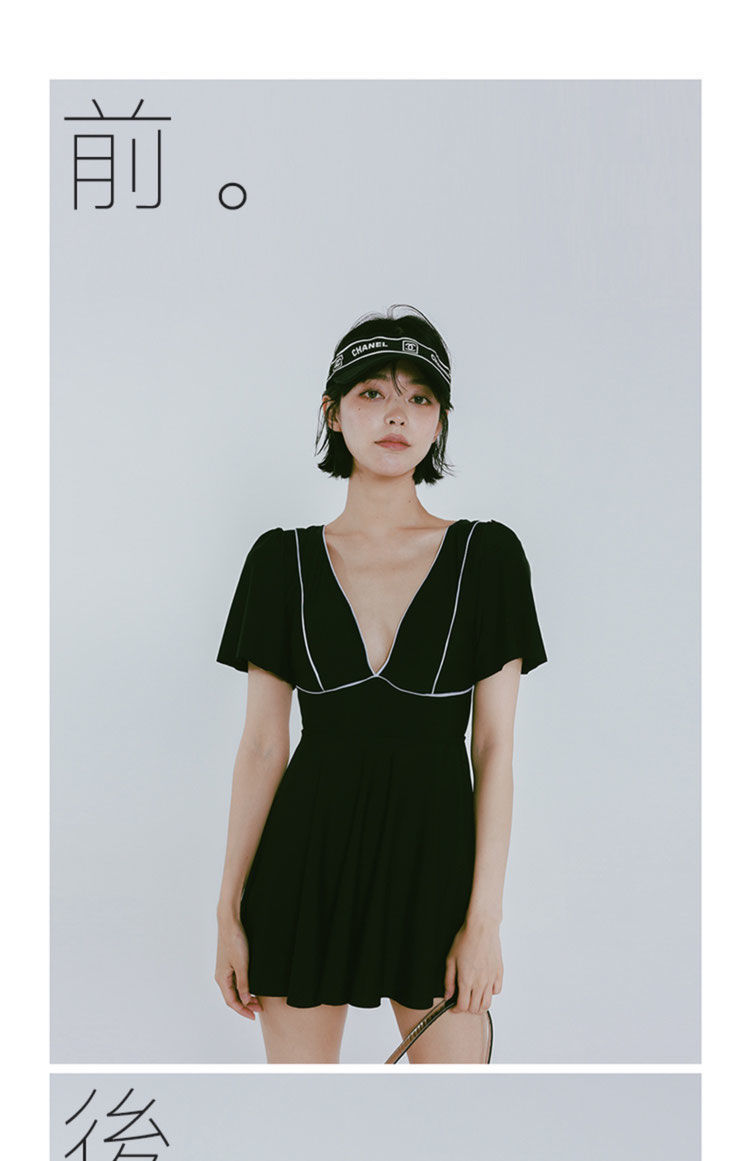 한국 수영복 여성의 새로운 배꼽 덮음 슬리밍 딥 V 넥 커버링 원피스 스타일 보수적 인 온천 수영복 여성 수영복스토어 가기