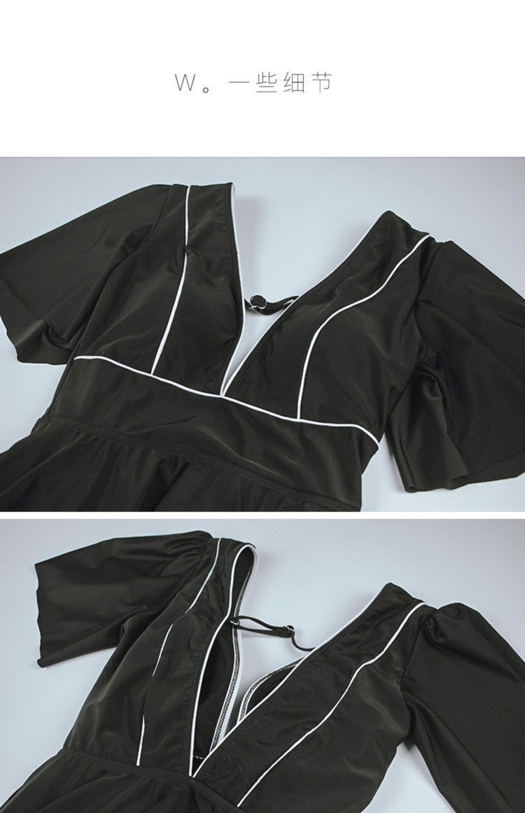 한국 수영복 여성의 새로운 배꼽 덮음 슬리밍 딥 V 넥 커버링 원피스 스타일 보수적 인 온천 수영복 여성 수영복