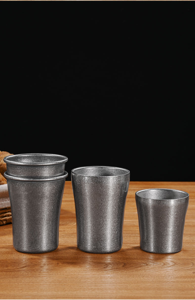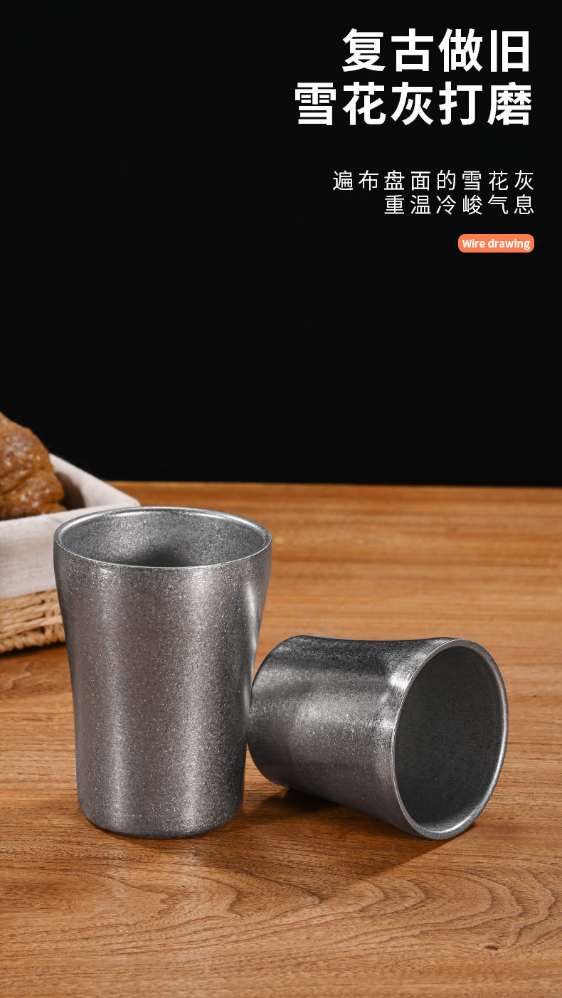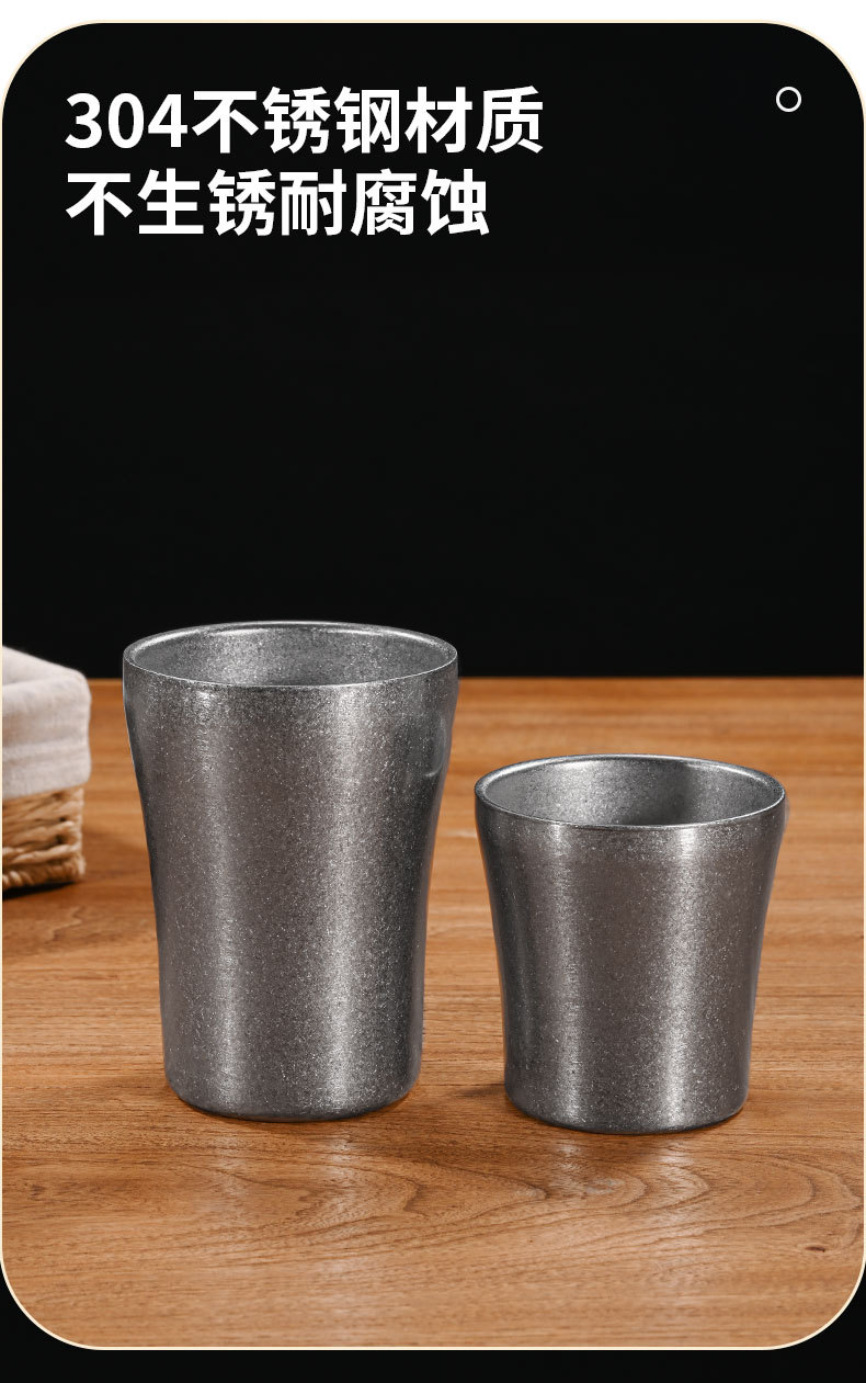 도매 레트로 304 스테인리스 이중층 물컵, 방열, 빈티지 산업 스타일 커피컵, 야외 식기, 캠핑컵