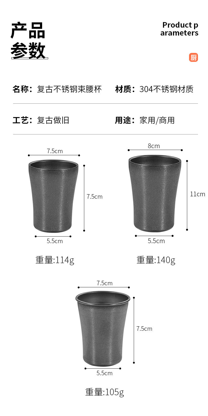 • 180ml 더블 레이어 허리 컵 (레트로 골드)
