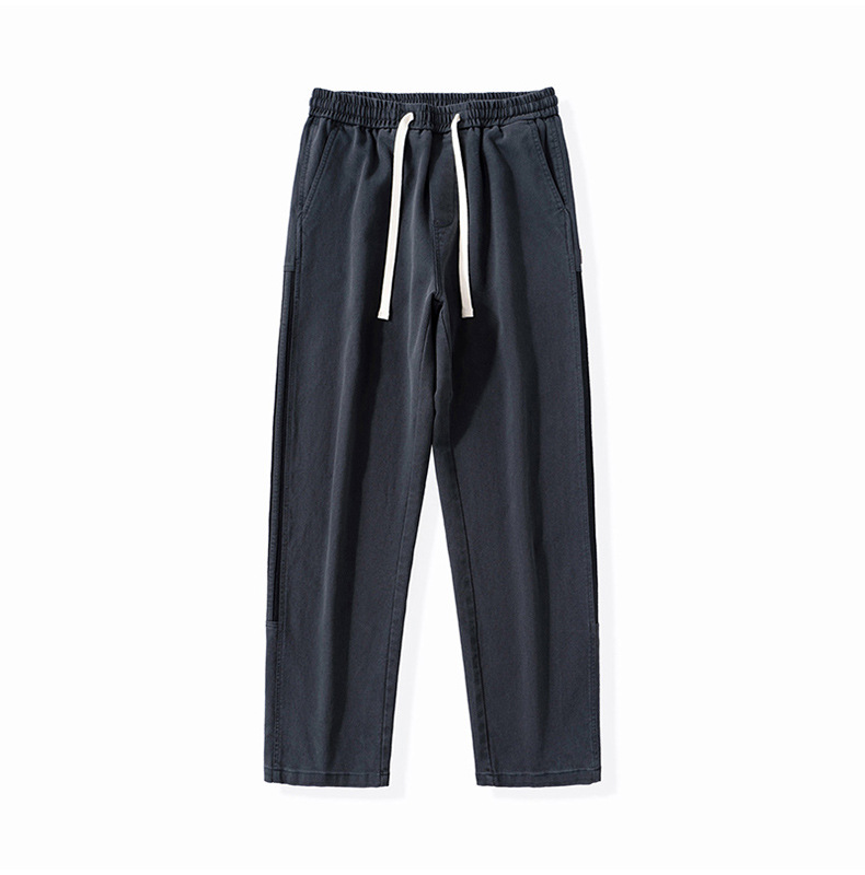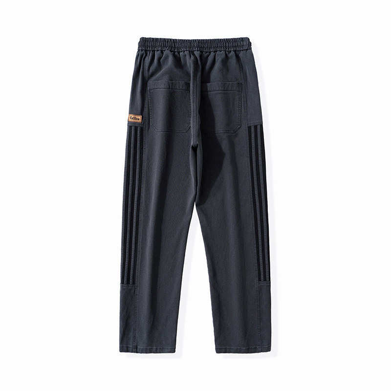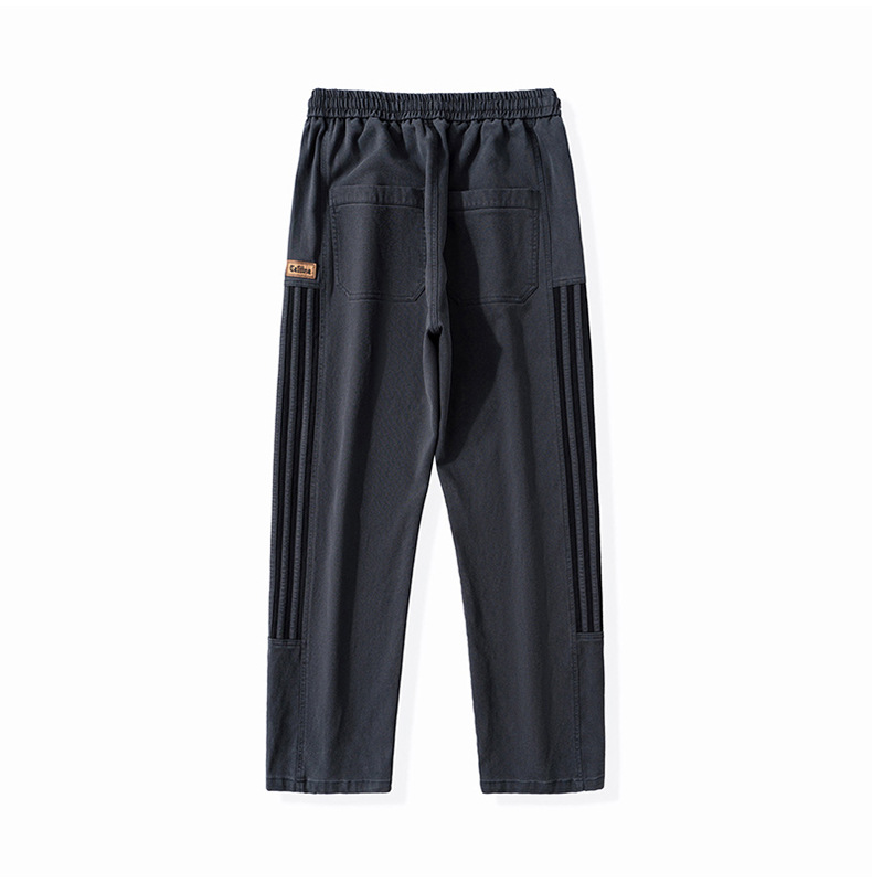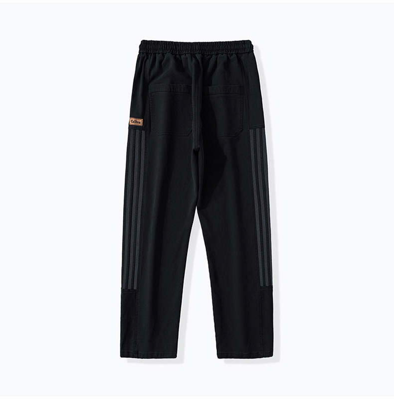 2025 남학생 용 마이크로 탄성 편안한 스트레이트 롱 팬츠 올매치 스트라이프 디자인 센스 테더 탄성 허리 바지스토어 가기