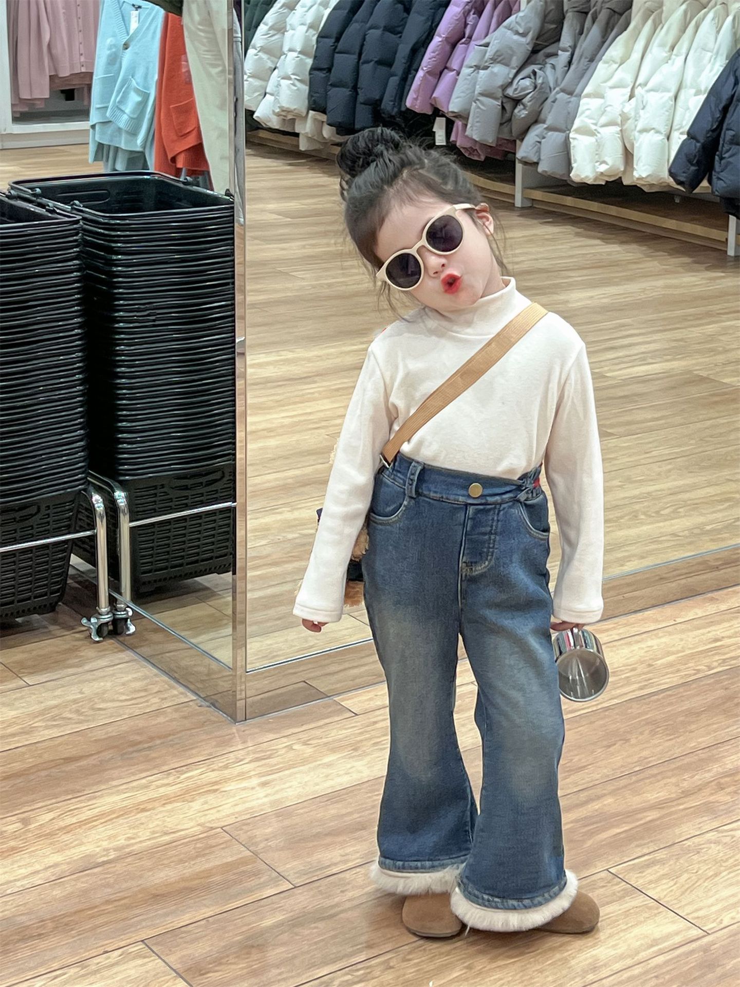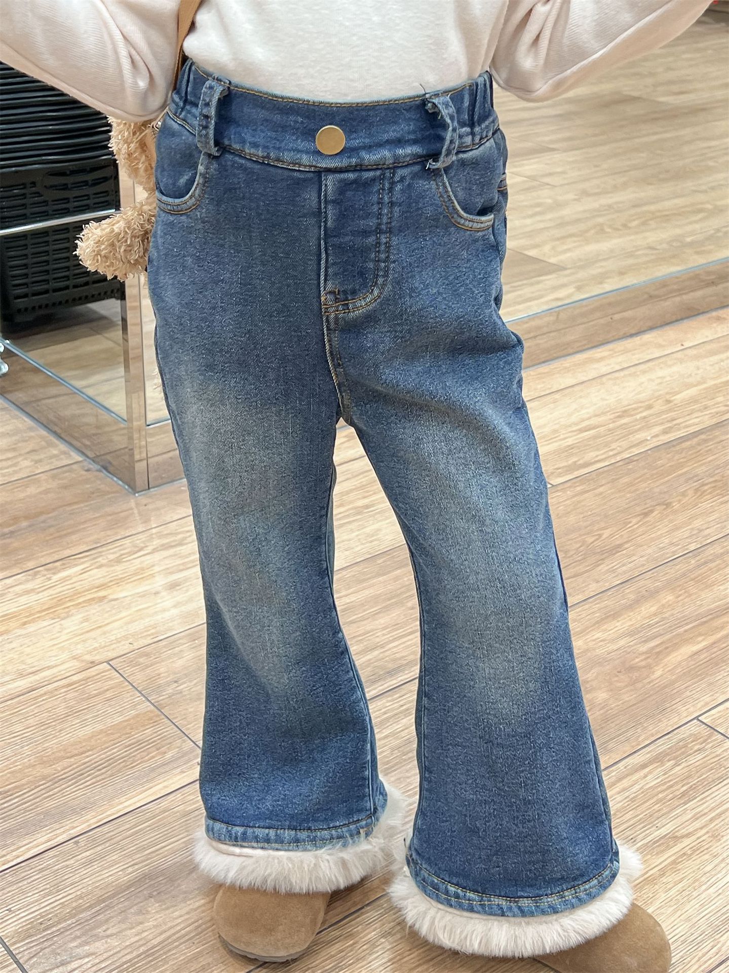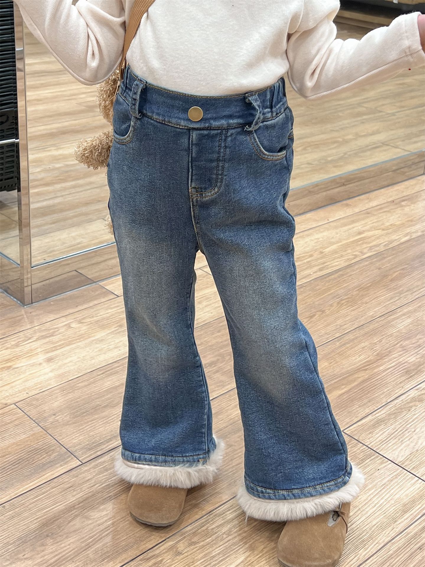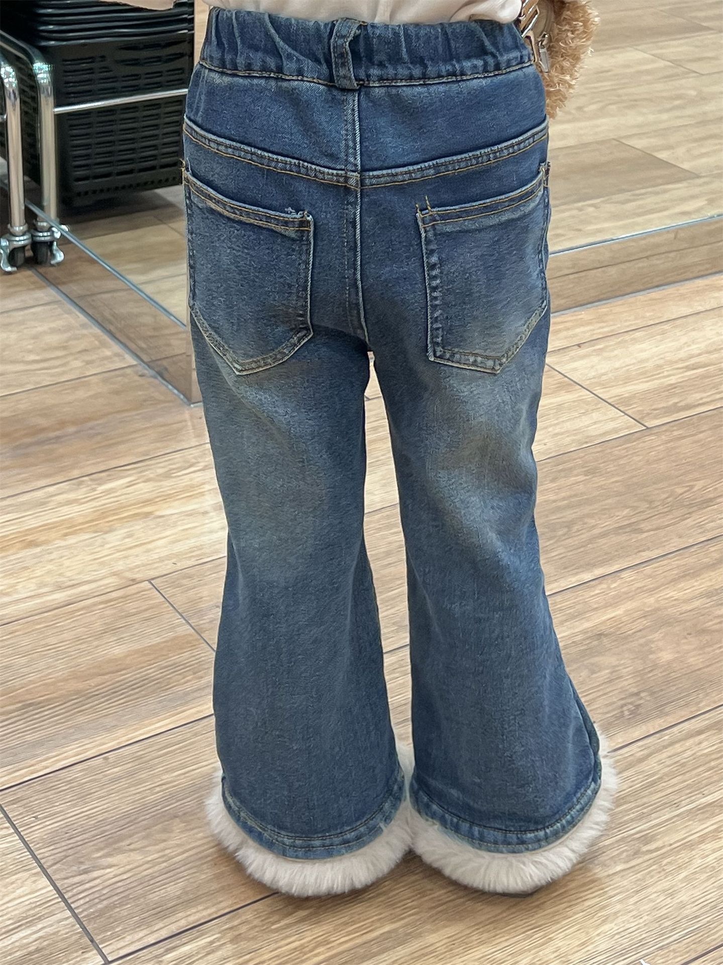 서양식 복고풍 소녀의 가을과 겨울 플레어 팬츠는 두꺼워 진 어린이 원피스 벨벳 코튼 팬츠 가을과 겨울 대외 무역을 기모 가장자리가 닳았습니다.