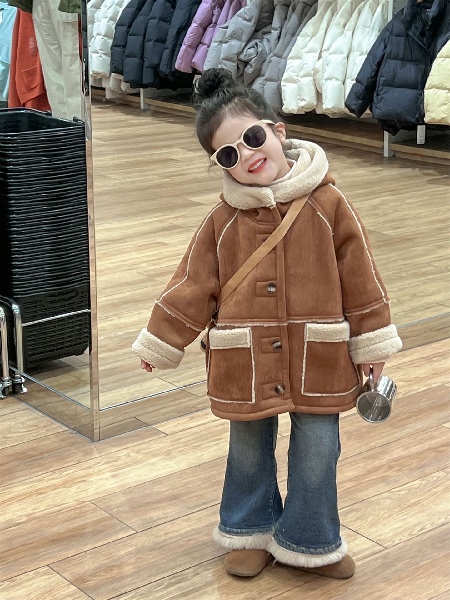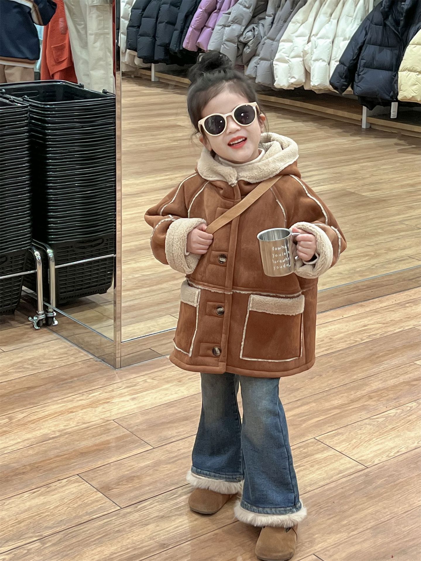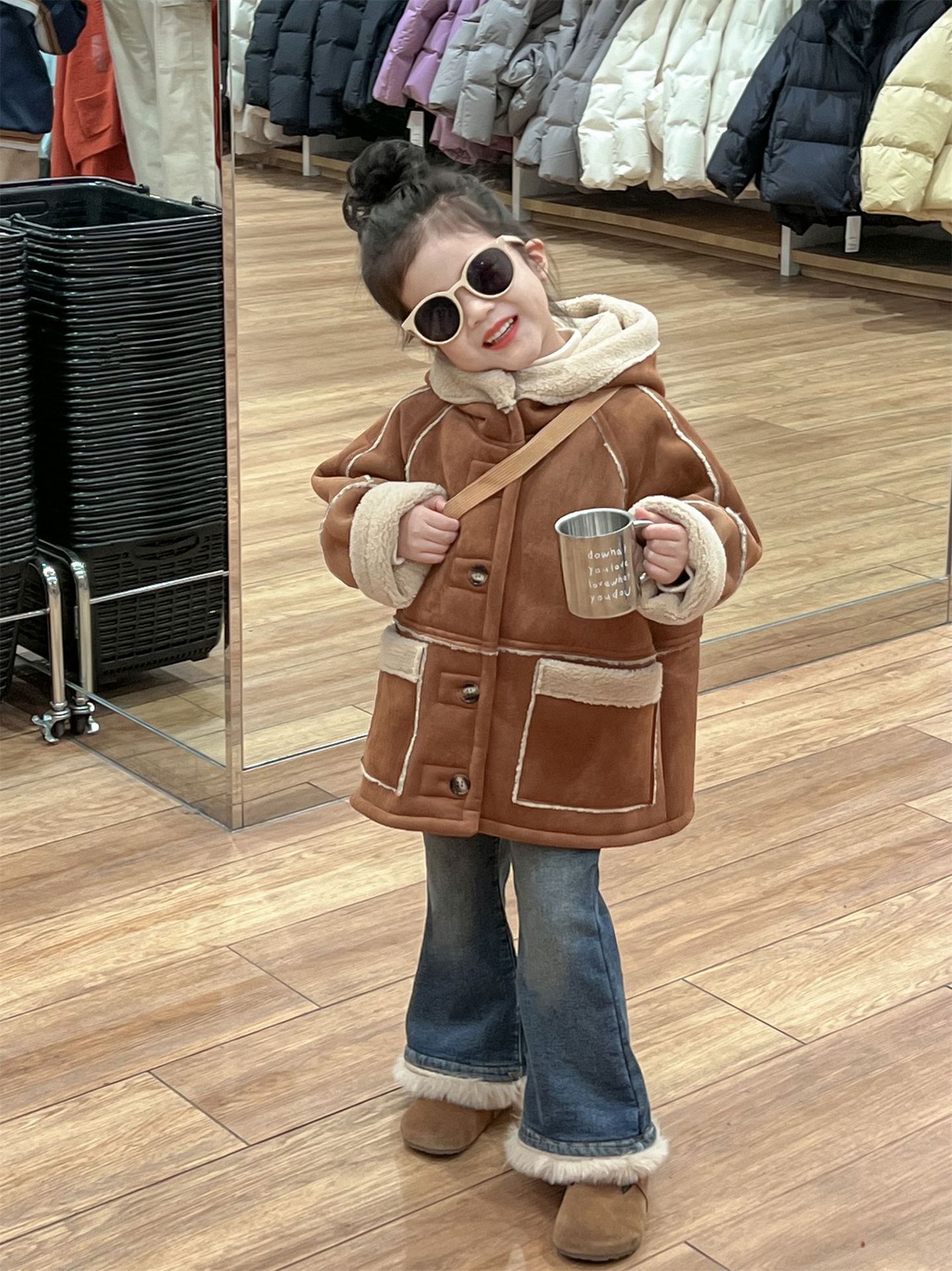 서양식 복고풍 소녀의 가을과 겨울 플레어 팬츠는 두꺼워 진 어린이 원피스 벨벳 코튼 팬츠 가을과 겨울 대외 무역을 기모 가장자리가 닳았습니다.스토어 가기
