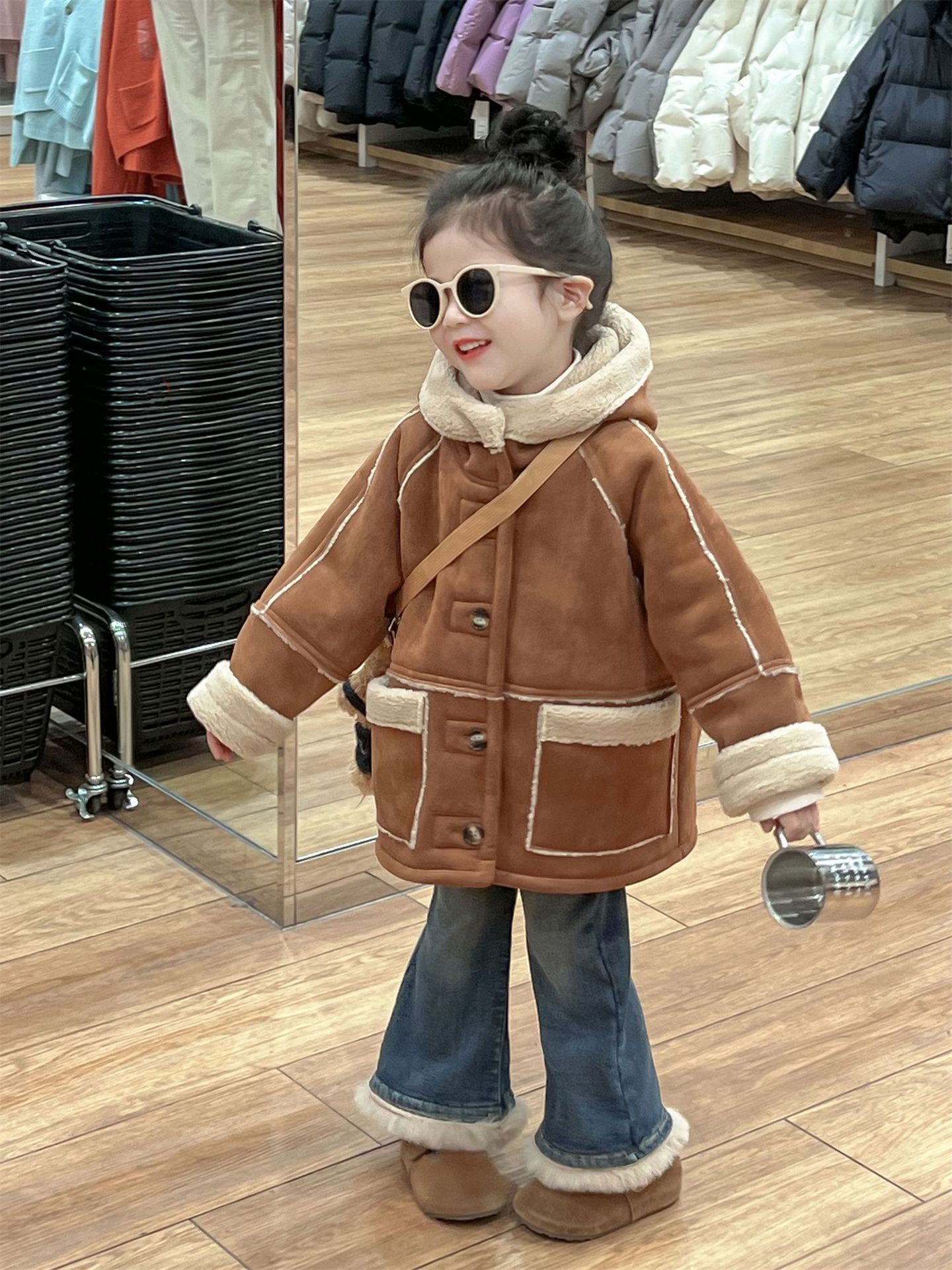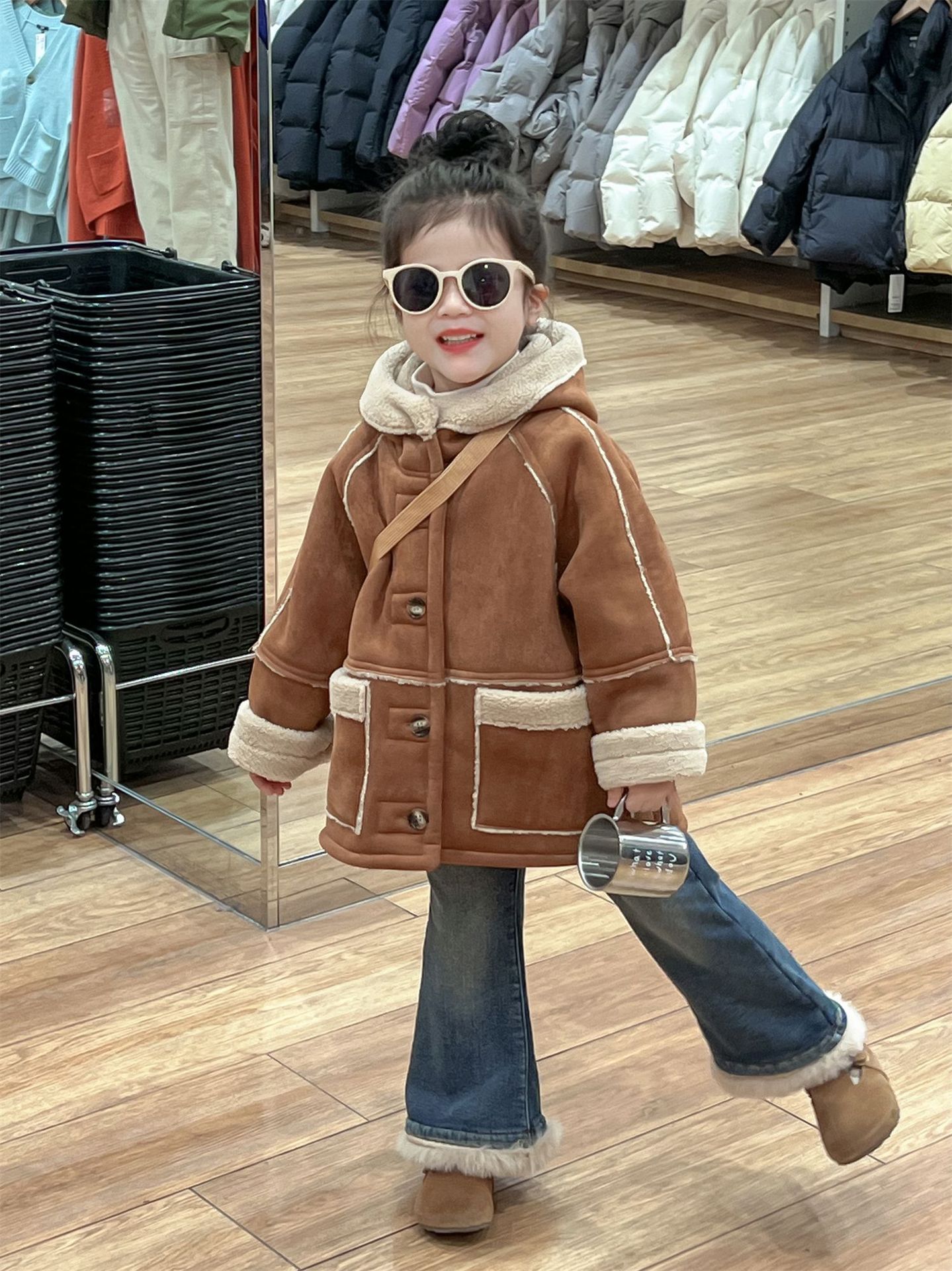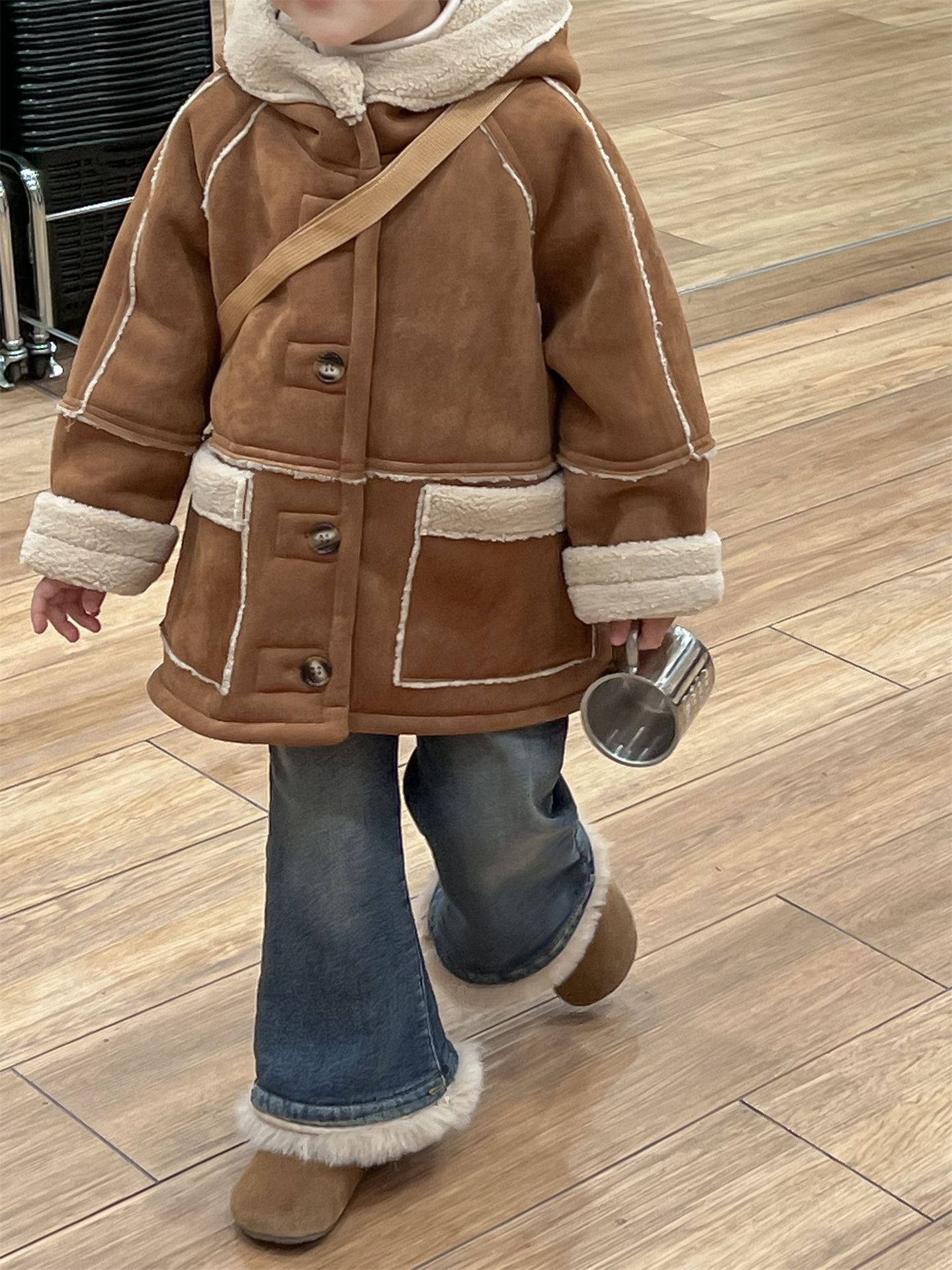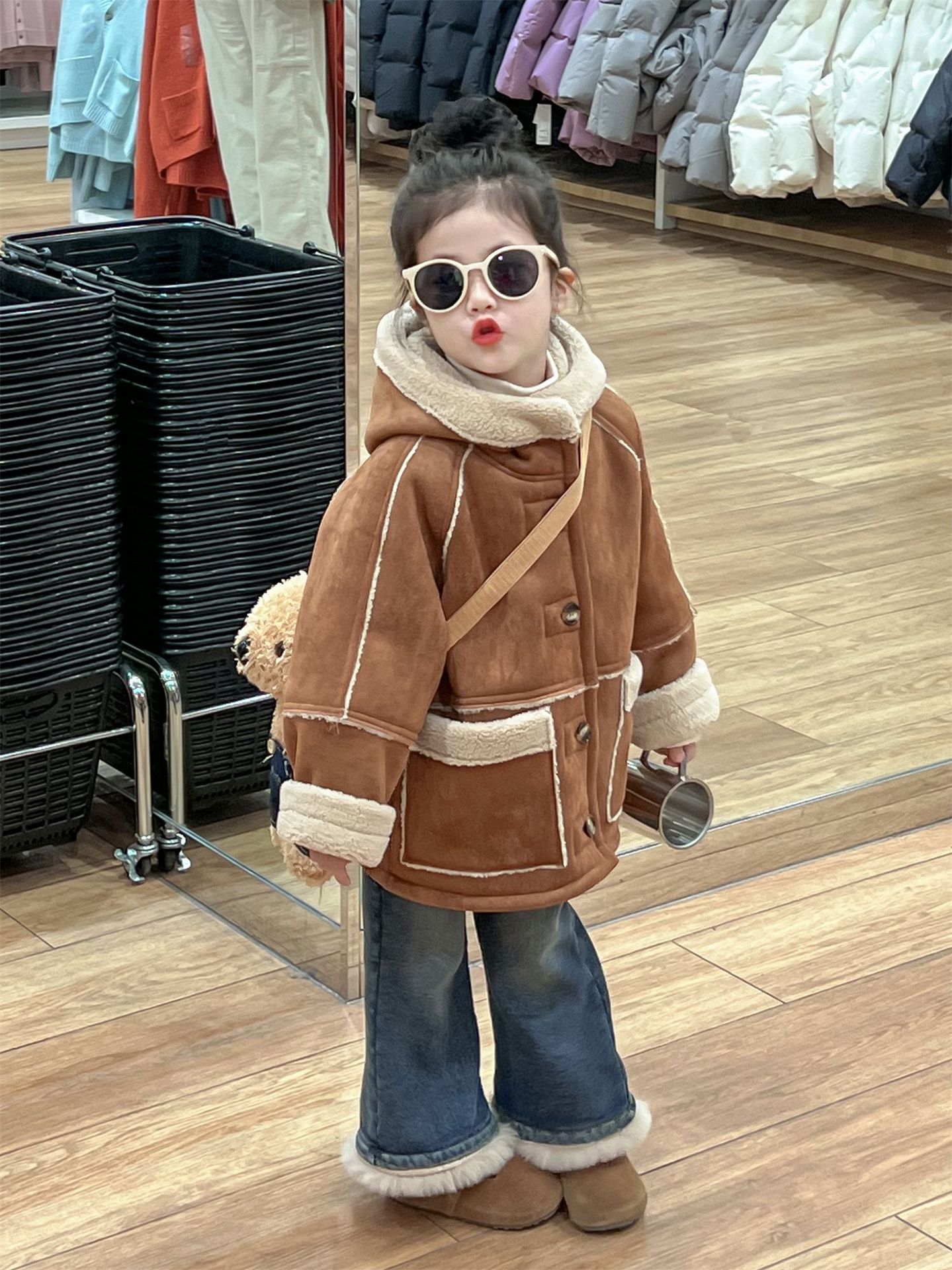 서양식 복고풍 소녀의 가을과 겨울 플레어 팬츠는 두꺼워 진 어린이 원피스 벨벳 코튼 팬츠 가을과 겨울 대외 무역을 기모 가장자리가 닳았습니다.스토어 가기