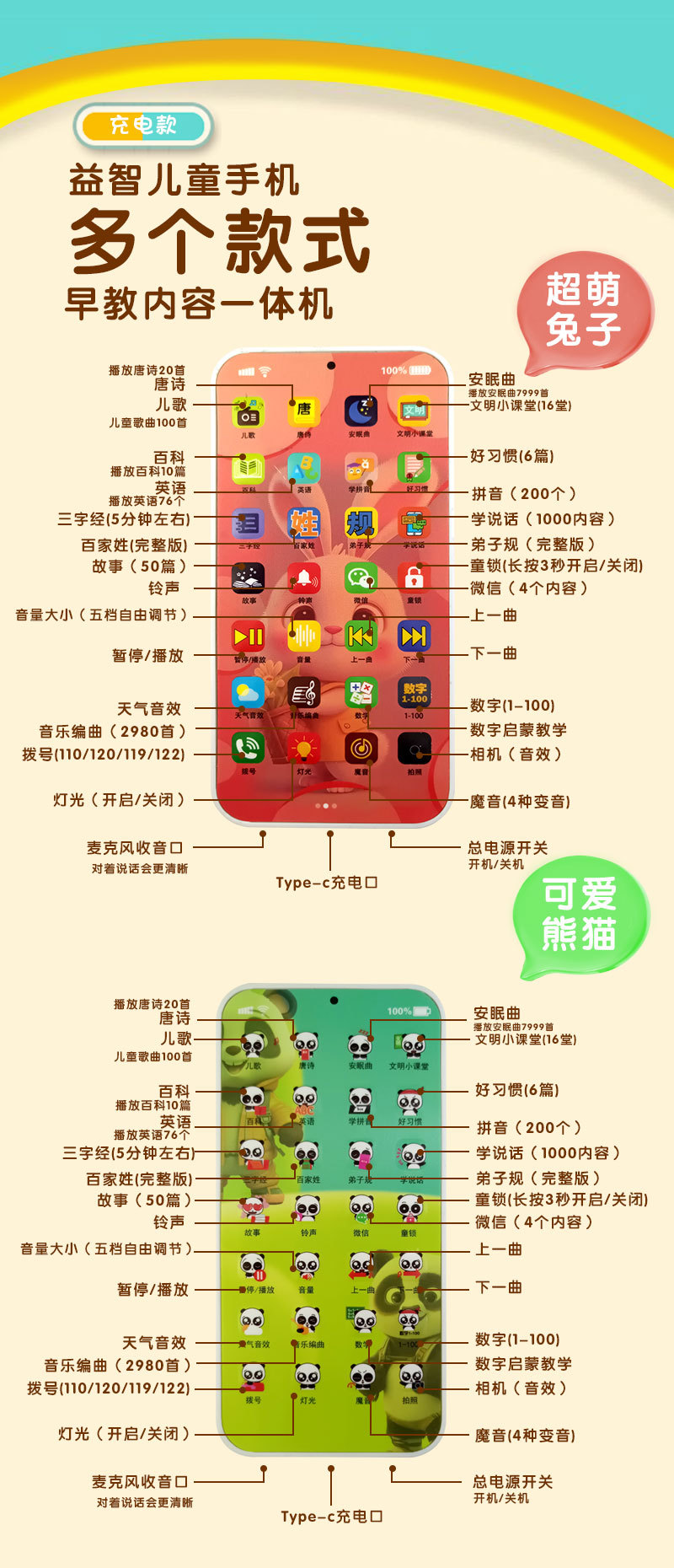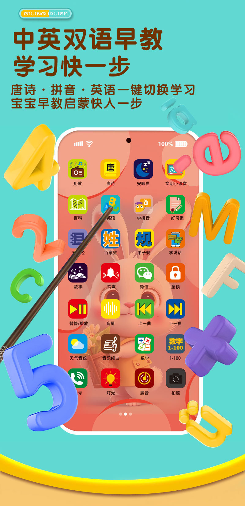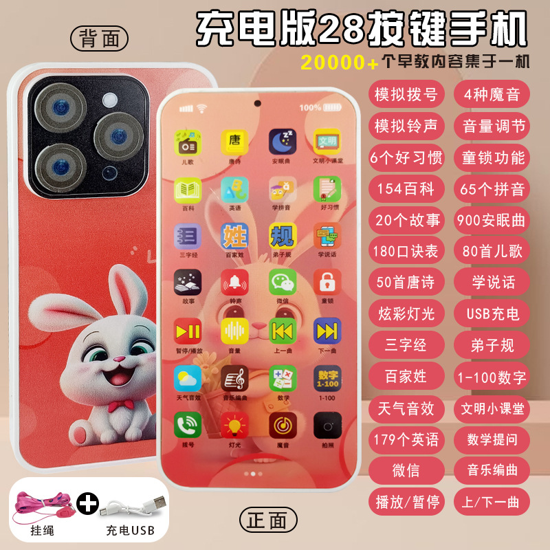 어린이 장난감 조기 교육용 휴대폰 시뮬레이션 스마트 터치스크린 전화기 충전식 아기 학습 스토리 머신 교육용