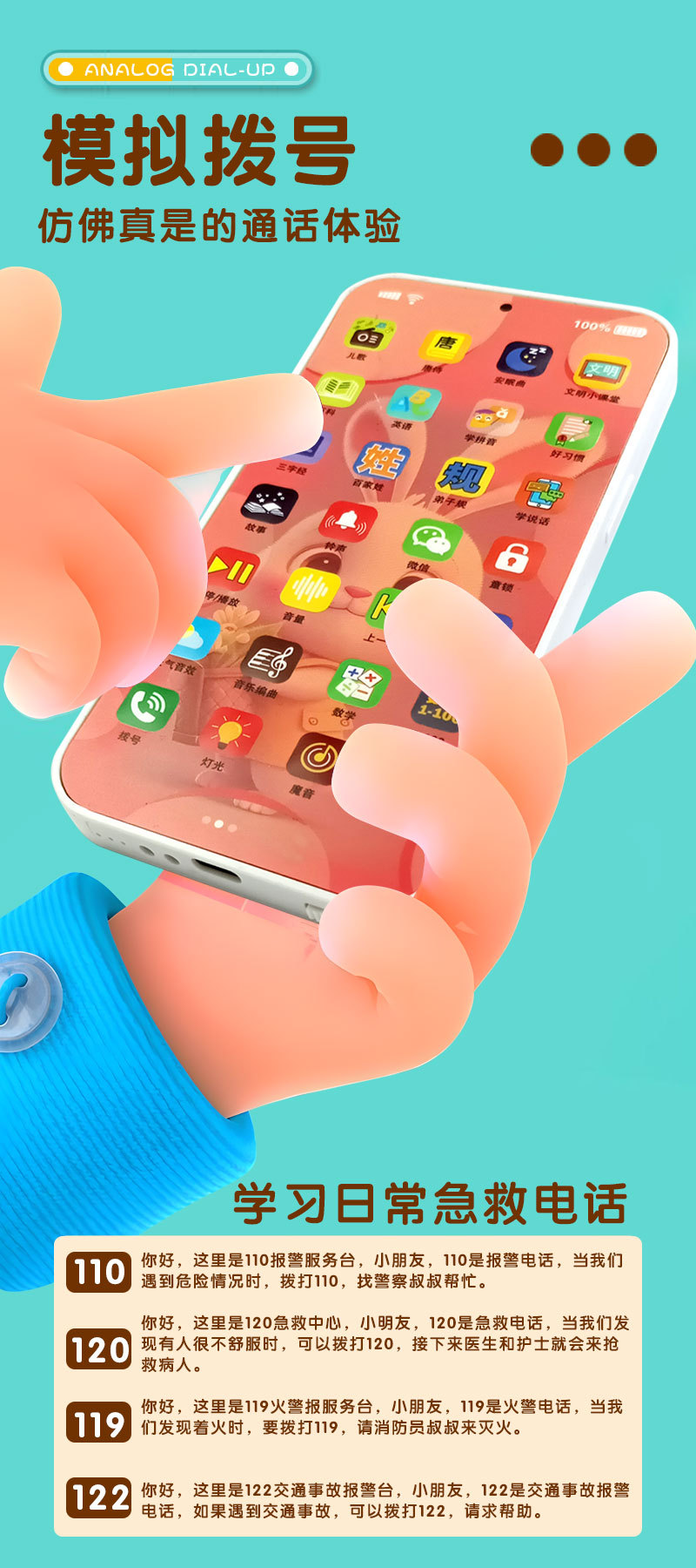 어린이 장난감 조기 교육용 휴대폰 시뮬레이션 스마트 터치스크린 전화기 충전식 아기 학습 스토리 머신 교육용스토어 가기