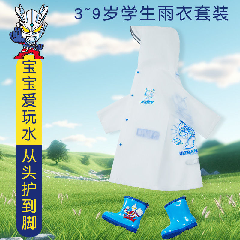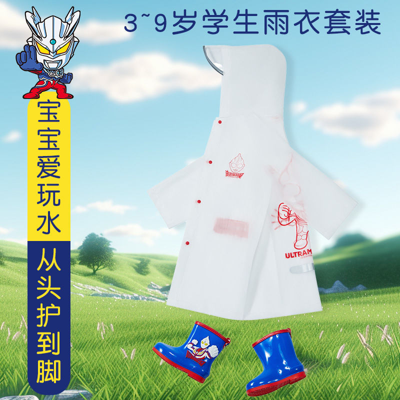 어린이 울트라맨 비옷 남학생 유치원 여학생 판초 학교 특수 스쿨백 방수 전신