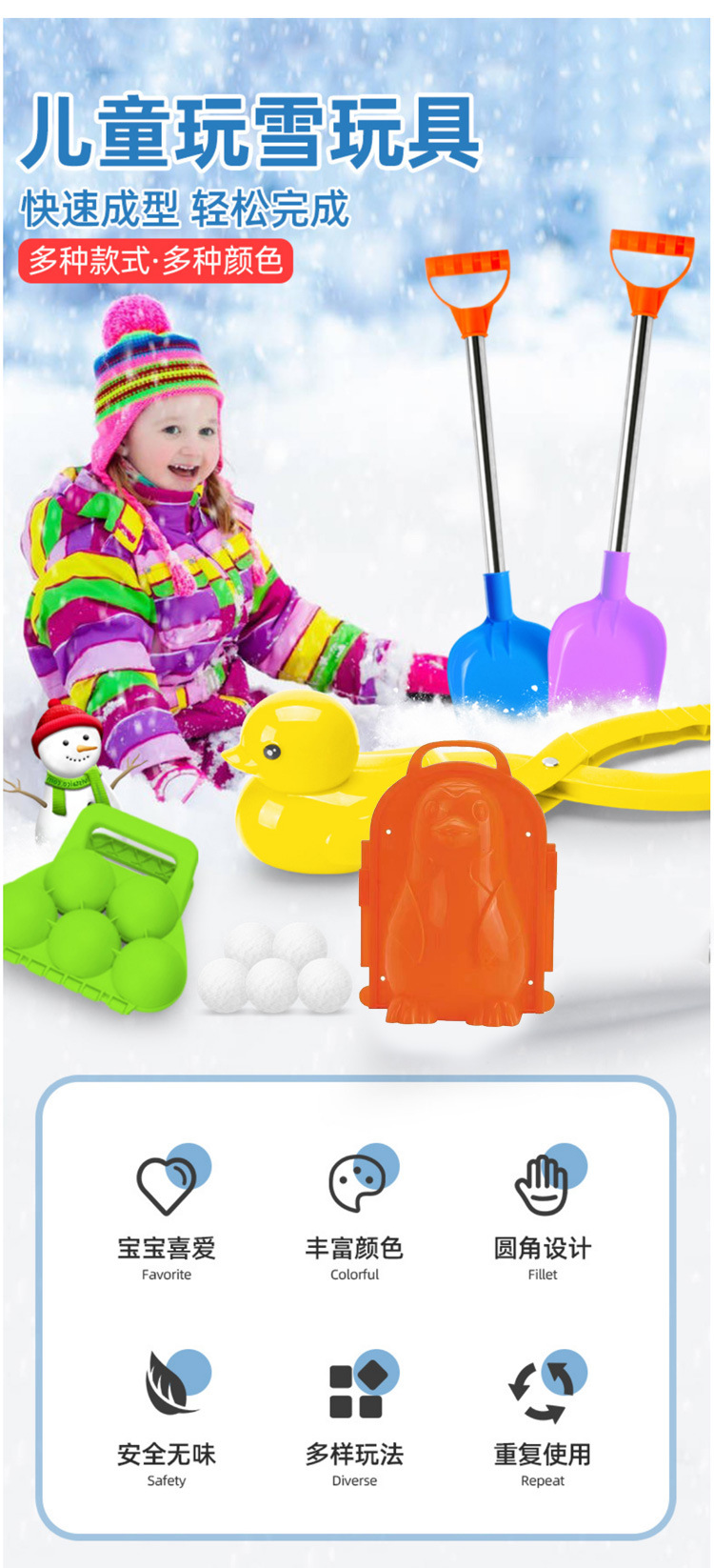 눈덩이 클립 장난감 스노우 삽 스노우 클립 배치 헤어핀 스노우 아티팩트 어린이 야외 오리 눈덩이 눈덩이 싸움 크로스 국경스토어 가기