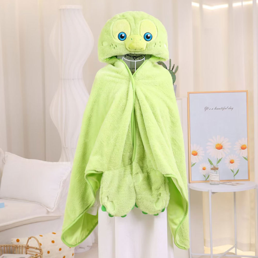 만화 귀여운 에어백 움직일 수 있는 포옹 드래곤 후드 망토 담요 학생 두꺼운 따뜻한 낮잠 망토 에어컨 담요