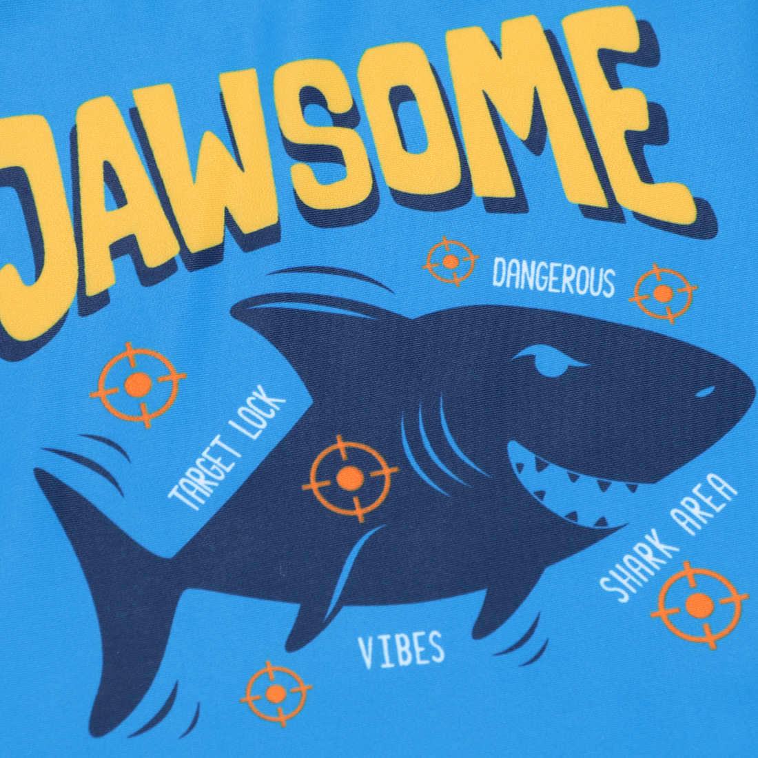 어린이 수영복 남아 수영복 분리형 반팔 반바지 사각형 모자 자외선 차단 라운드넥 만화 상어 어린이용스토어 가기