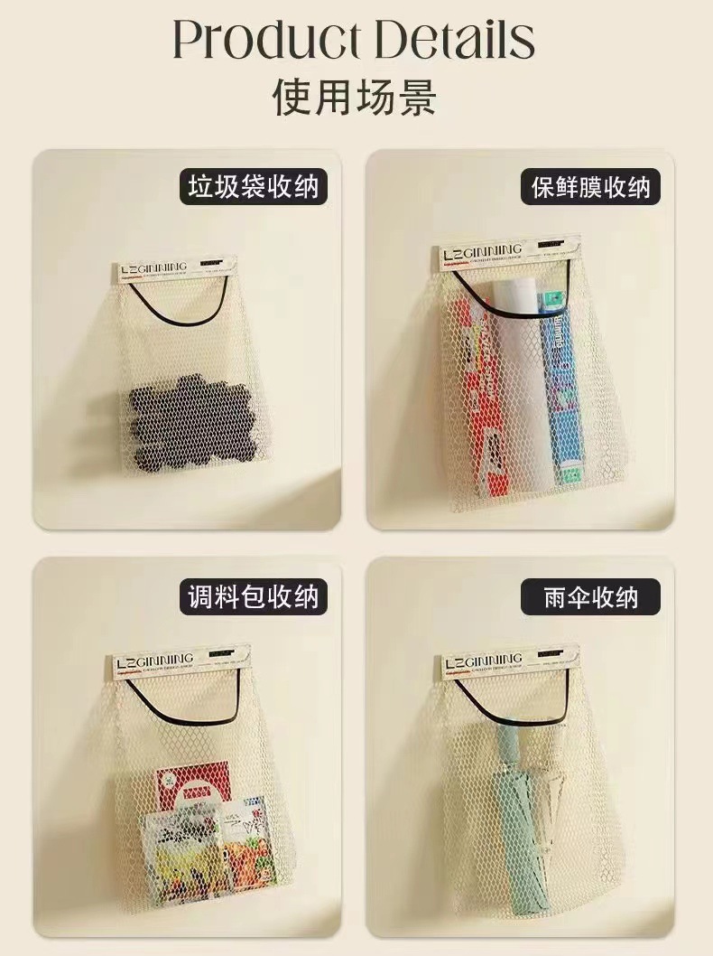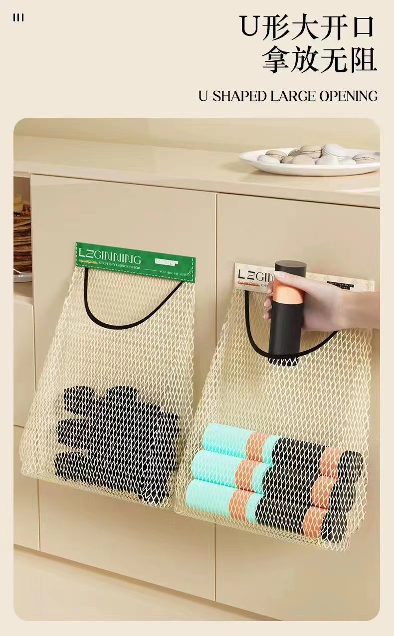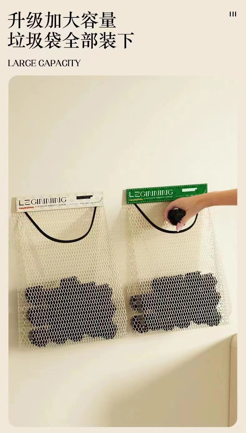 주방 쓰레기 봉투 벽걸이형 대용량 보관 가방 비닐봉투 매직 테이프 메쉬 주방 정리 가정용스토어 가기