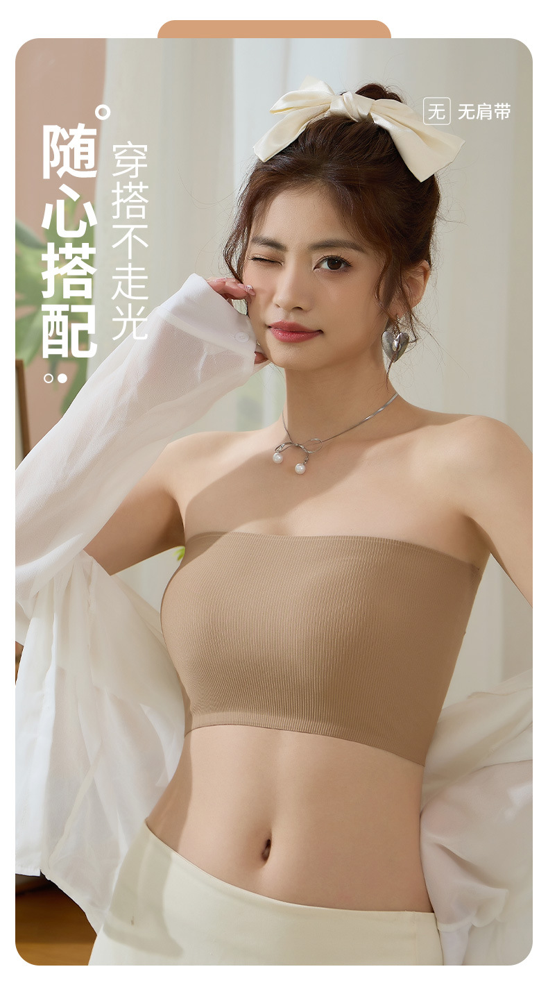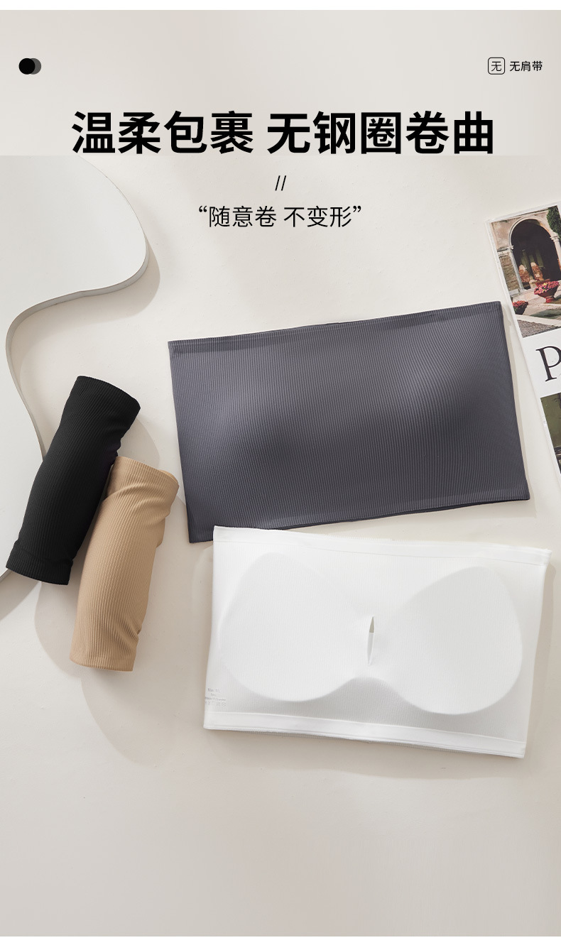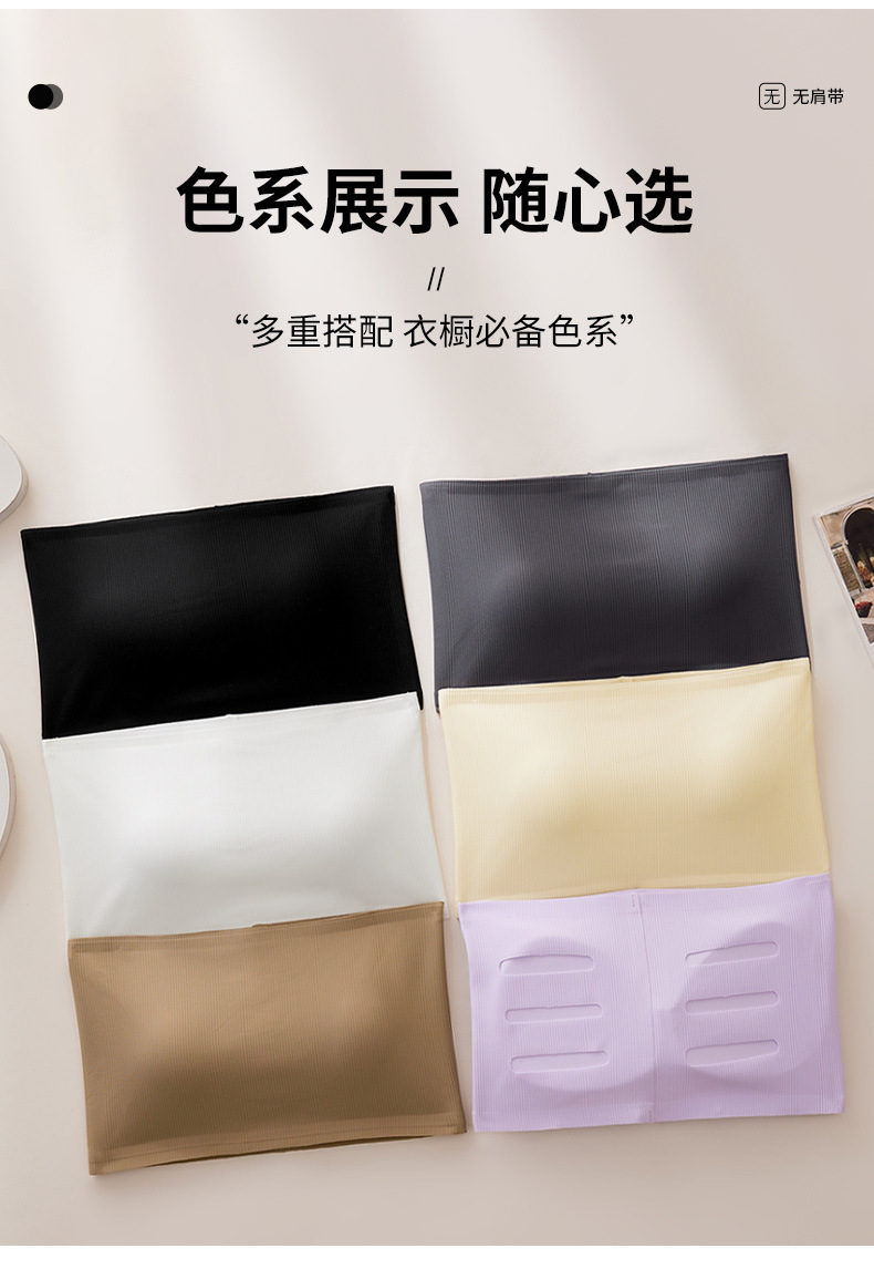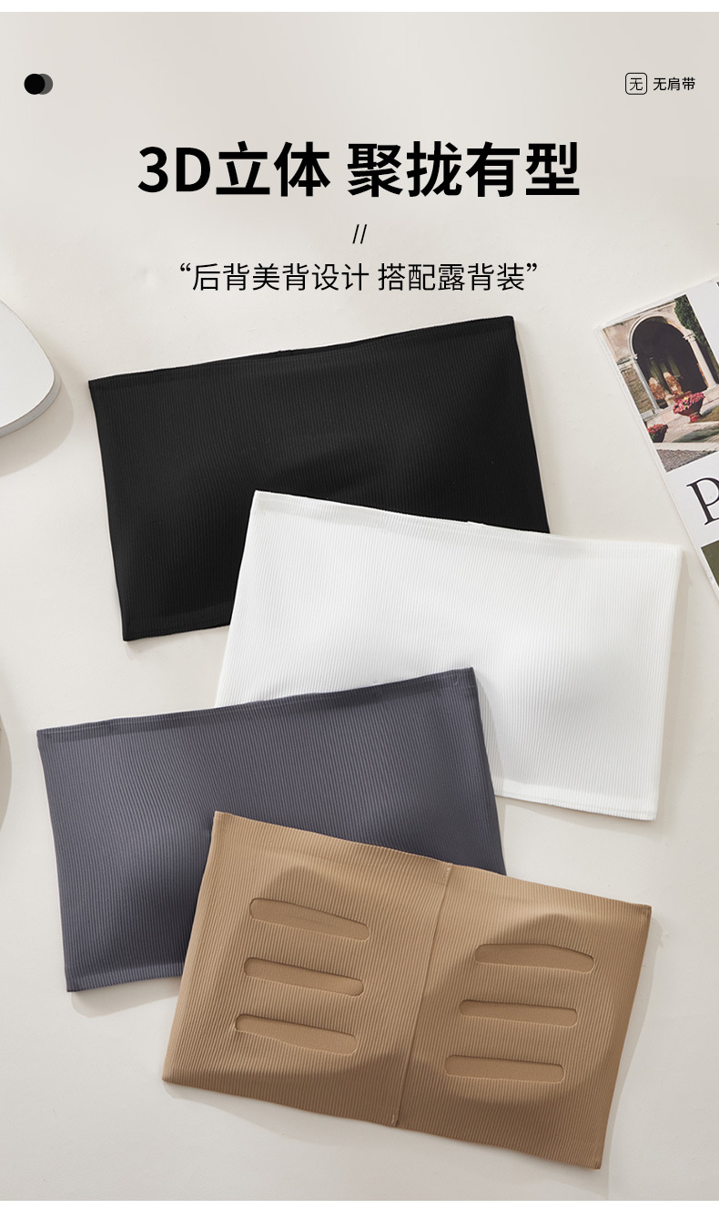 아이스 실크 스트랩리스 미끄럼 방지 브라탑, 속이 비치는 아름다운 등 디자인, 편안하고 자국이 남지 않는 노와이어 베스트, 원라인 브라탑, 여름용 백리스스토어 가기