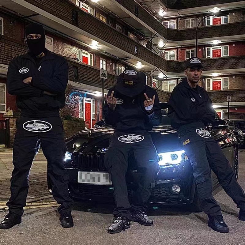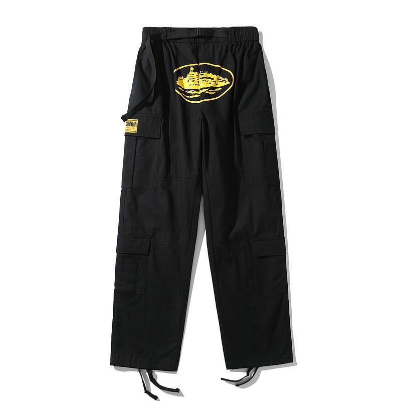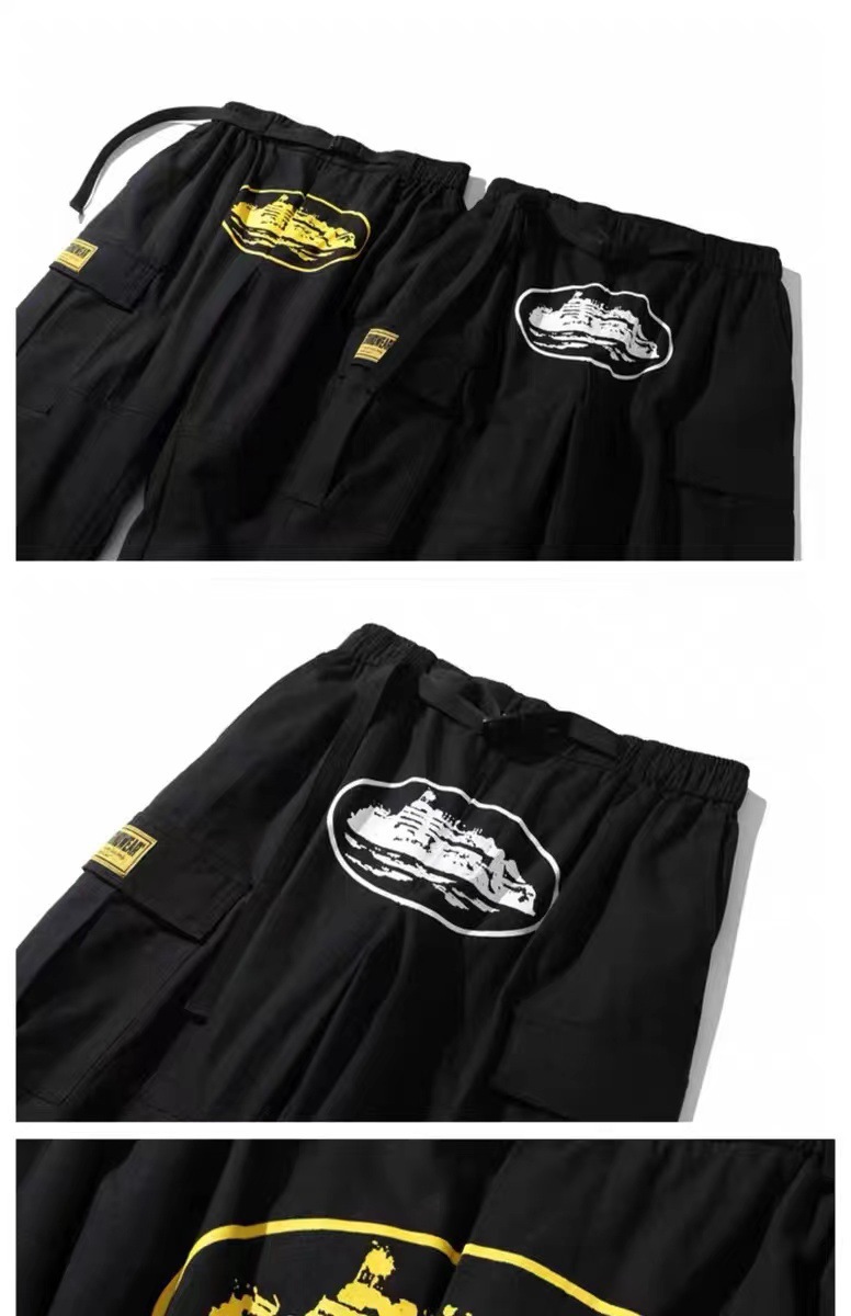 2023 미국 패션 브랜드 코르테이즈 데빌 아일랜드 프린트 바지 남성 하이 스트리트 복고풍 느슨한 멀티 포켓 스트레이트스토어 가기
