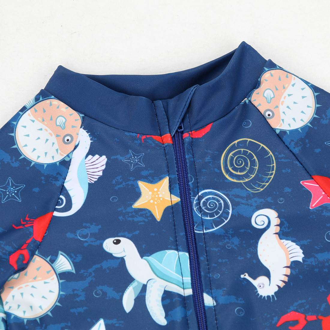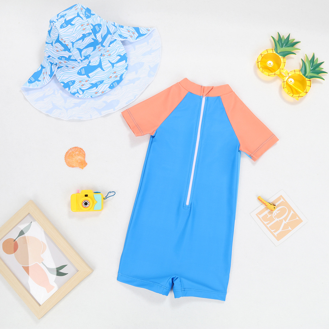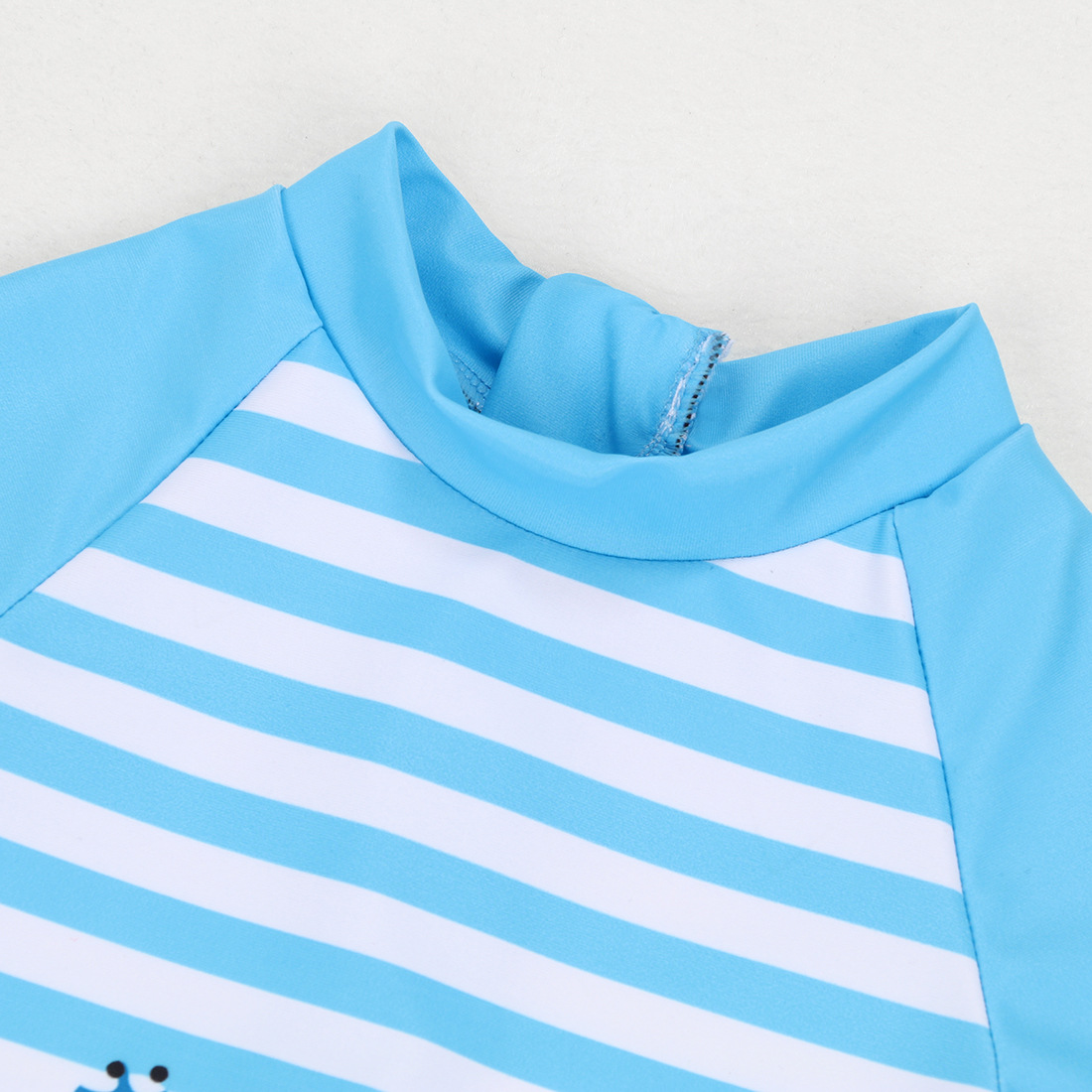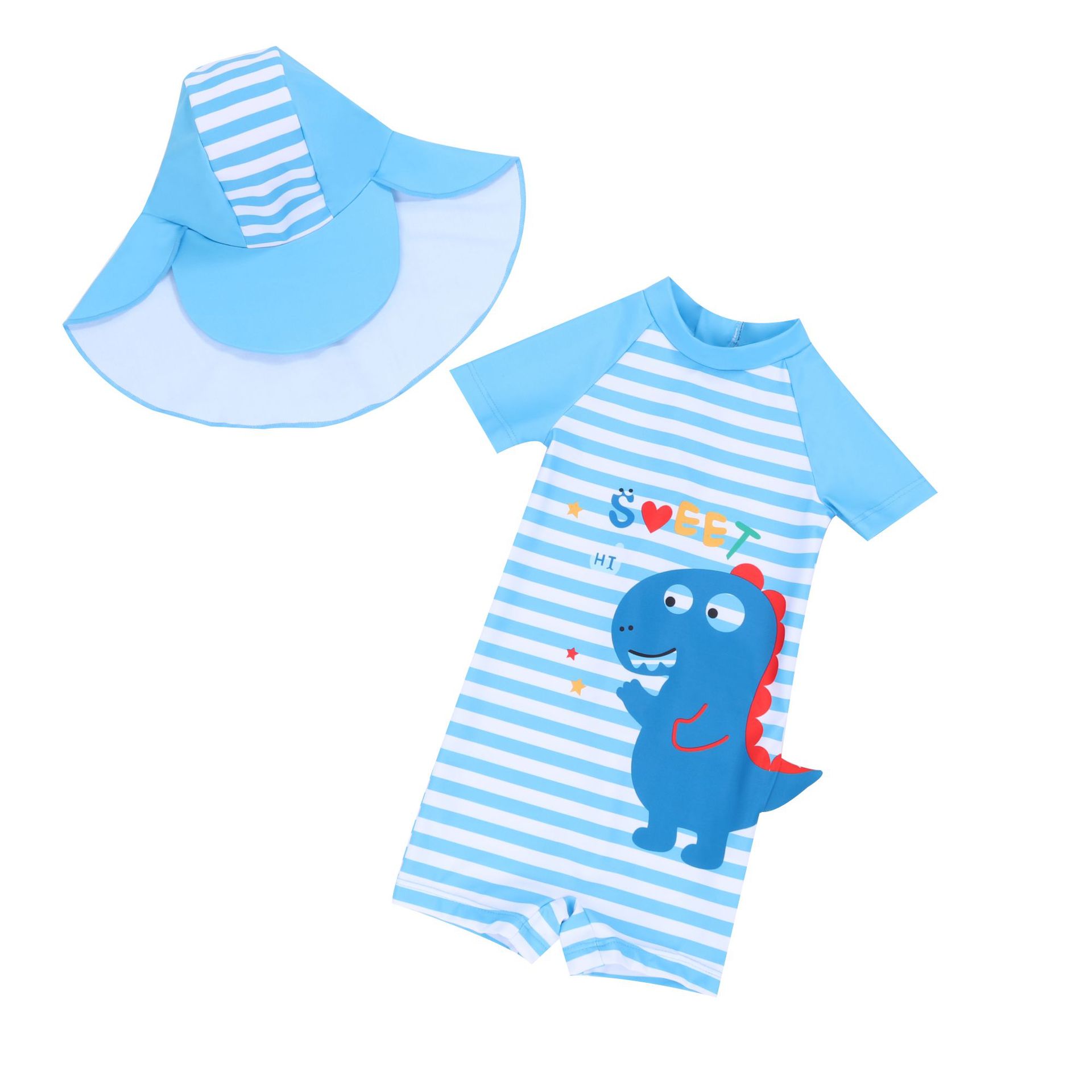 어린이 수영복 소년 수영복 반팔 반바지 악마 모자 태양 보호 줄무늬 지퍼 승무원 어린이 수영복