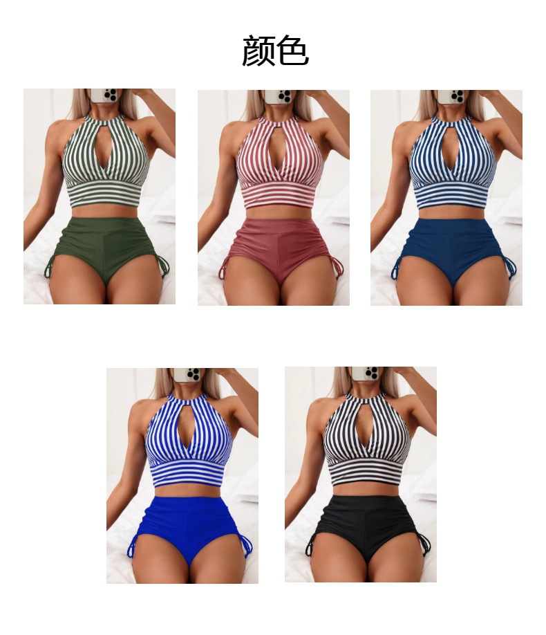 2024 아마존 크로스보더 스트라이프 하이웨이스트 심플 스타일 비키니 수영복 알리익스프레스 섹시 세트 여성 의류스토어 가기