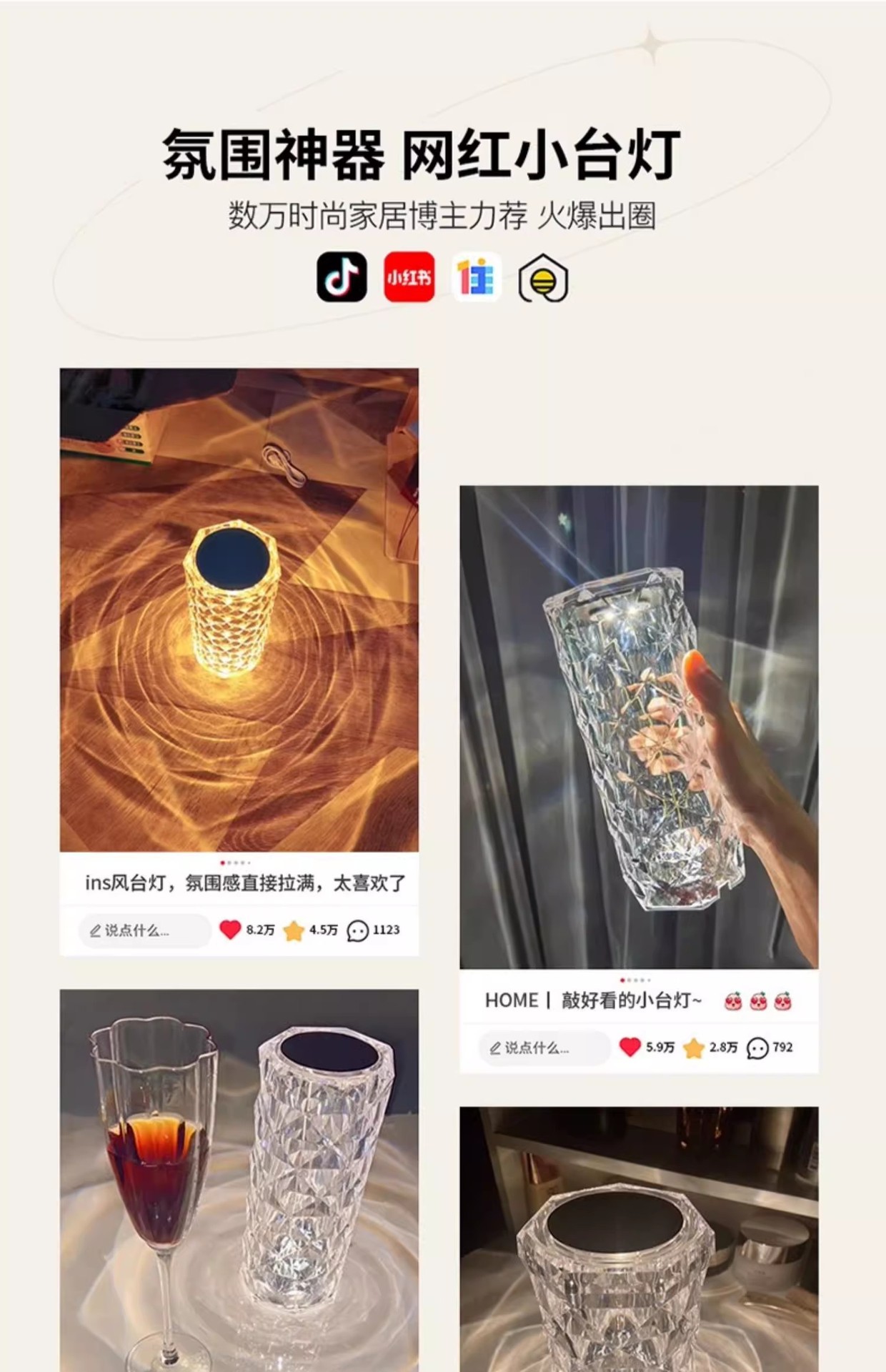 국경 간 자리 창조적 인 선물 분위기 빛 장미 장식 테이블 램프 머리맡 충전 야간 조명 인터넷 연예인 핫 스타일