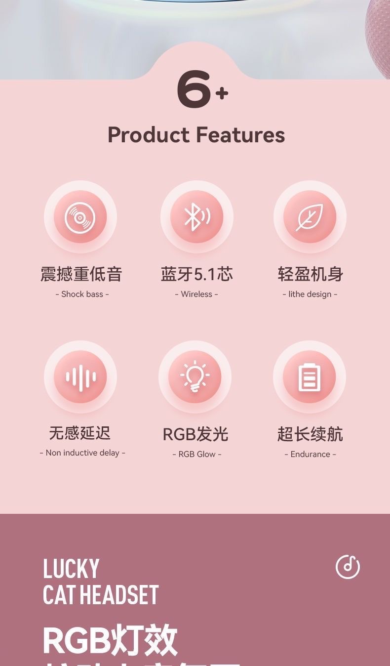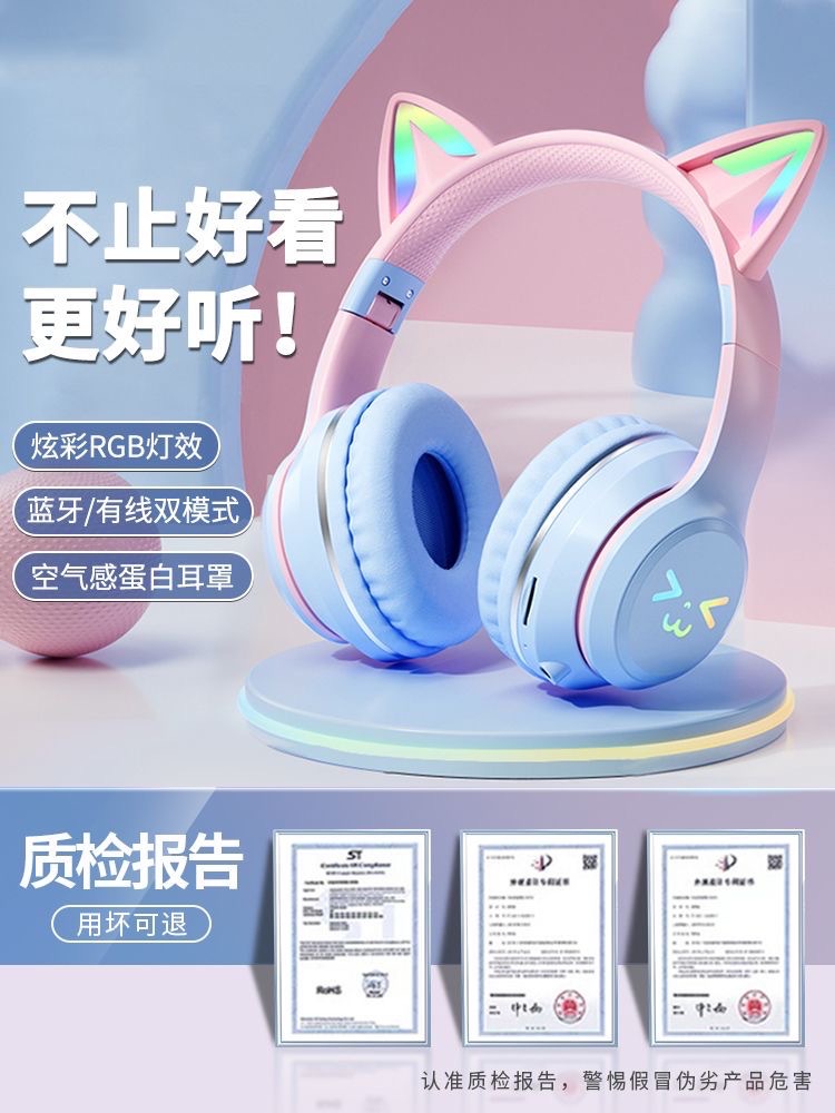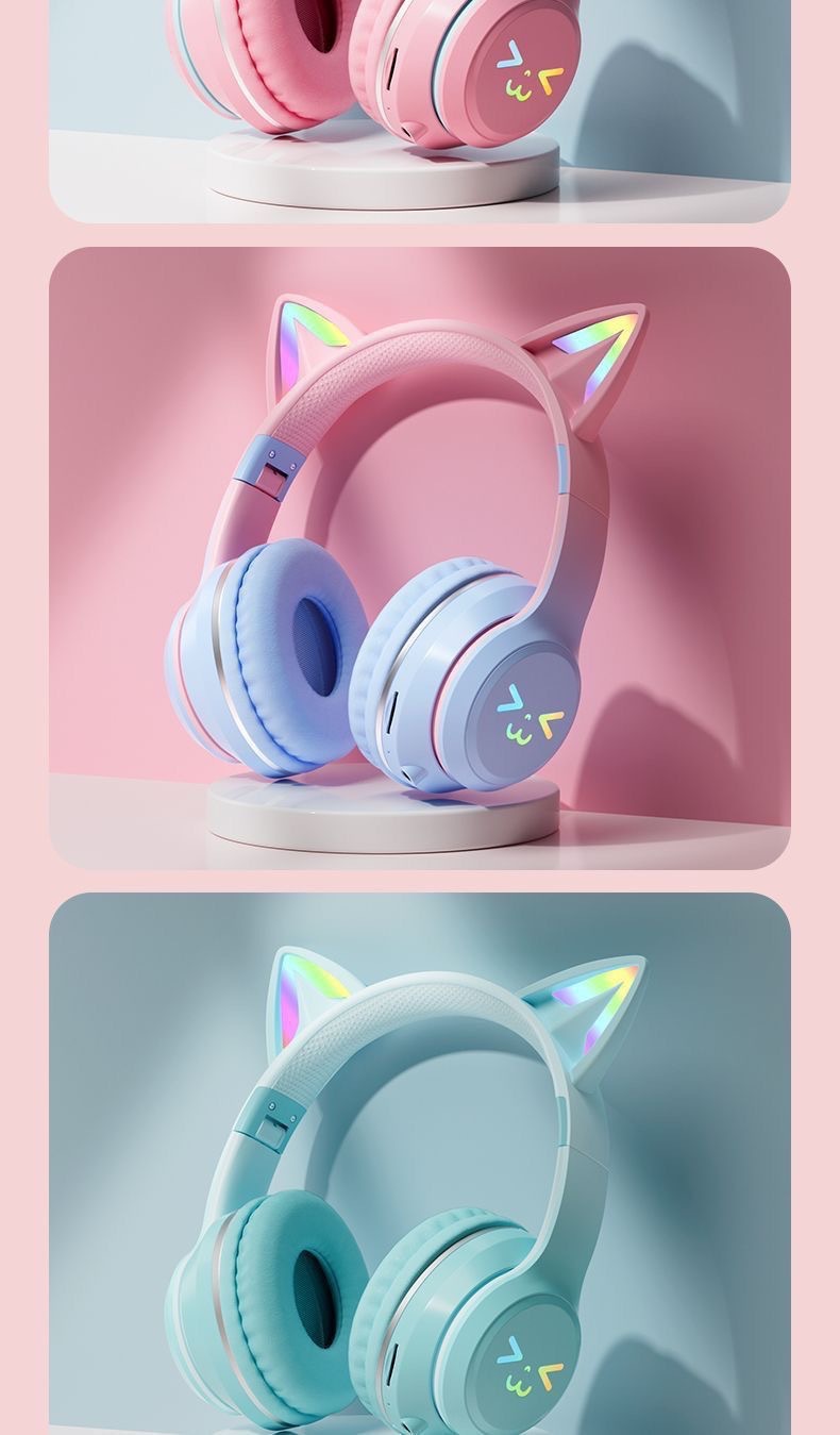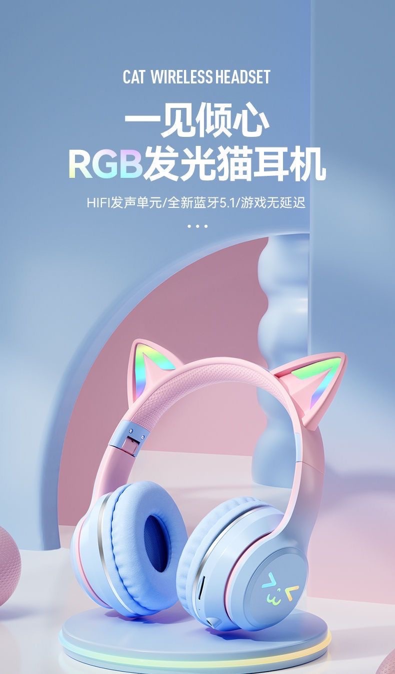 [신간] 국경 간 블루투스 헤드셋 BT035C 그라디언트 고양이 귀 빛나는 전자 스포츠 게임 헤드셋스토어 가기