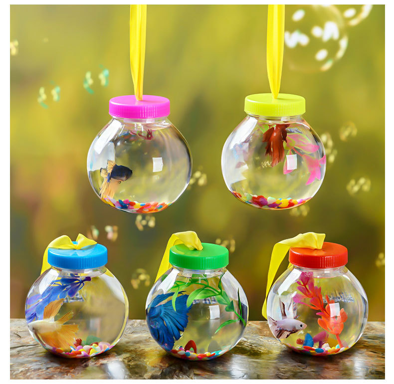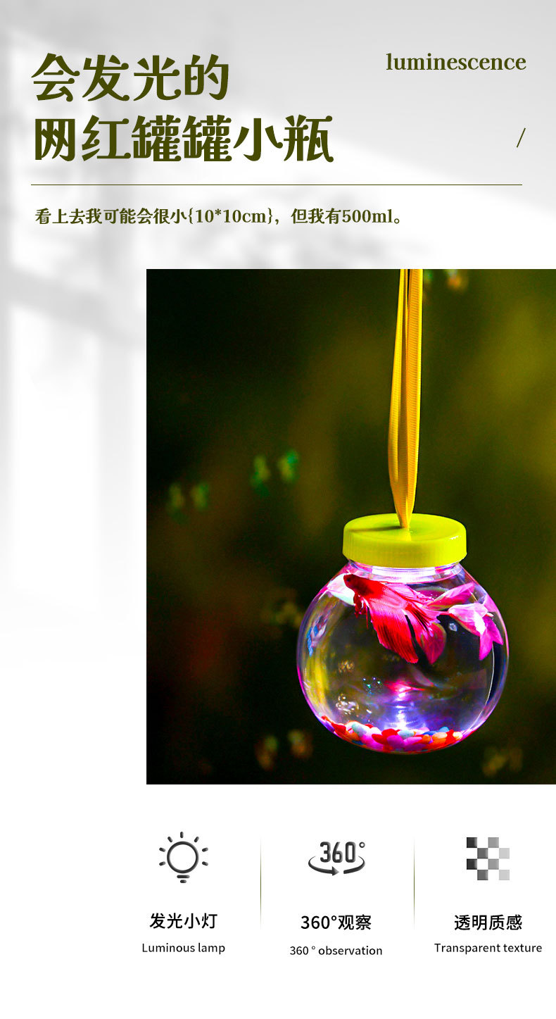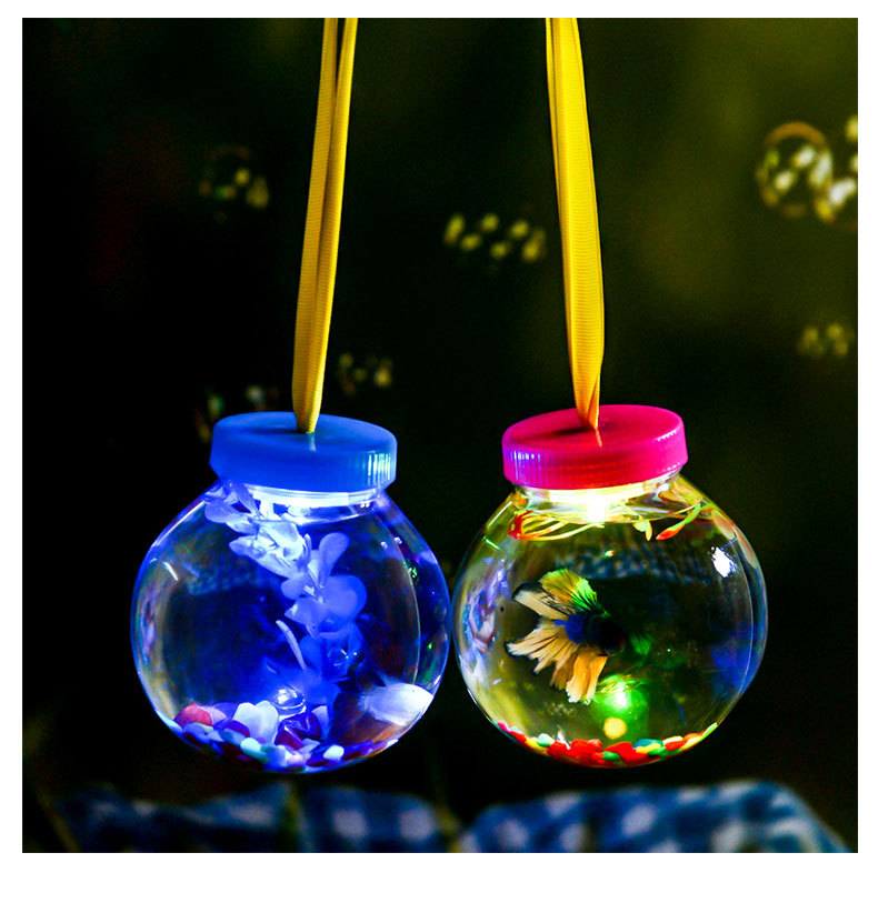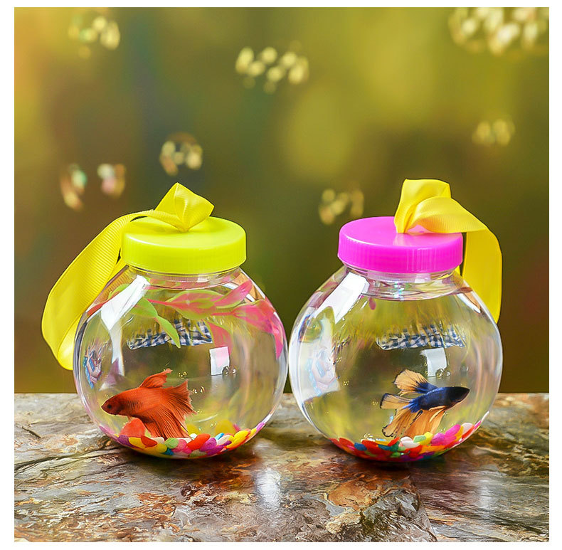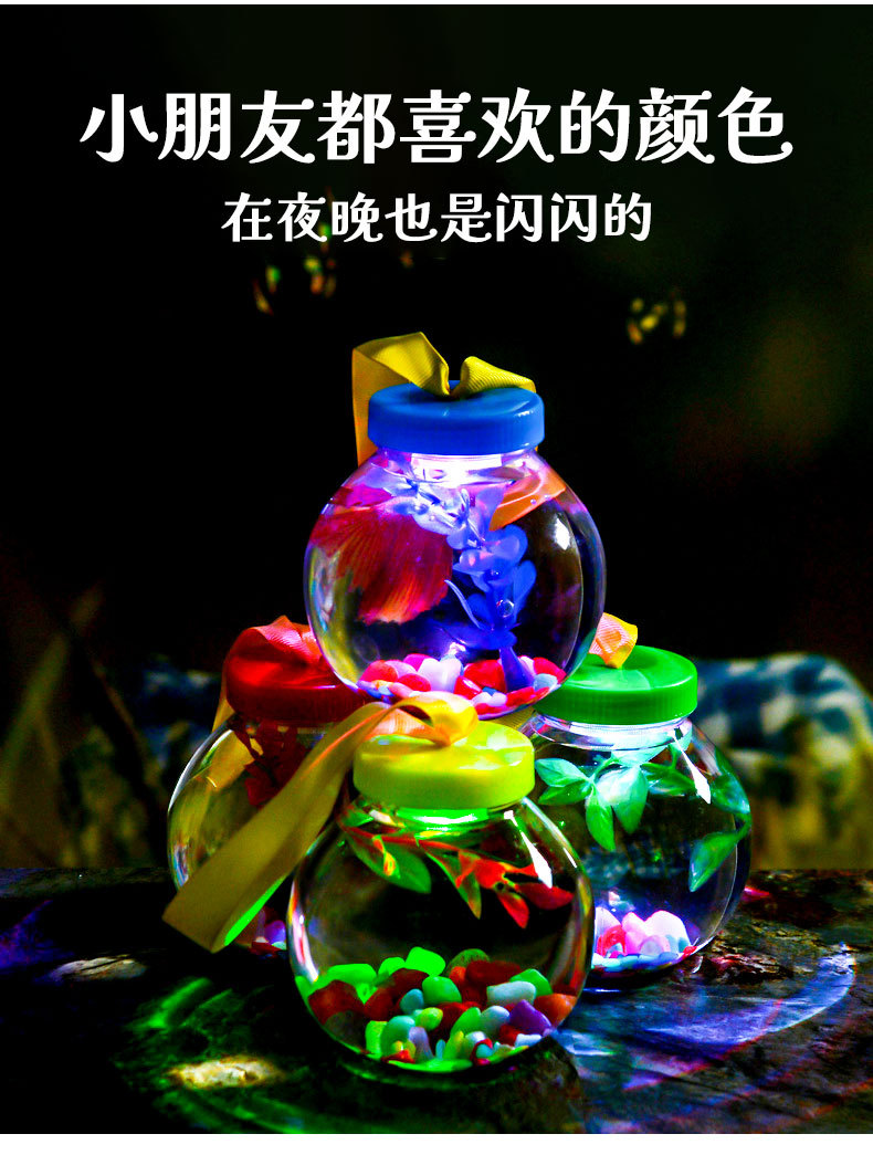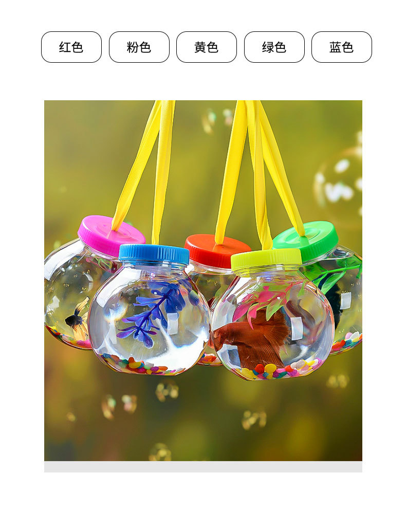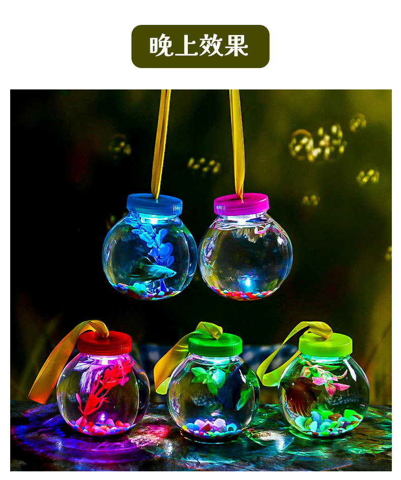 야시장 인터넷 유명 인사가 QQ 물고기 병 양동이 물고기 탱크 해파리 컵 뚜껑이 빛나는 휴대용 애완 동물 거북 상자스토어 가기