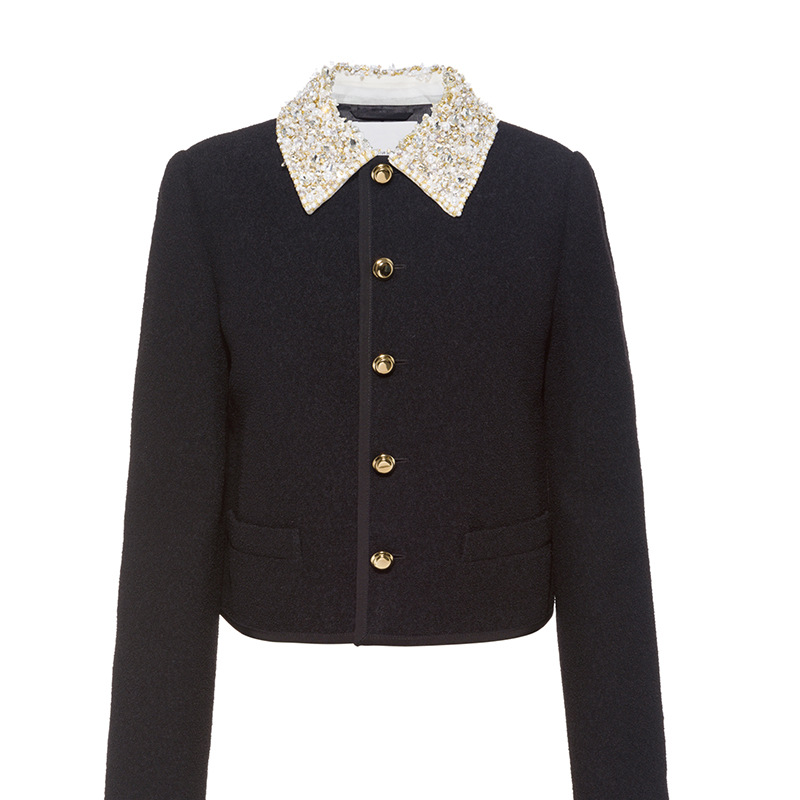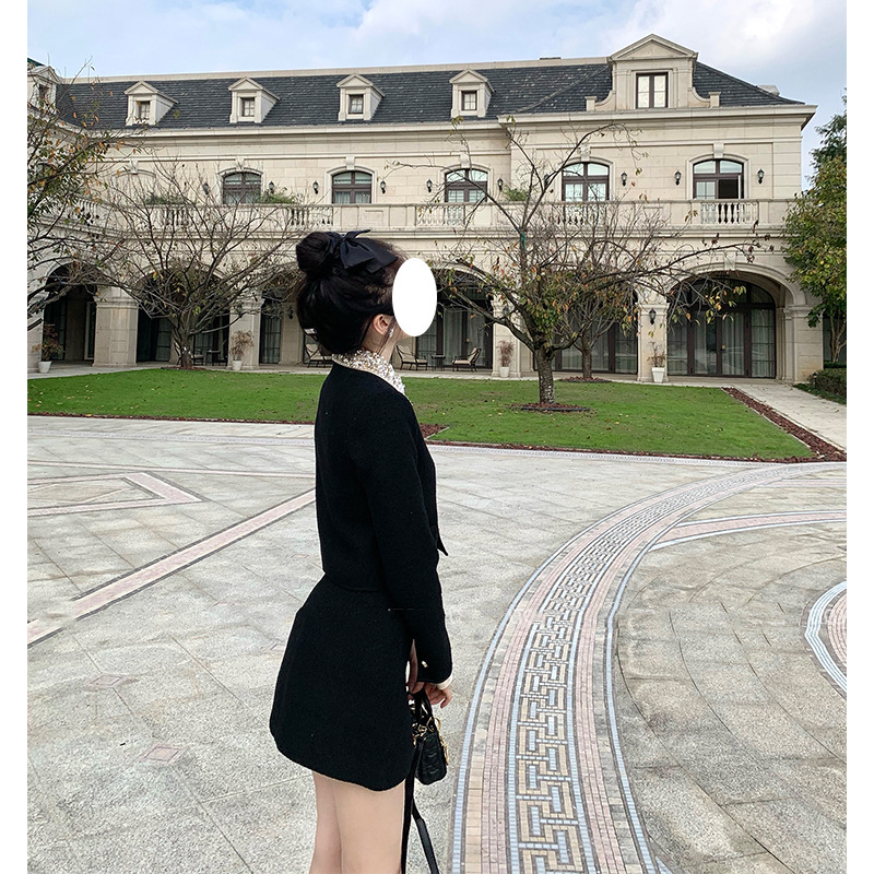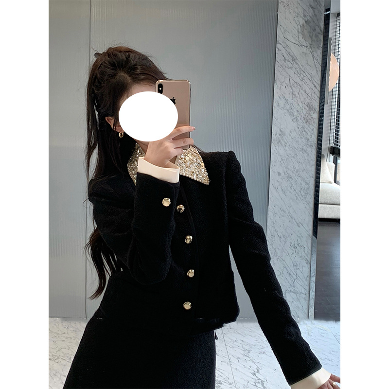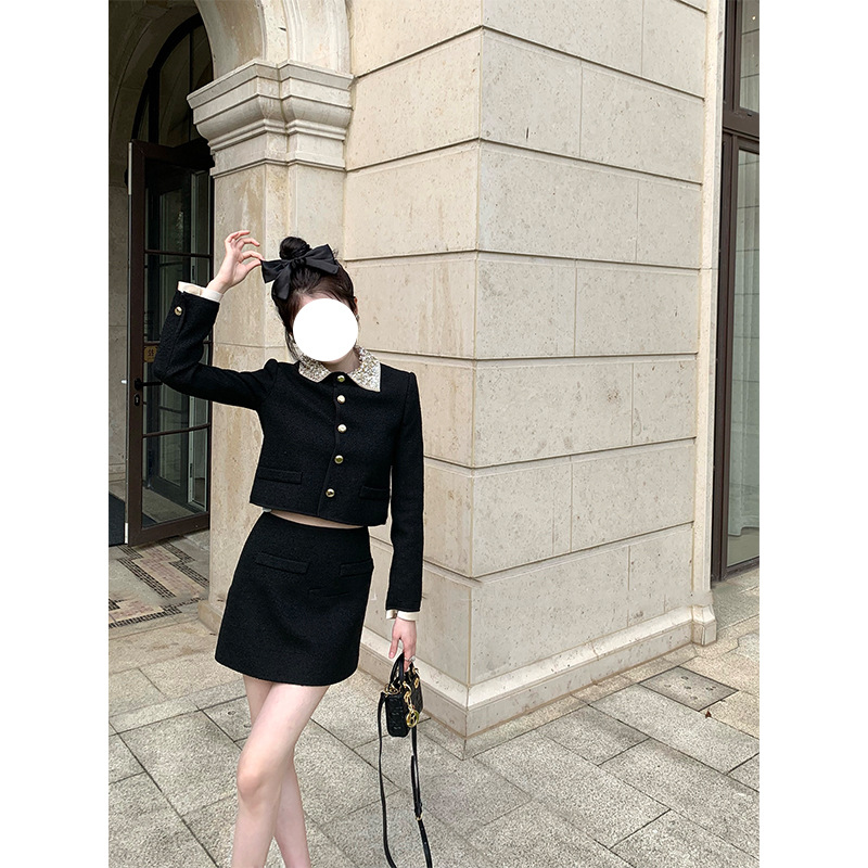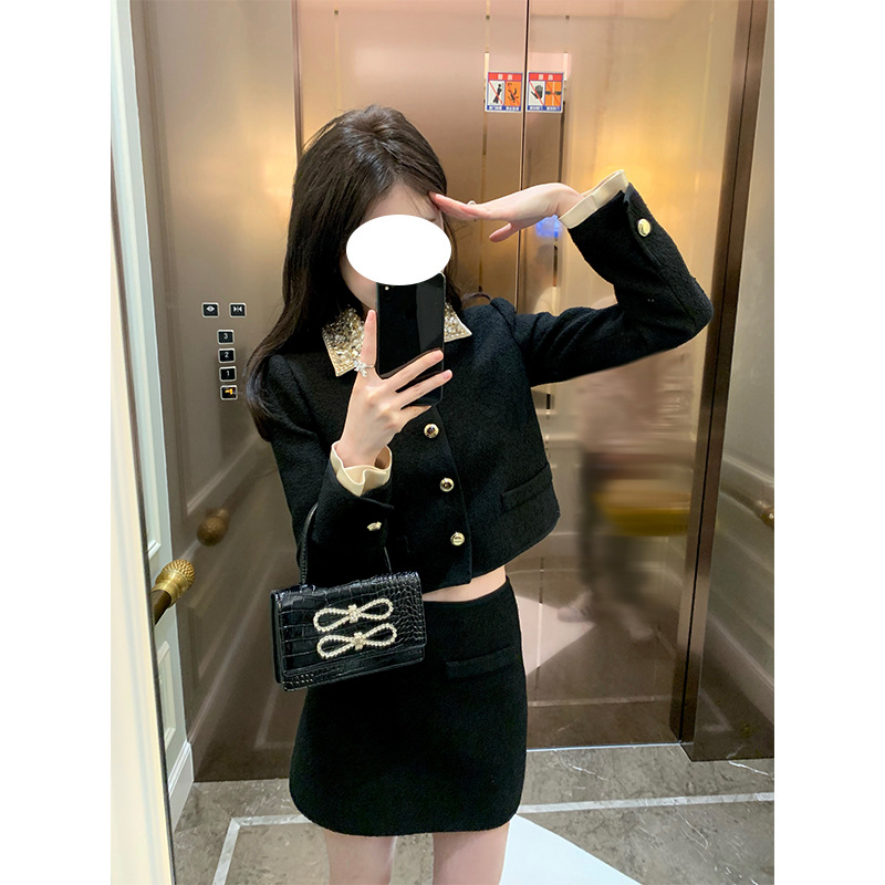 패션 세트 장위안영 스타일 우아한 여성용 반짝이 짧은 재킷과 스커트 투피스 세트