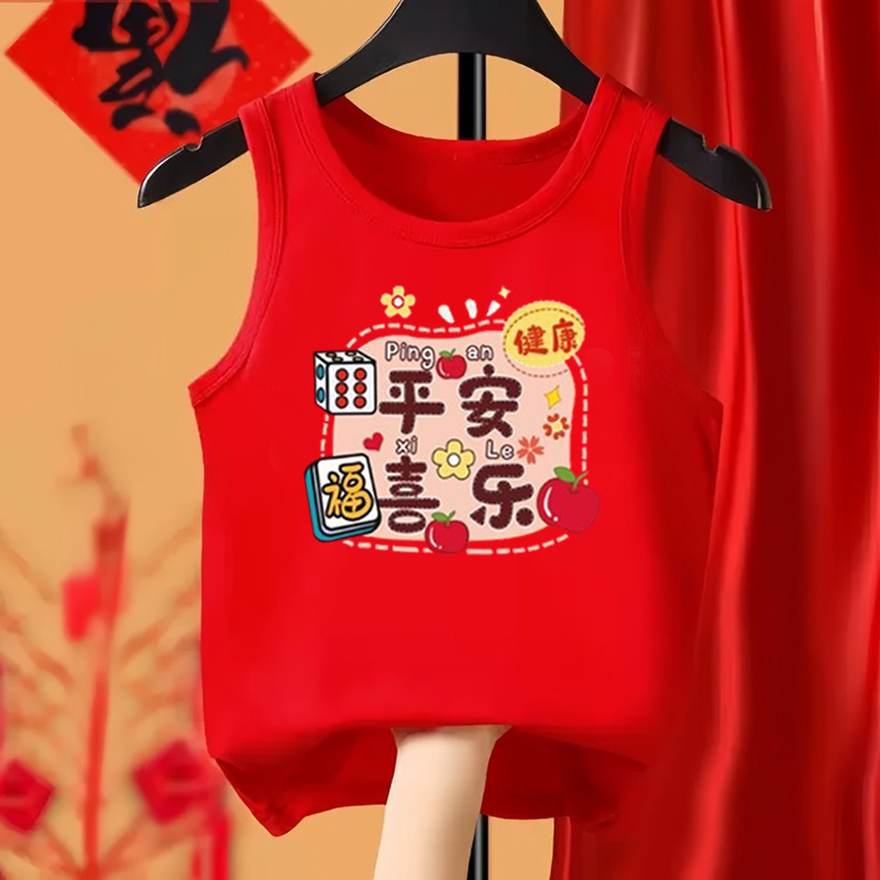 어린이 면화 조끼 레드 드래곤 년 축제 중국 스타일 아기 어린이 민소매 얇은 국가 패션 소년의 탑