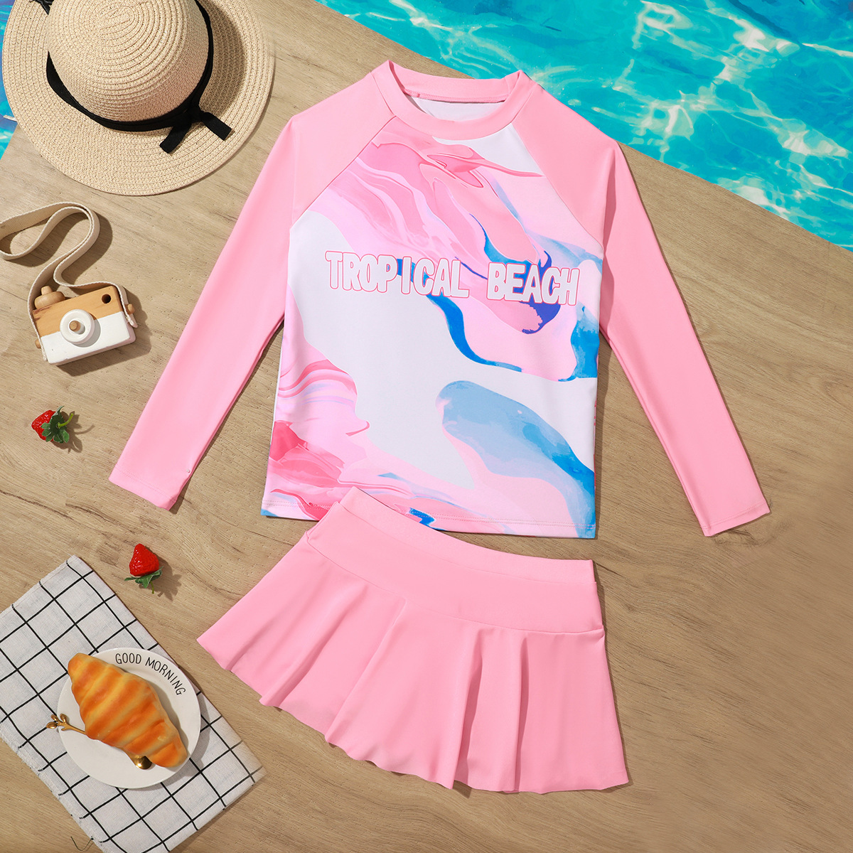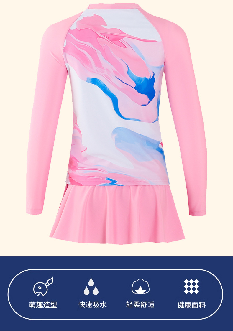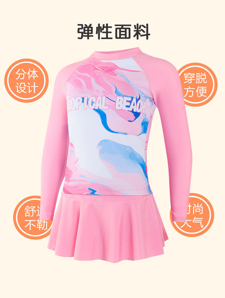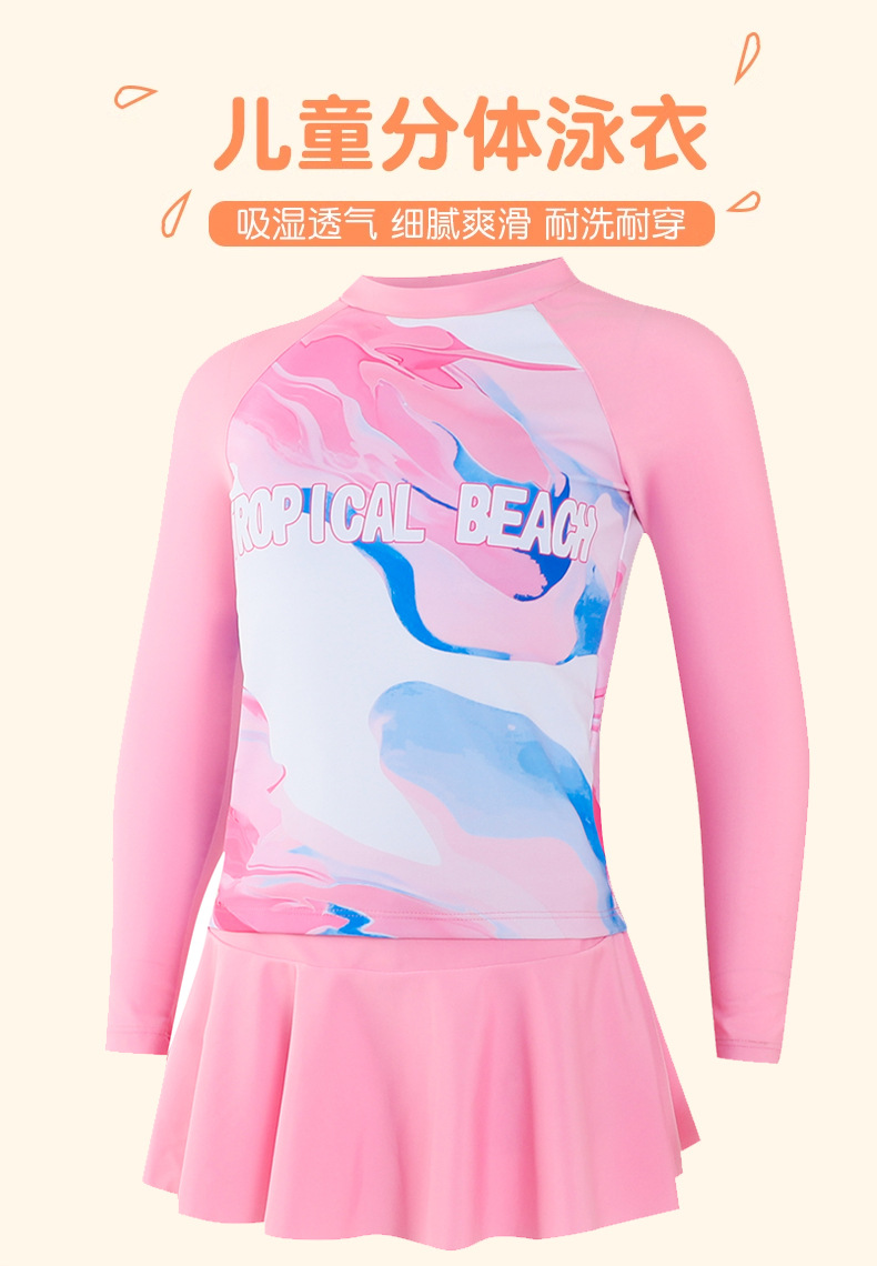 어린이 수영복 여아 긴팔 수영복 2025 신상 핑크 타이다이 분리형 짧은 치마 중대형 어린이 여아 수영복