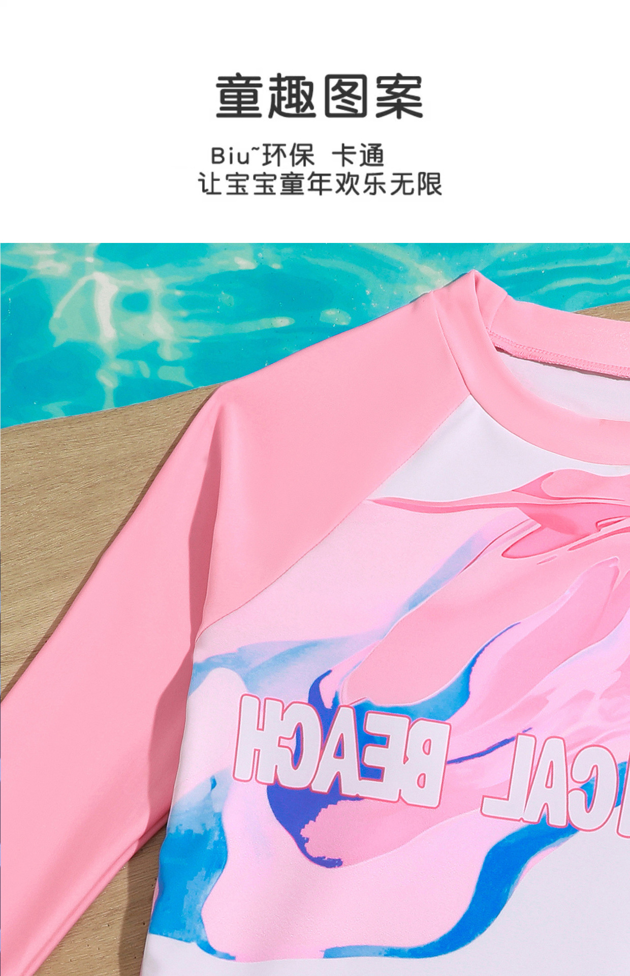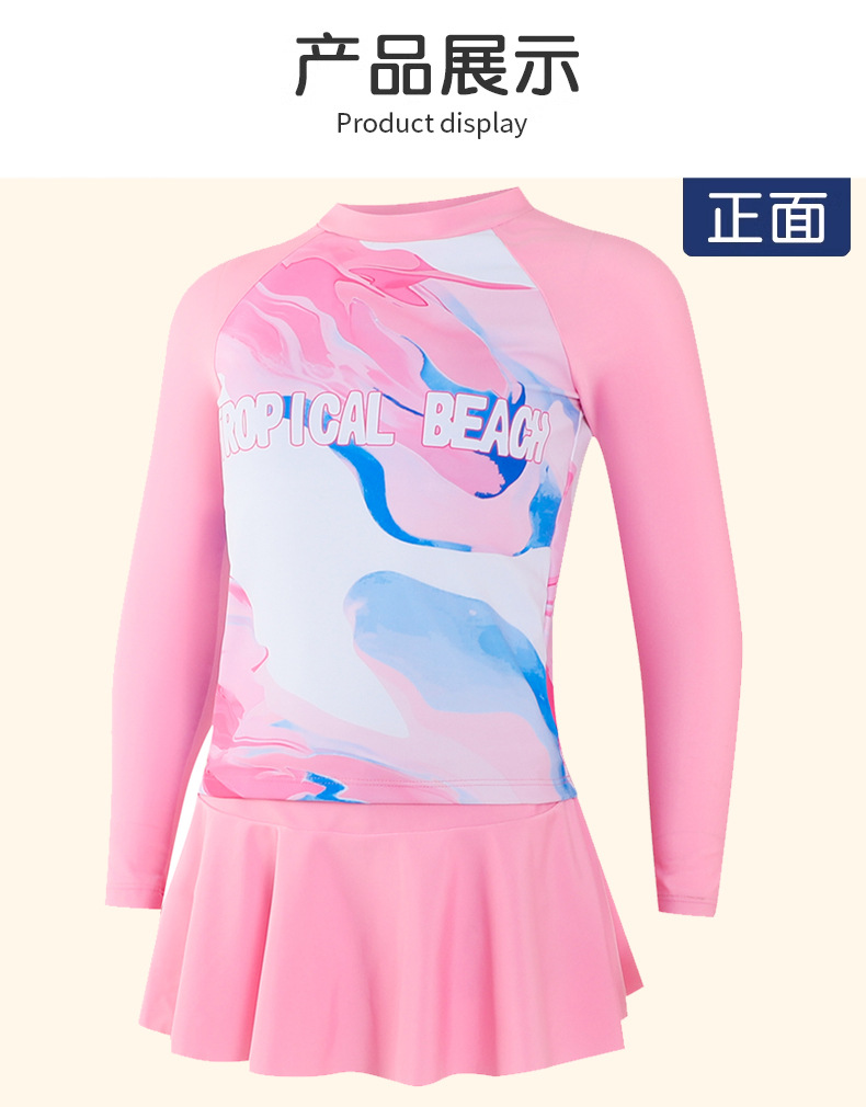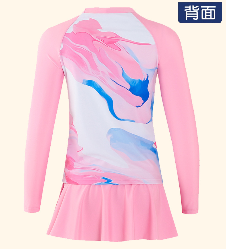 어린이 수영복 여아 긴팔 수영복 2025 신상 핑크 타이다이 분리형 짧은 치마 중대형 어린이 여아 수영복
