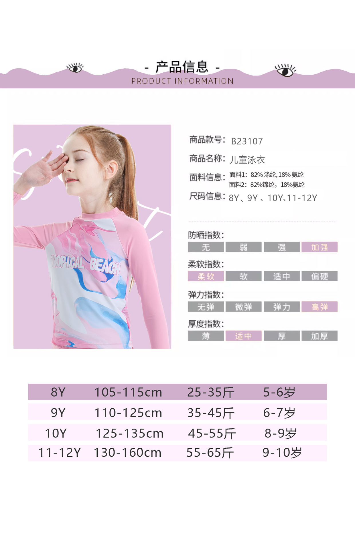 어린이 수영복 여아 긴팔 수영복 2025 신상 핑크 타이다이 분리형 짧은 치마 중대형 어린이 여아 수영복스토어 가기