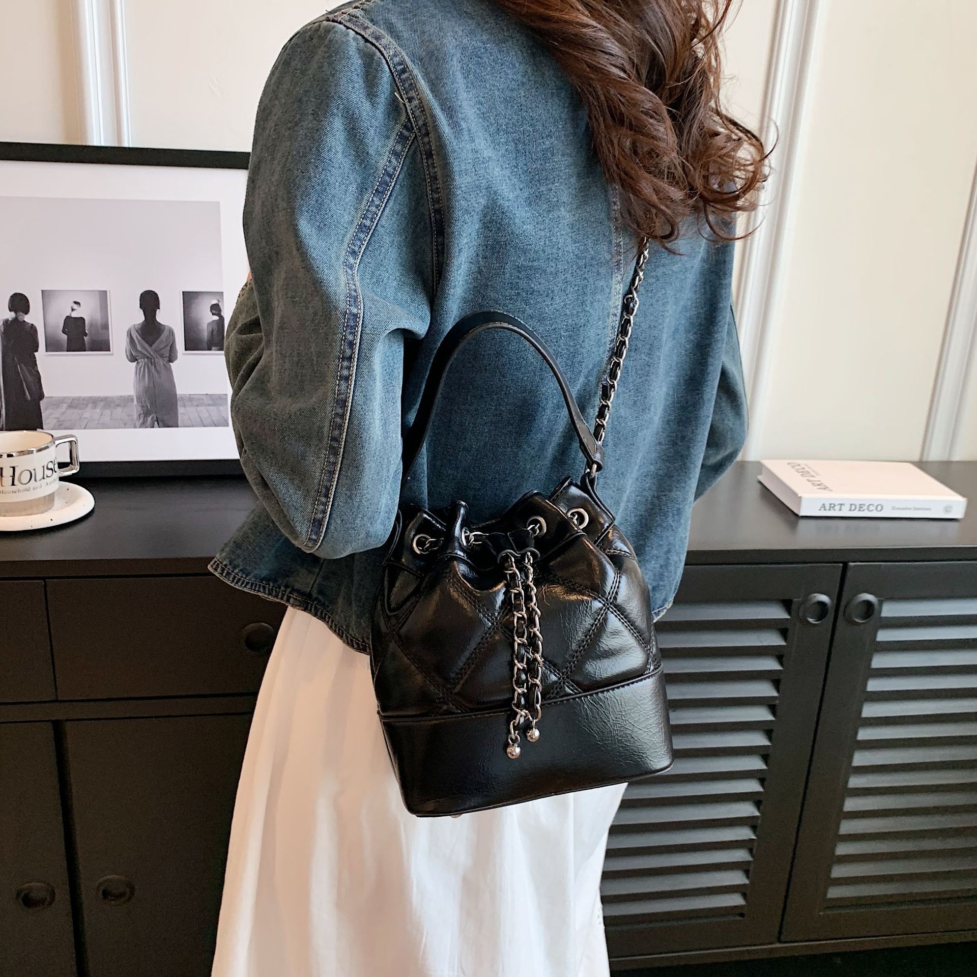 국경 도매 마름모 체인 가방 여성 가방 대용량 2024 새로운 패션 버킷 가방 샤넬 스타일 숄더백스토어 가기