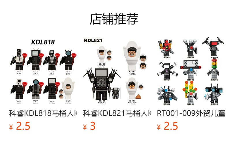RT038-RT045 금 화장실 사람 오디오 사람 TV 모니터 사람 Xinhong 조립 빌딩 블록 남자스토어 가기
