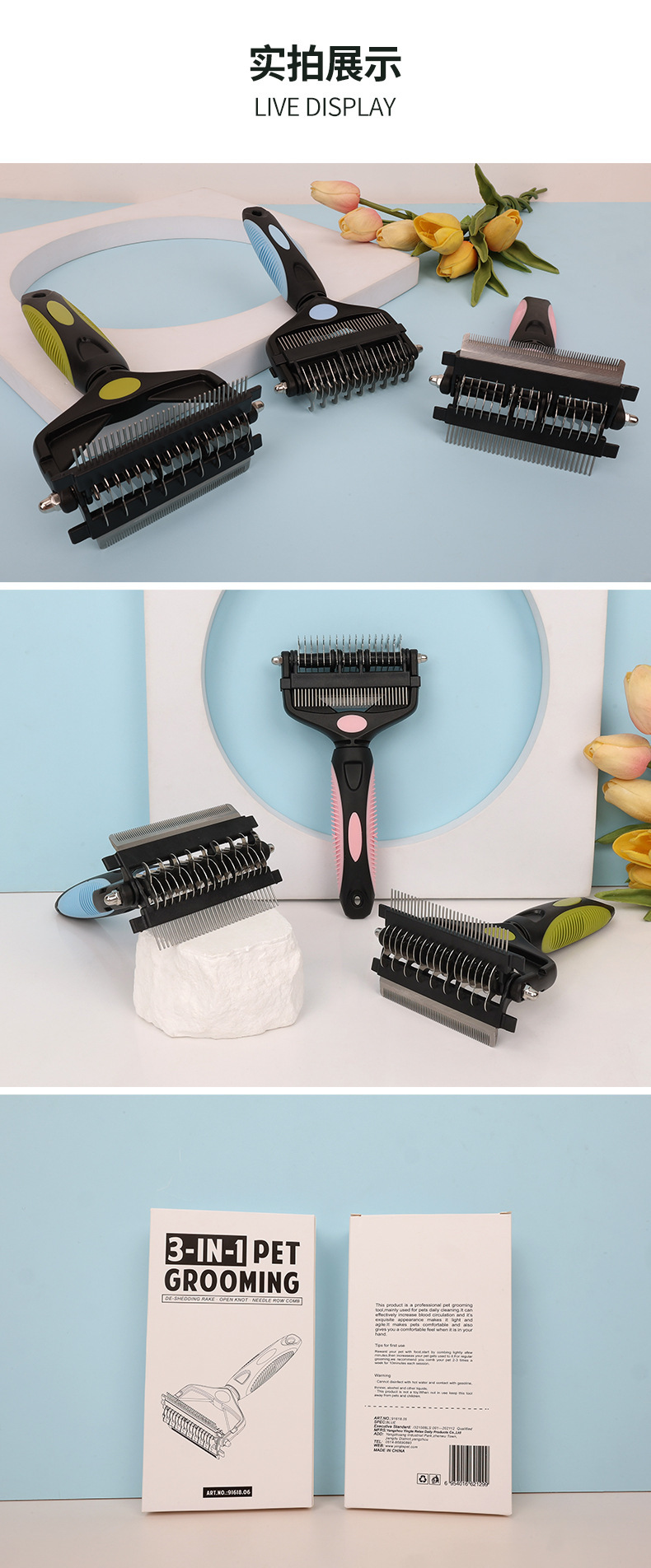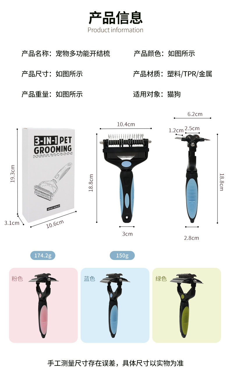 애완동물 빗 다기능 3-in-1 엉킴풀이 빗 고양이 빗 털 제거칼 애견 빗 애완용품스토어 가기