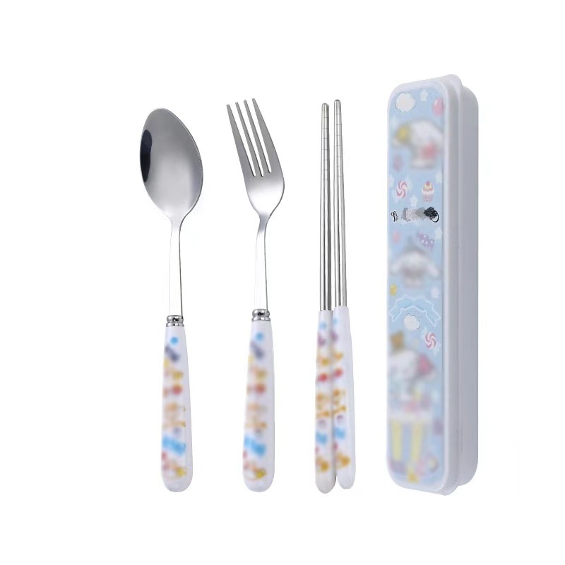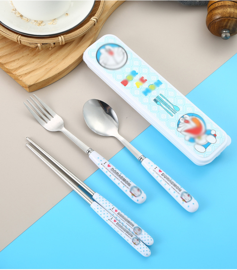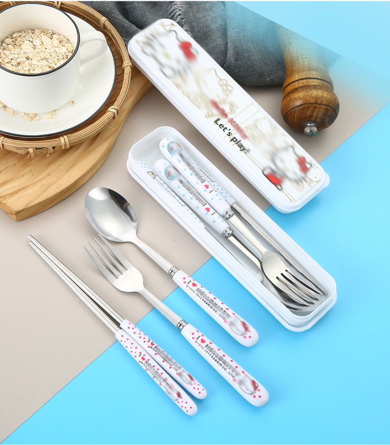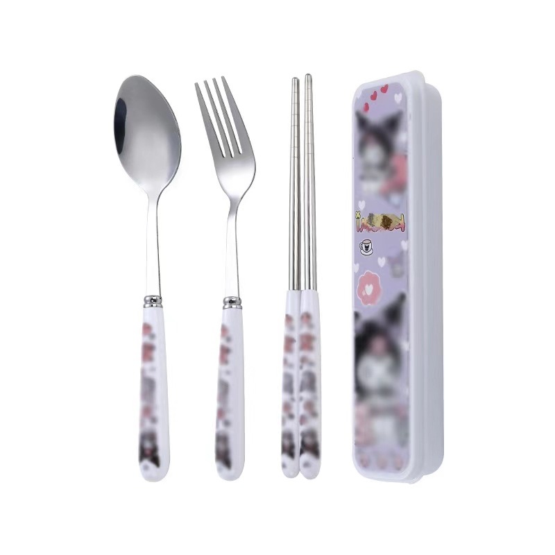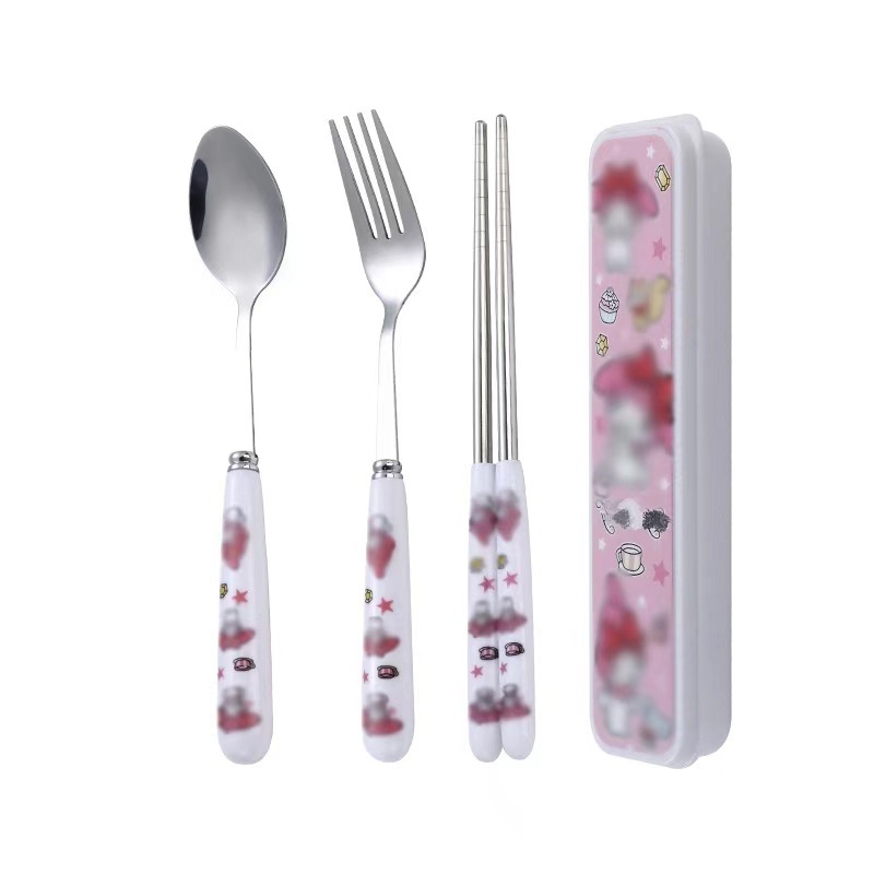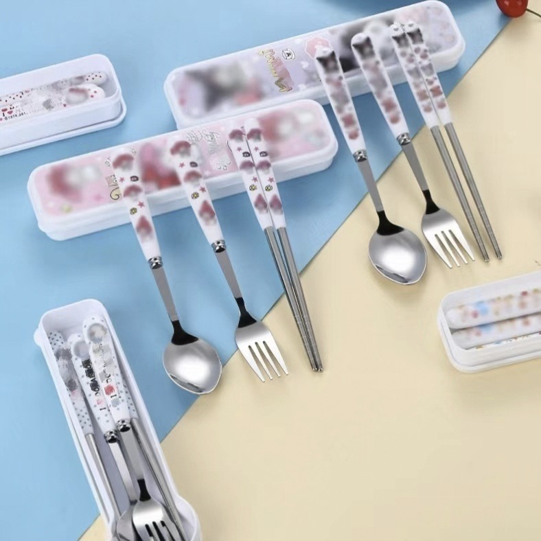 스테인레스 스틸 식기 3 피스 세트 회사원 학생 만화 휴대용 야외 캠핑 스푼 포크 젓가락 도매