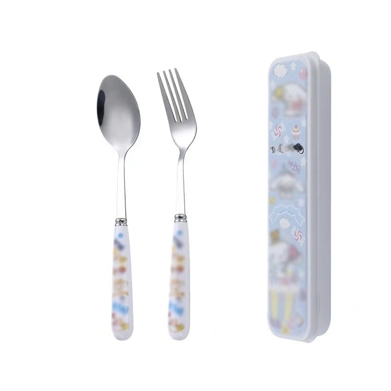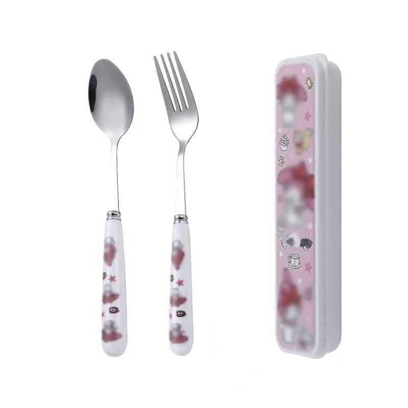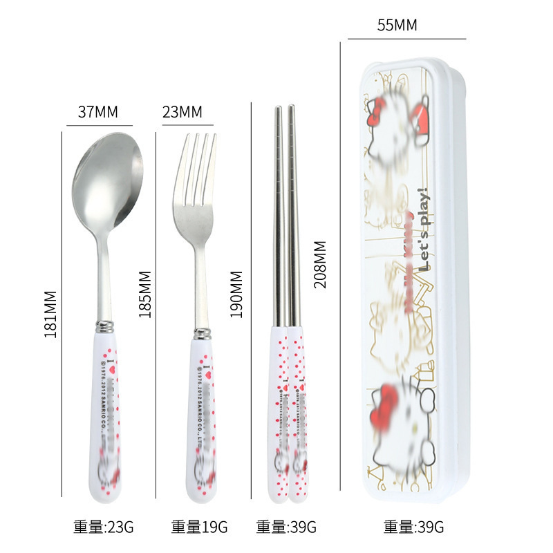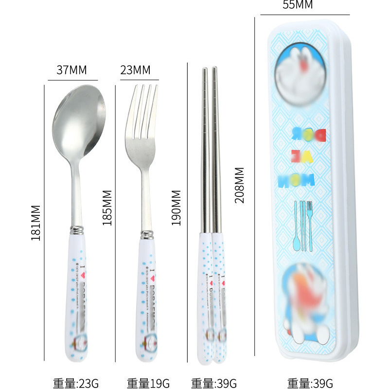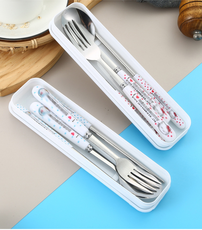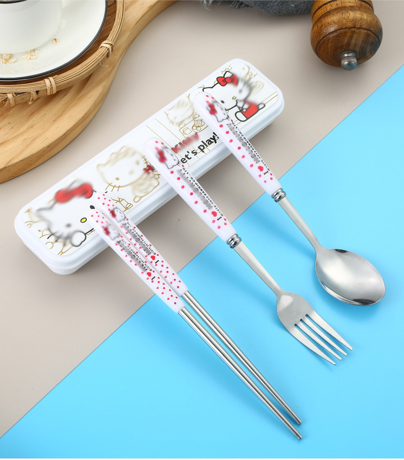 스테인레스 스틸 식기 3 피스 세트 회사원 학생 만화 휴대용 야외 캠핑 스푼 포크 젓가락 도매