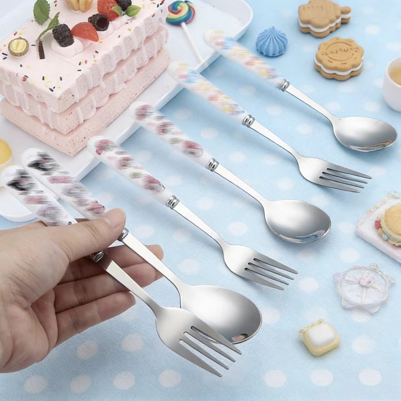 스테인레스 스틸 식기 3 피스 세트 회사원 학생 만화 휴대용 야외 캠핑 스푼 포크 젓가락 도매스토어 가기