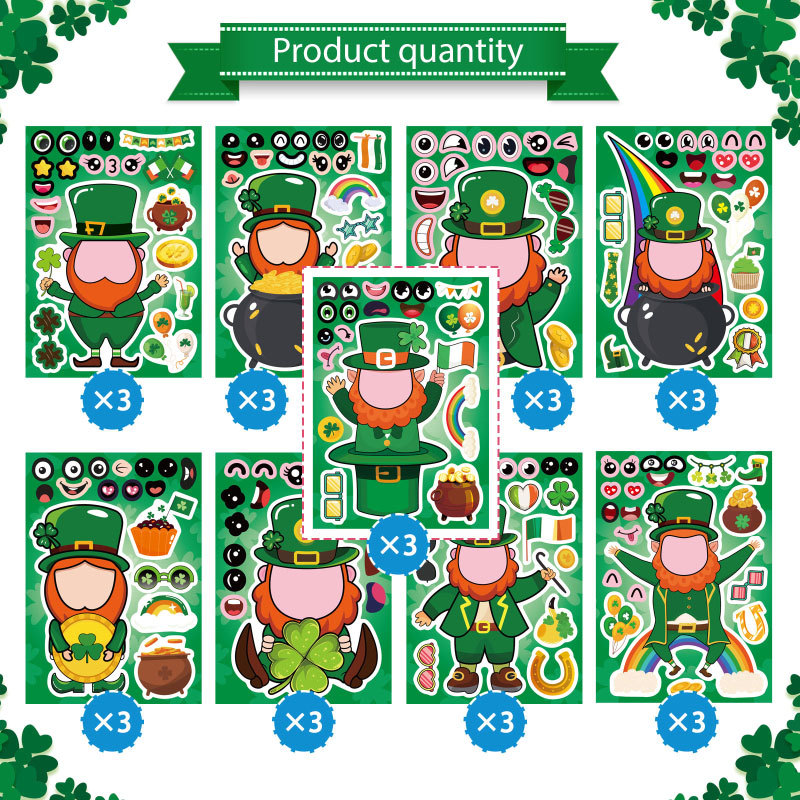 성 패트릭의 날 어린이 스티커 얼굴 스티커 아일랜드 축제 공예 파티 용품 스티커