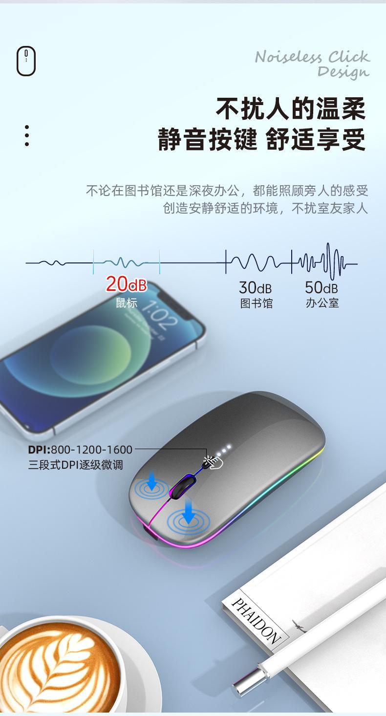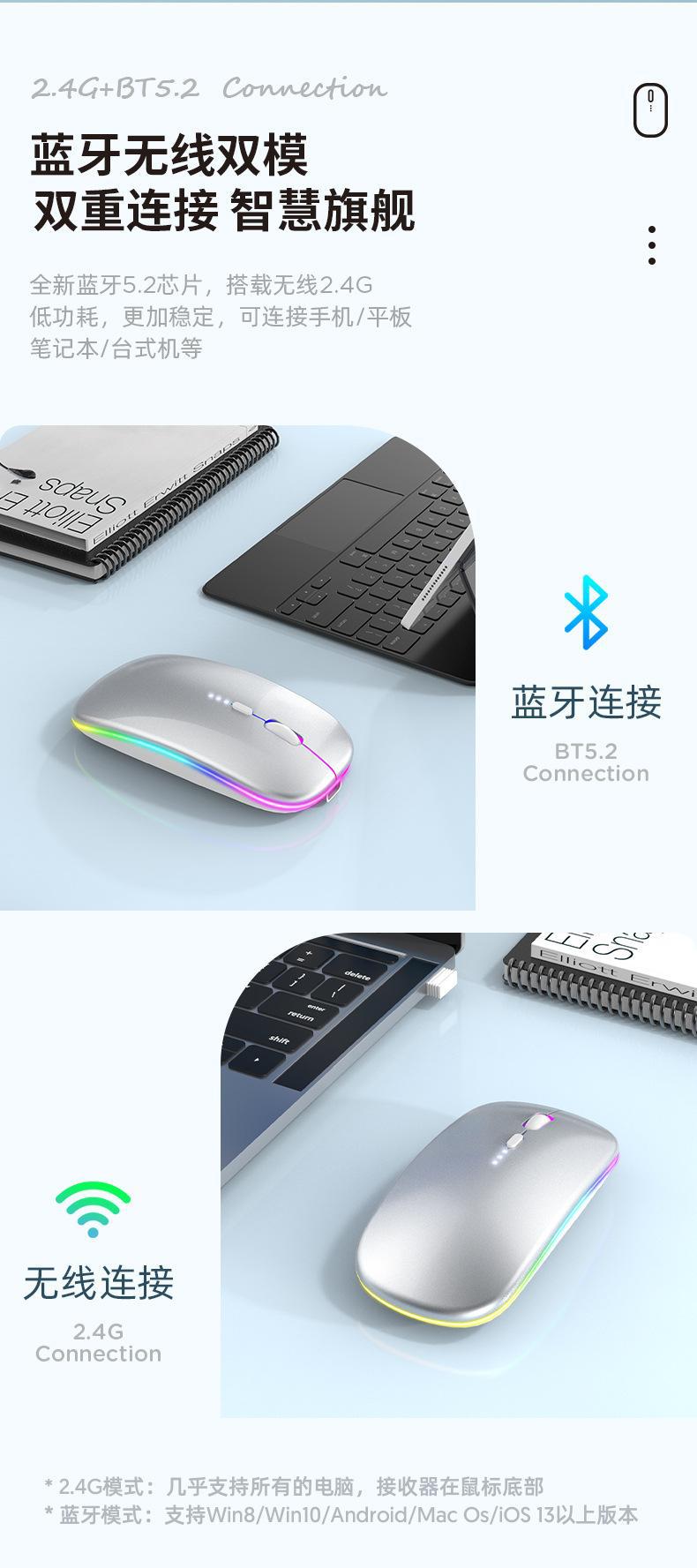 Typec 충전식 무소음 블루투스 마우스는 컴퓨터, 아이패드, 전원 표시, 발광, 무선, 듀얼 모드, 무선 기능에 적합합니다.