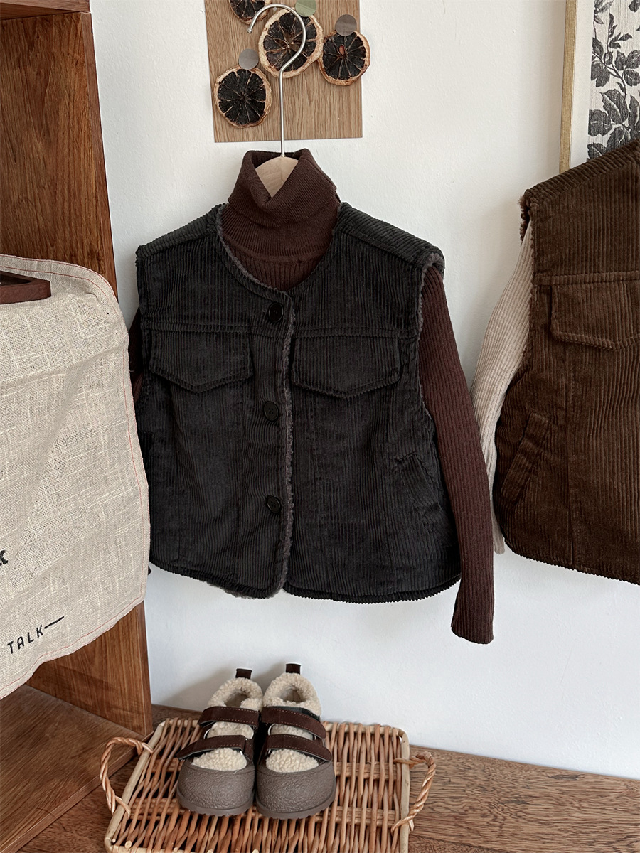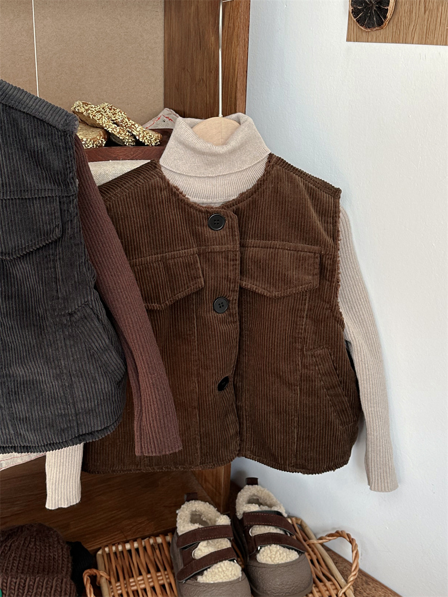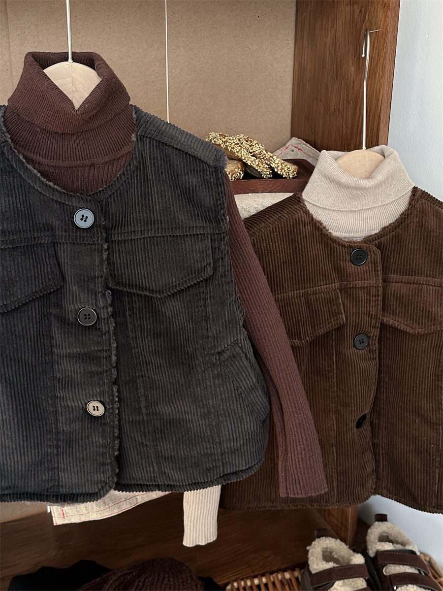 지아예 어린이 제품 2024년 겨울 신상 코듀로이 조끼 남녀 아기용 두꺼운 양털 조끼