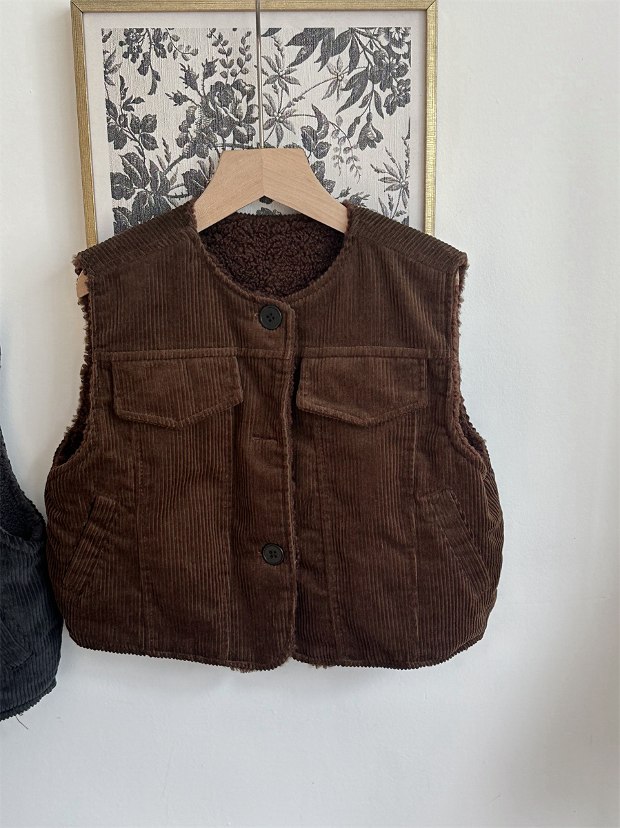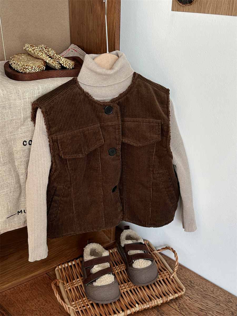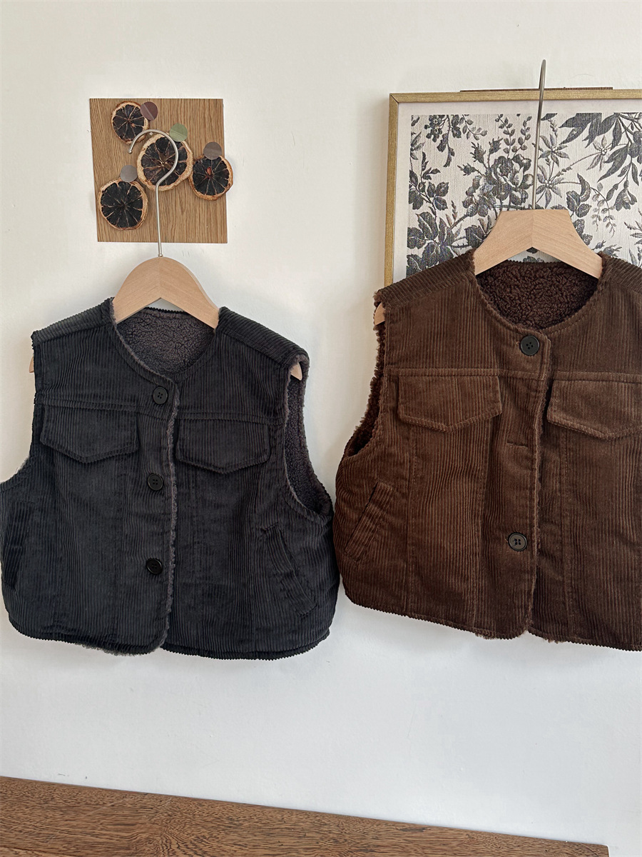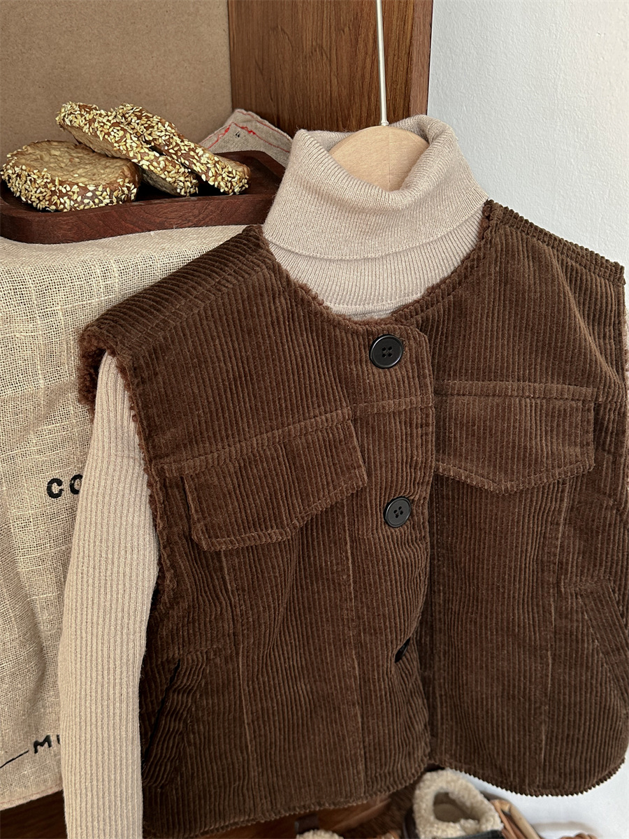 지아예 어린이 제품 2024년 겨울 신상 코듀로이 조끼 남녀 아기용 두꺼운 양털 조끼