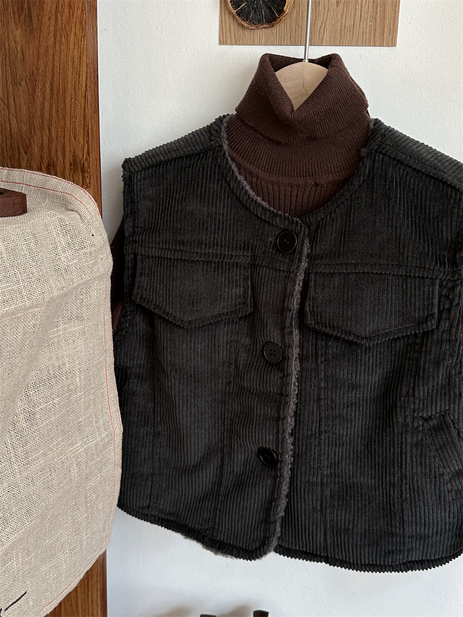 纯色灯芯绒马甲