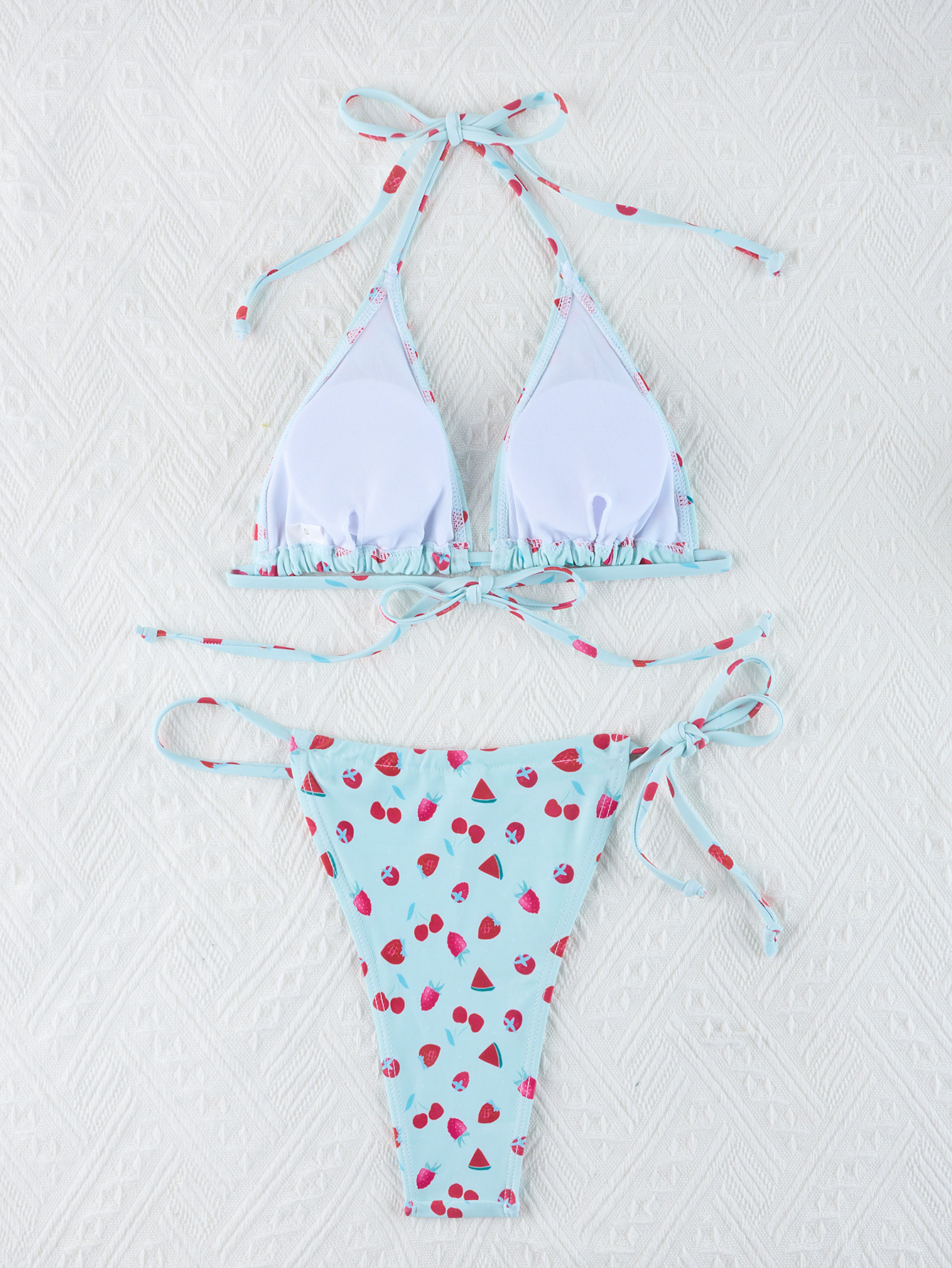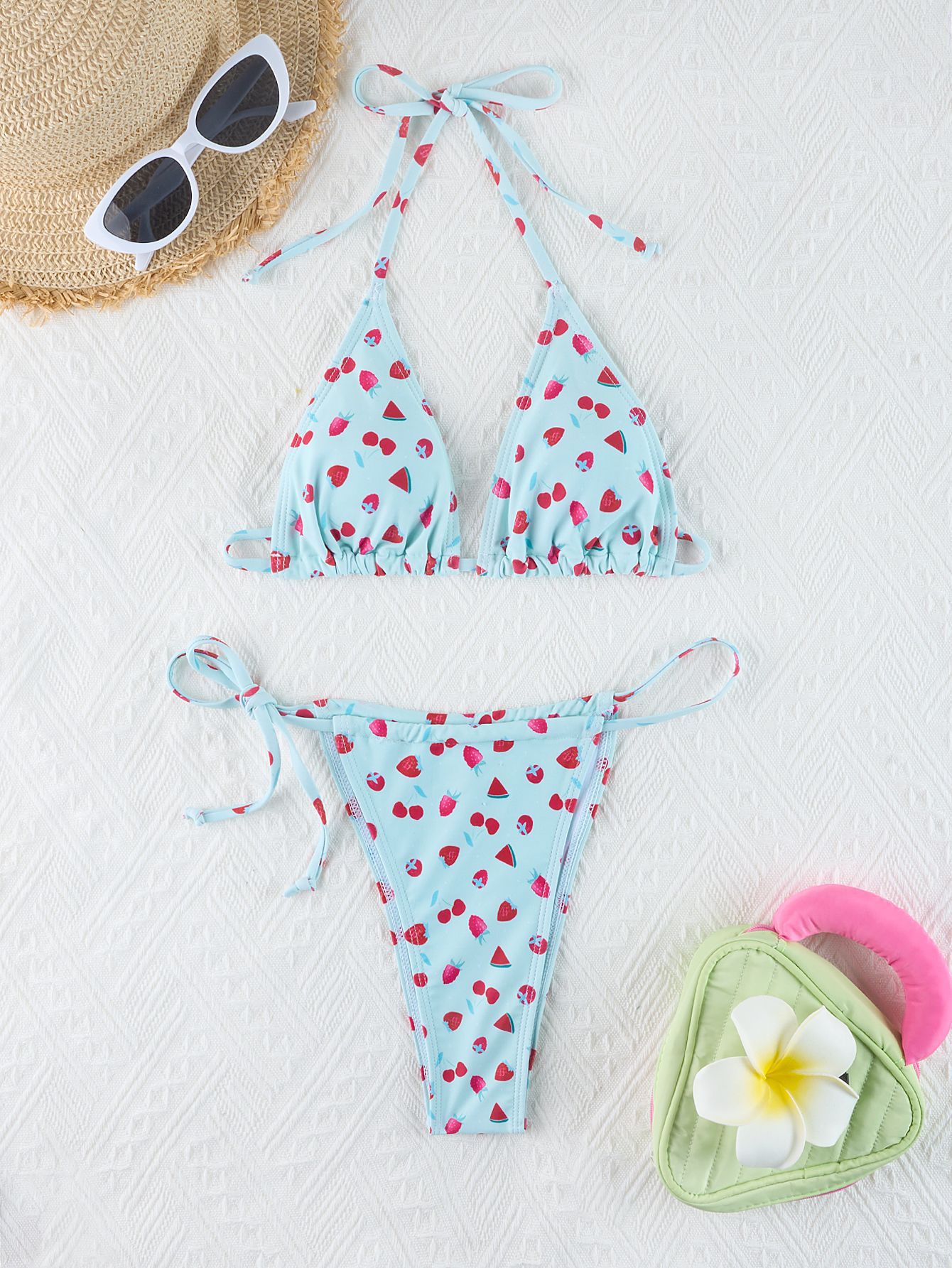 2024 새로운 유럽과 미국의 비키니 삼각형 소프트 백 프린트 비키니 수영복 여성 수영복 스팟 도매 qy2402