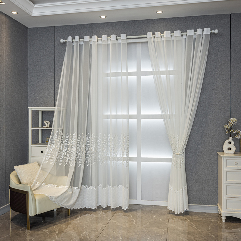 현대 간단한 투명 커튼 벨벳 바느질 자수 창 화면 거실 침실 식당 연구 모든 일치 완성 된 거즈 커튼