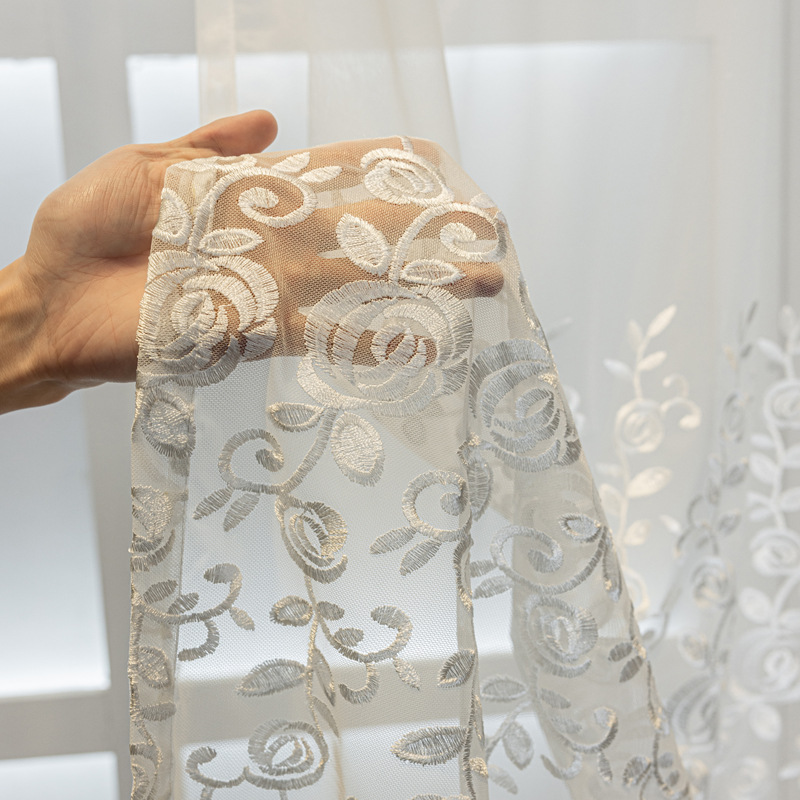 현대 간단한 투명 커튼 벨벳 바느질 자수 창 화면 거실 침실 식당 연구 모든 일치 완성 된 거즈 커튼스토어 가기