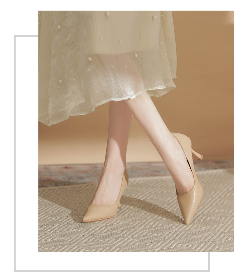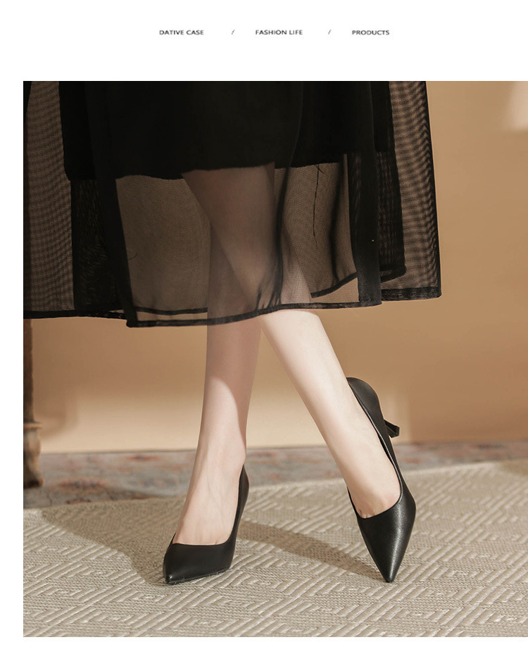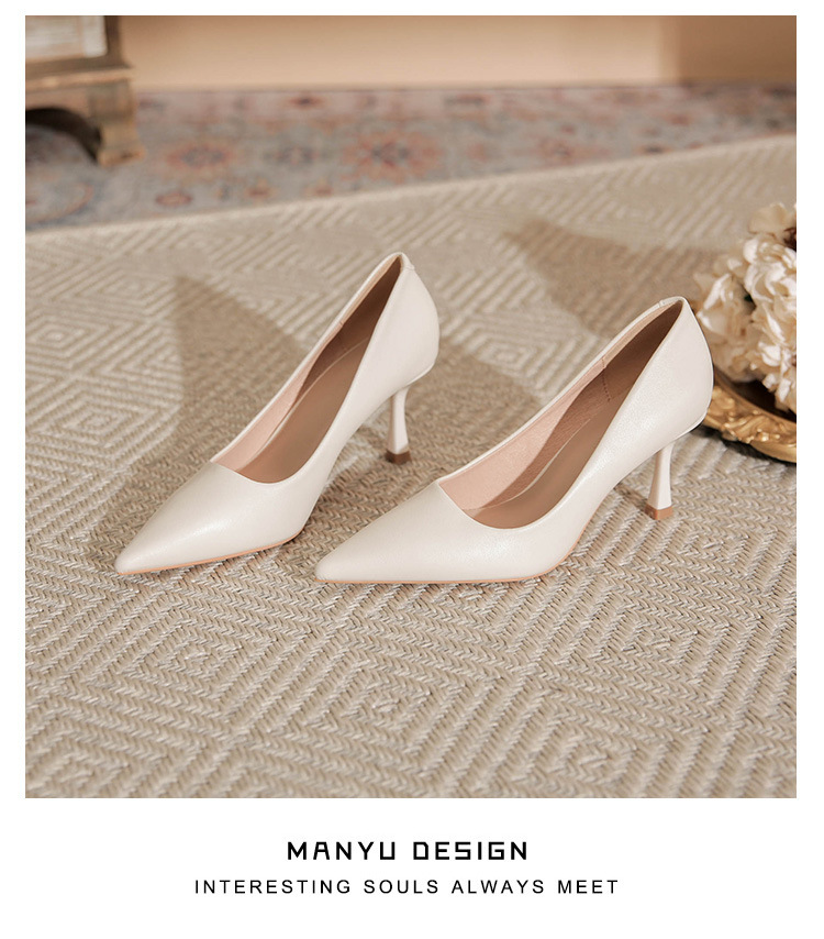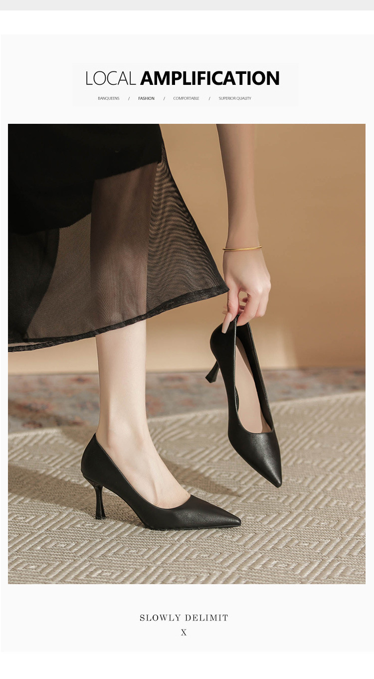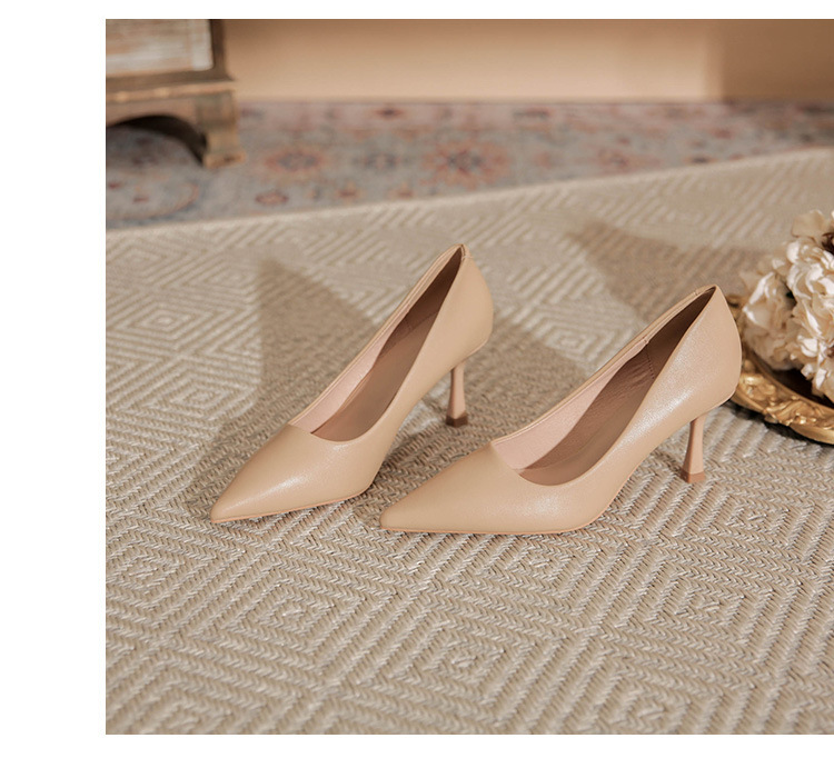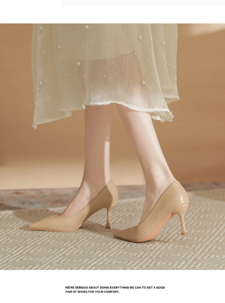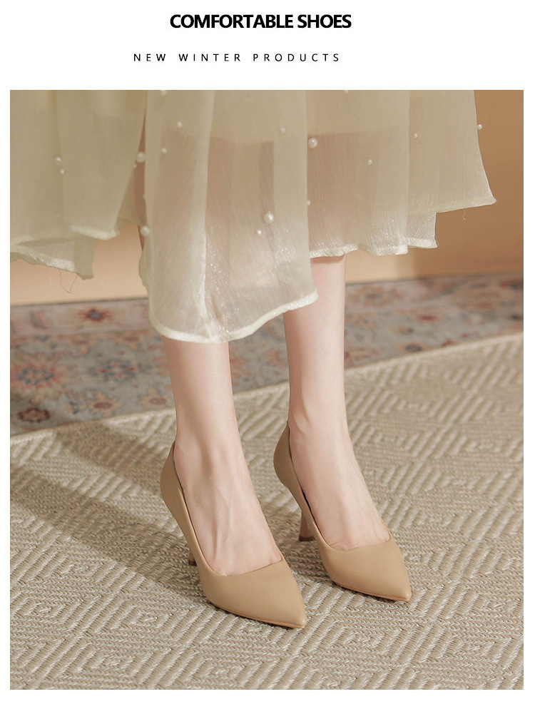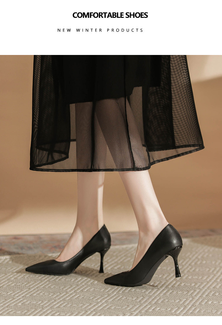 X105 전문 통근 올 매치 하이힐 여성 신발 새로운 우아한 뾰족한 단층 신발 스틸레토 힐 패션 소프트 가죽 작업스토어 가기