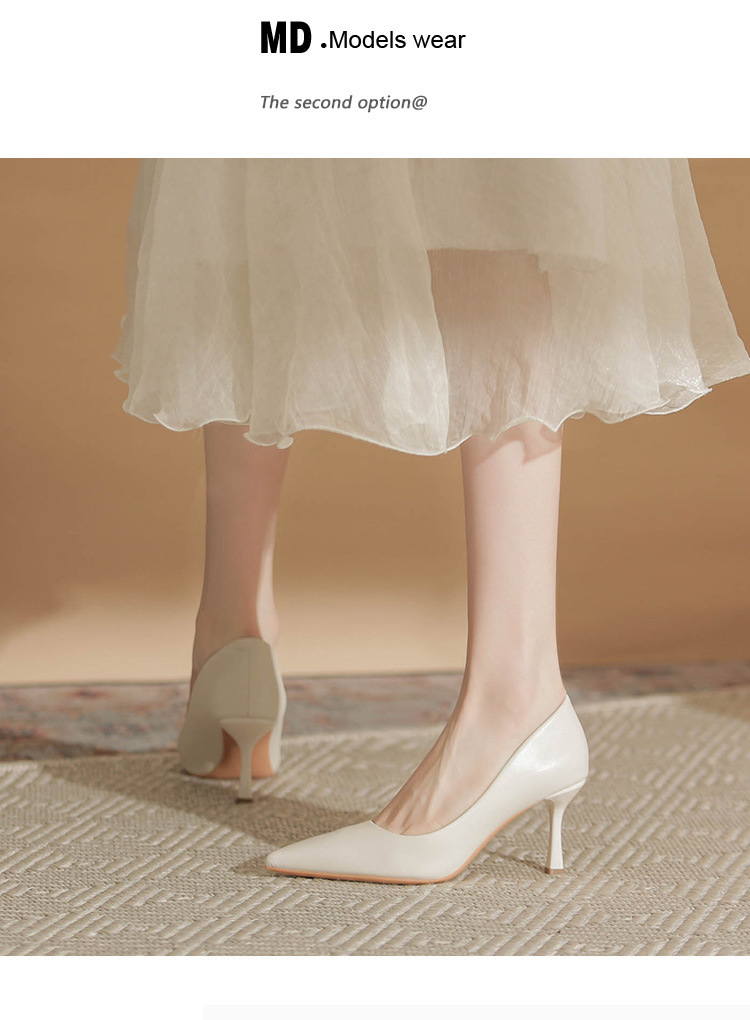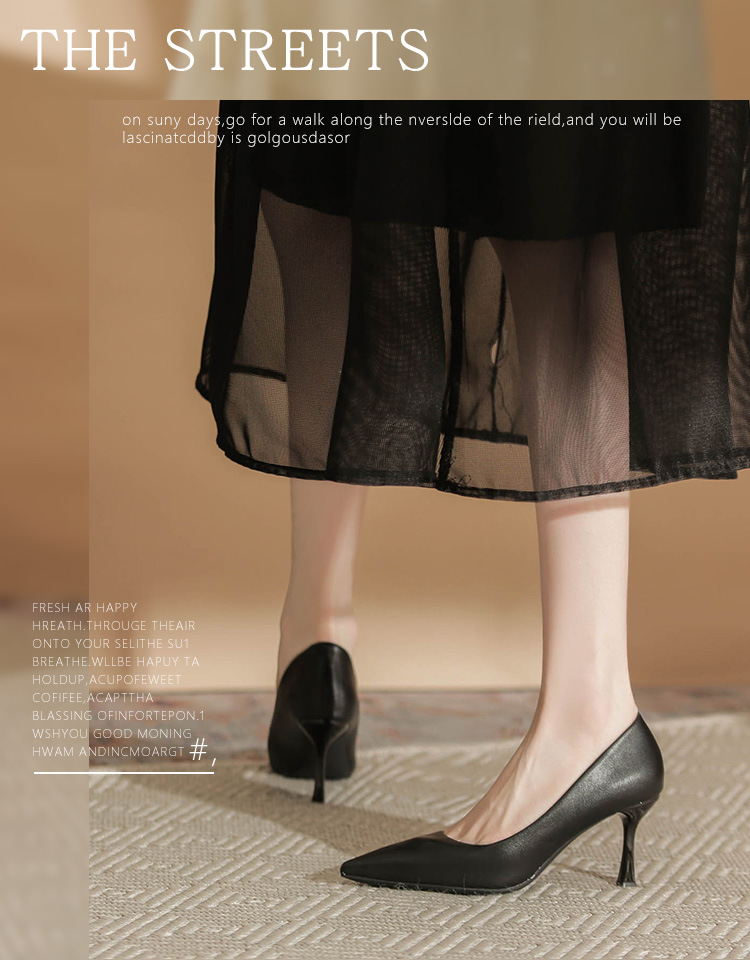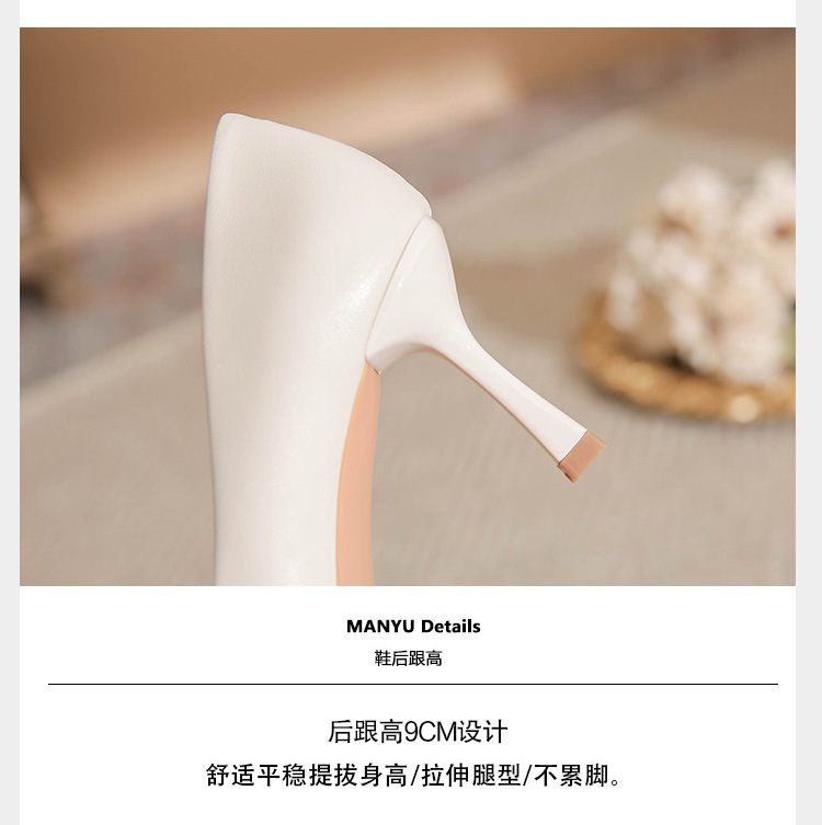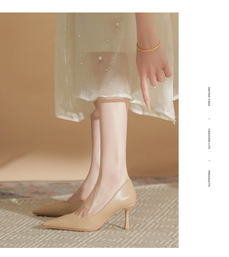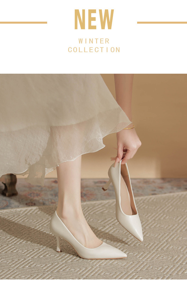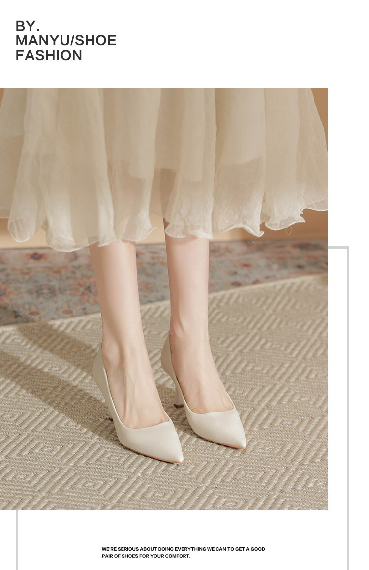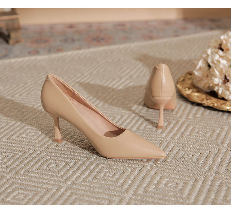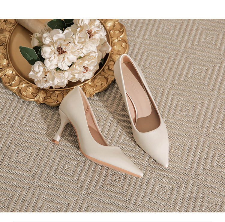 X105 전문 통근 올 매치 하이힐 여성 신발 새로운 우아한 뾰족한 단층 신발 스틸레토 힐 패션 소프트 가죽 작업스토어 가기