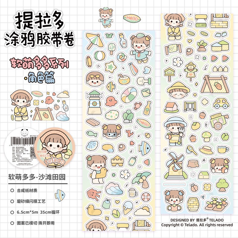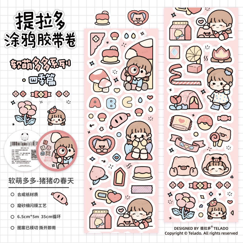 티라도 사계절 낙서 손 계정 테이프 컬러 편지 손 계정 테이프 도매 귀여운 만화 창조적 인 장식