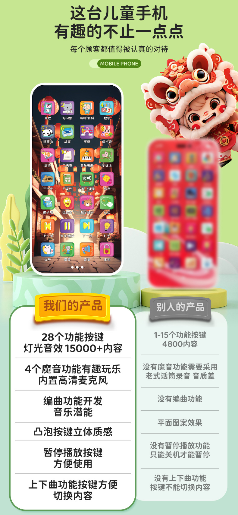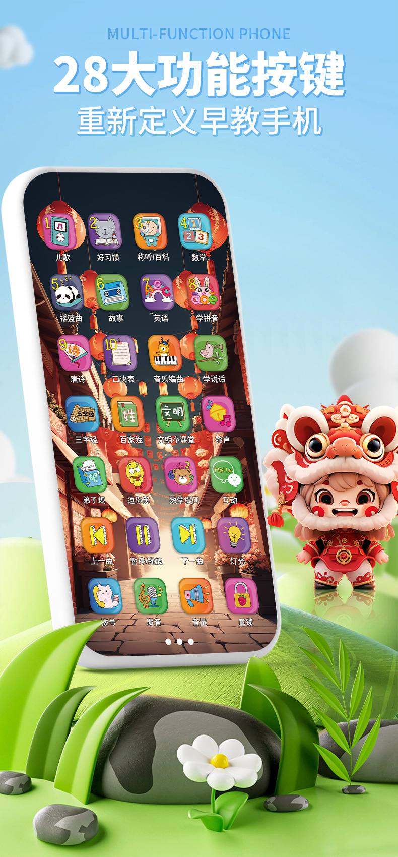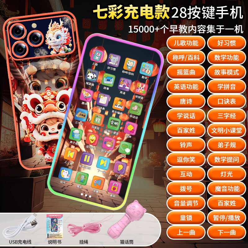 • 28 키 충전식 휴대 전화 [드래곤 년 사자 댄스 테마-컬러 박스]